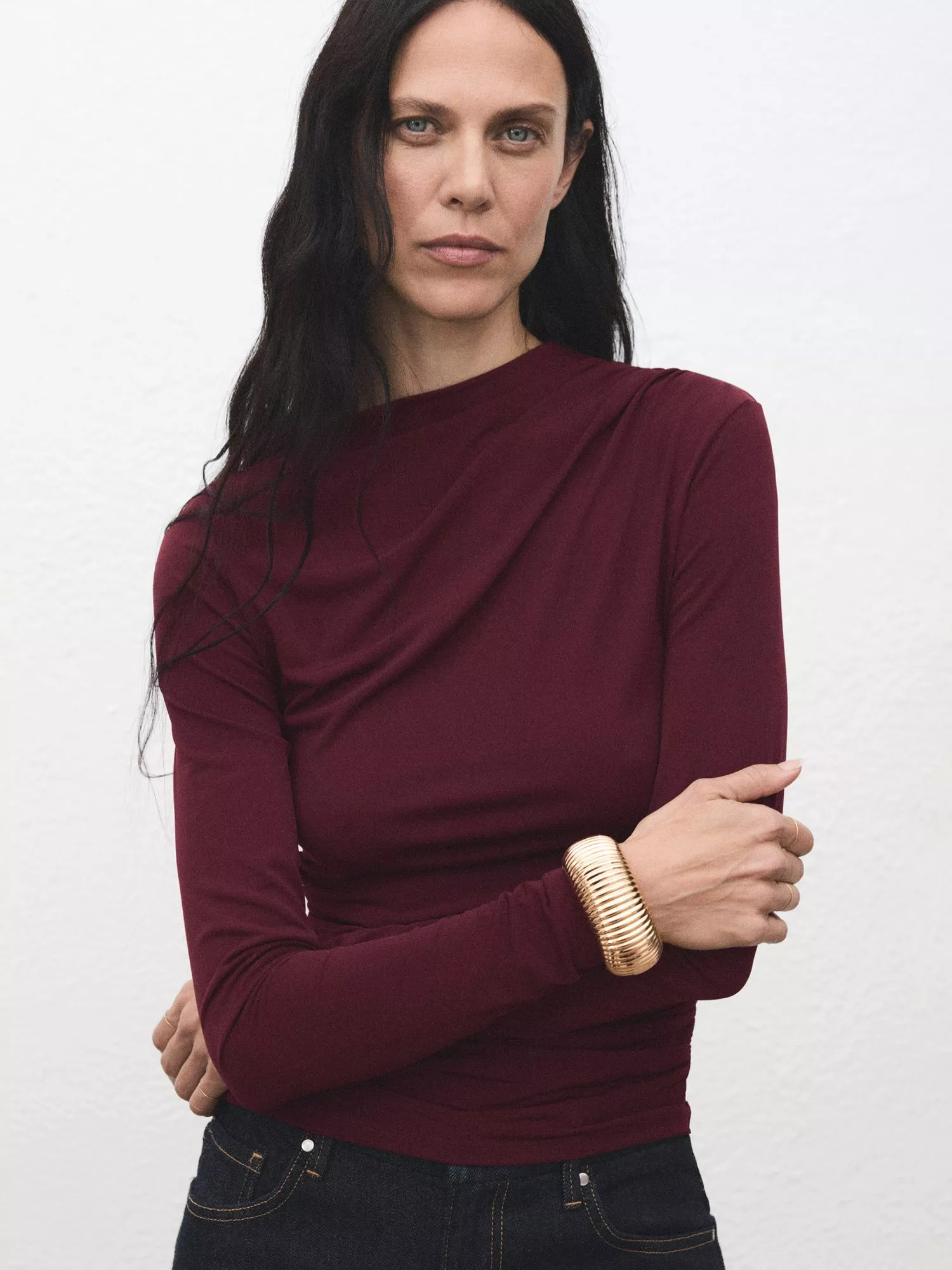 MangoChasi Drape Top, Dark Red
