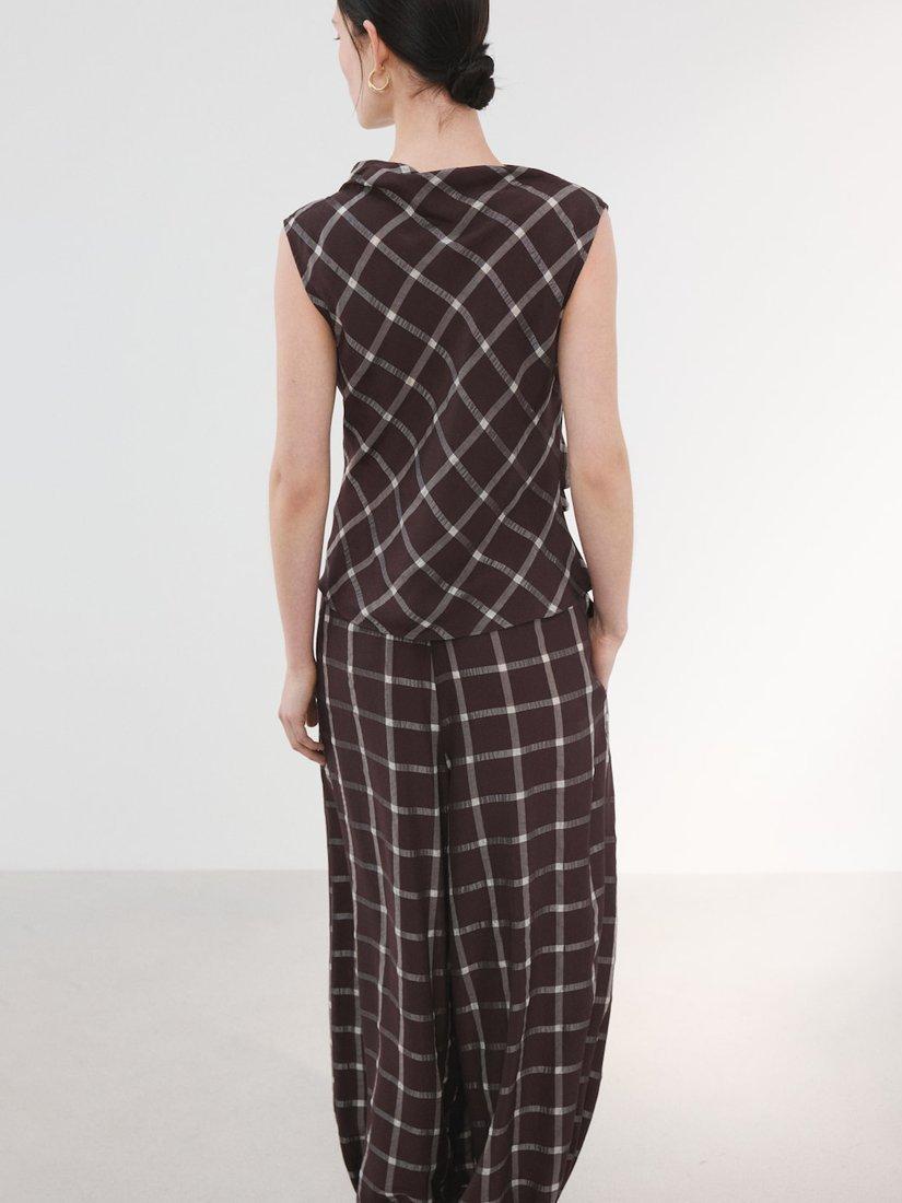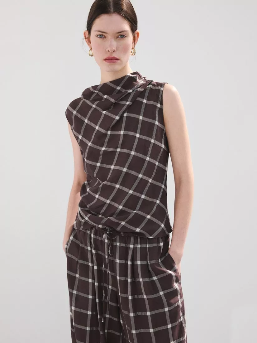 This sleeveless blouse by Mango, with a cowl neck and striking check pattern. Clever details keep you comfortable, while the easy fit ensures you feel confident from morning plans to evening catchups.