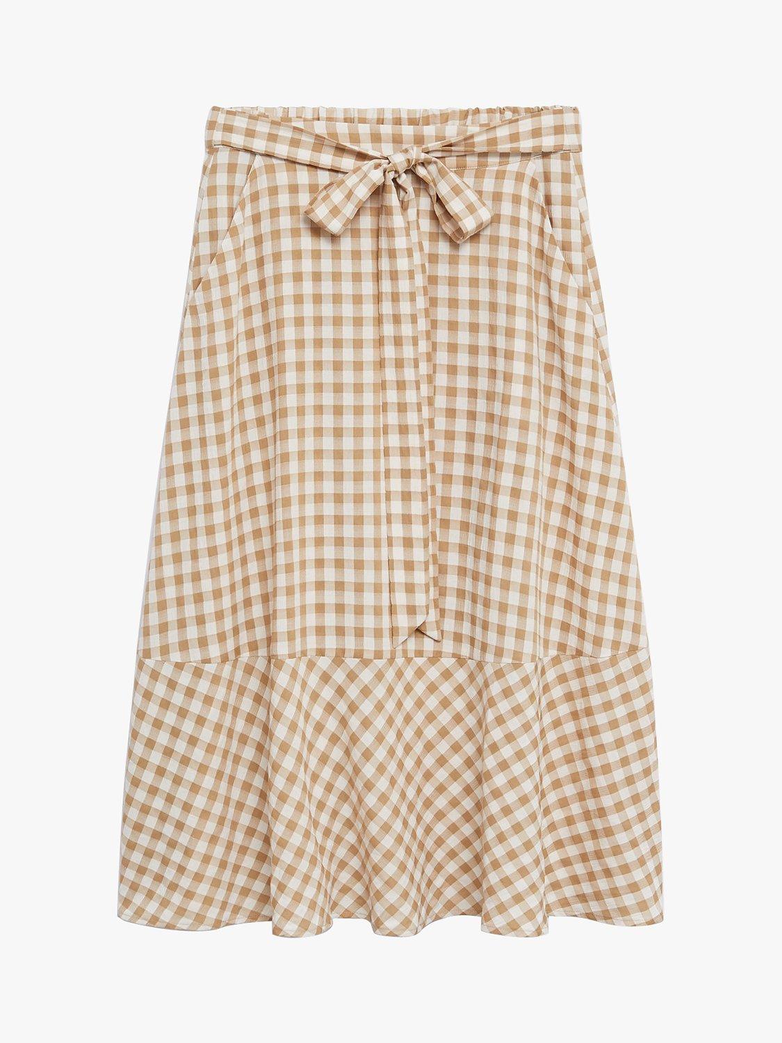 Airy and effortless, this flared skirt from Mango is perfect for the summer. Cloaked in timeless checks and falling to a midi length, this style features an elastic waist with an adjustable belt for a great fit.