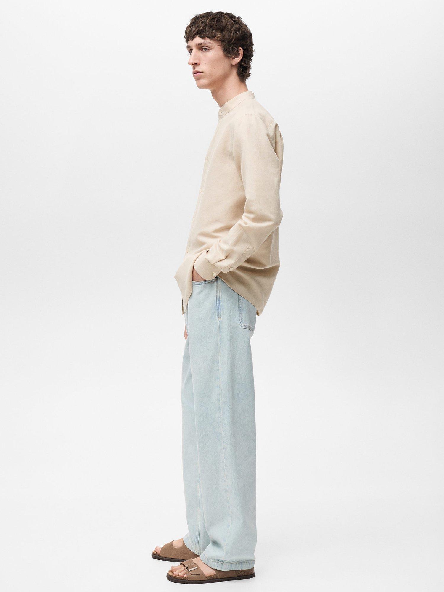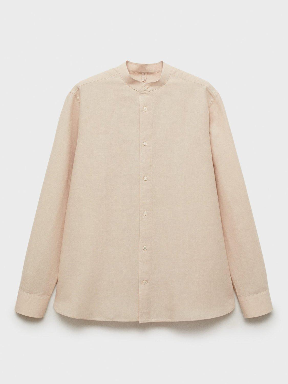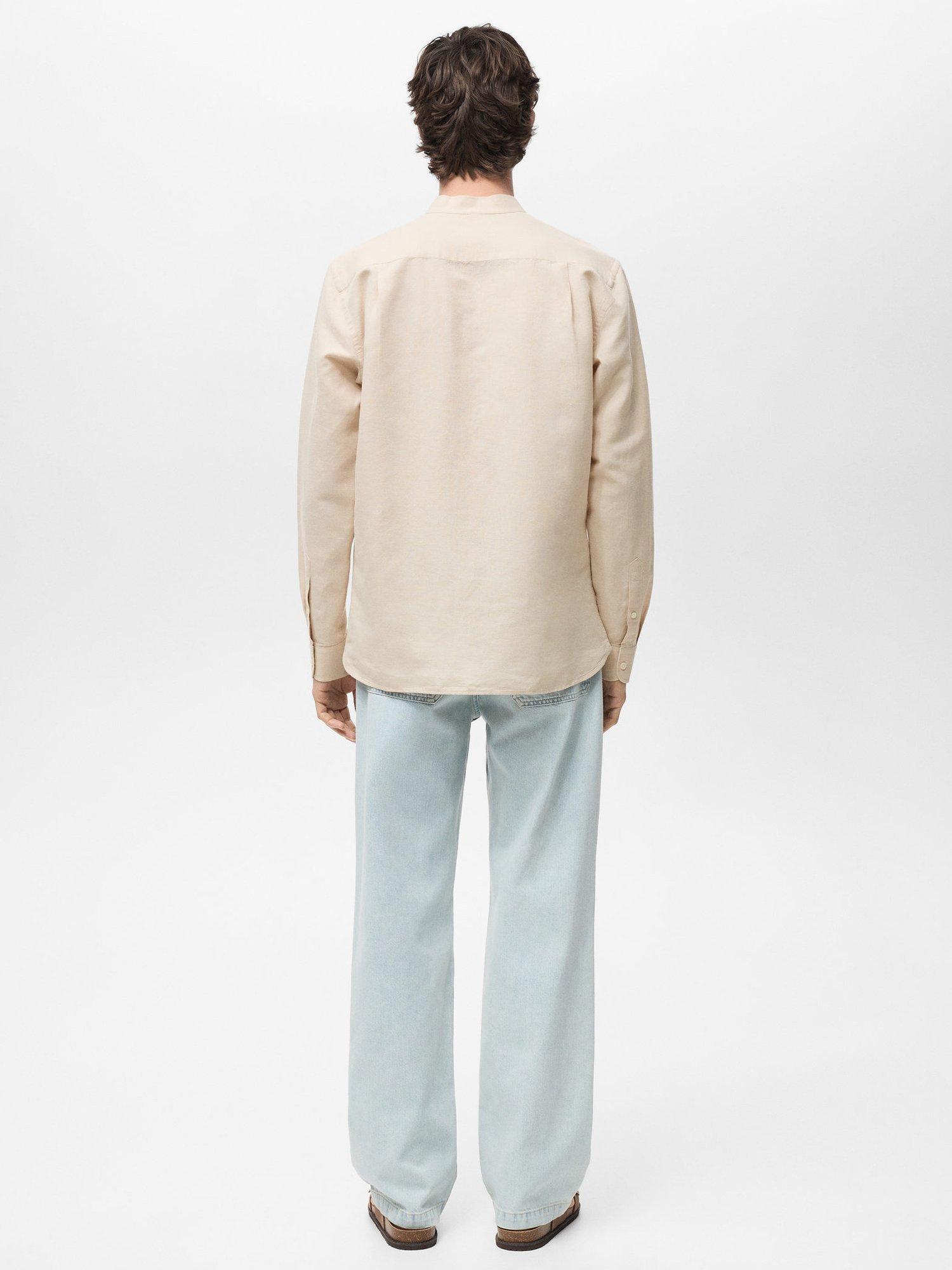 Made from a light linen blend for a light and breezy handle that will see you through holiday adventures and summer city wandering, this mandarin collar shirt from Mango is cut with a relaxed silhouette.
