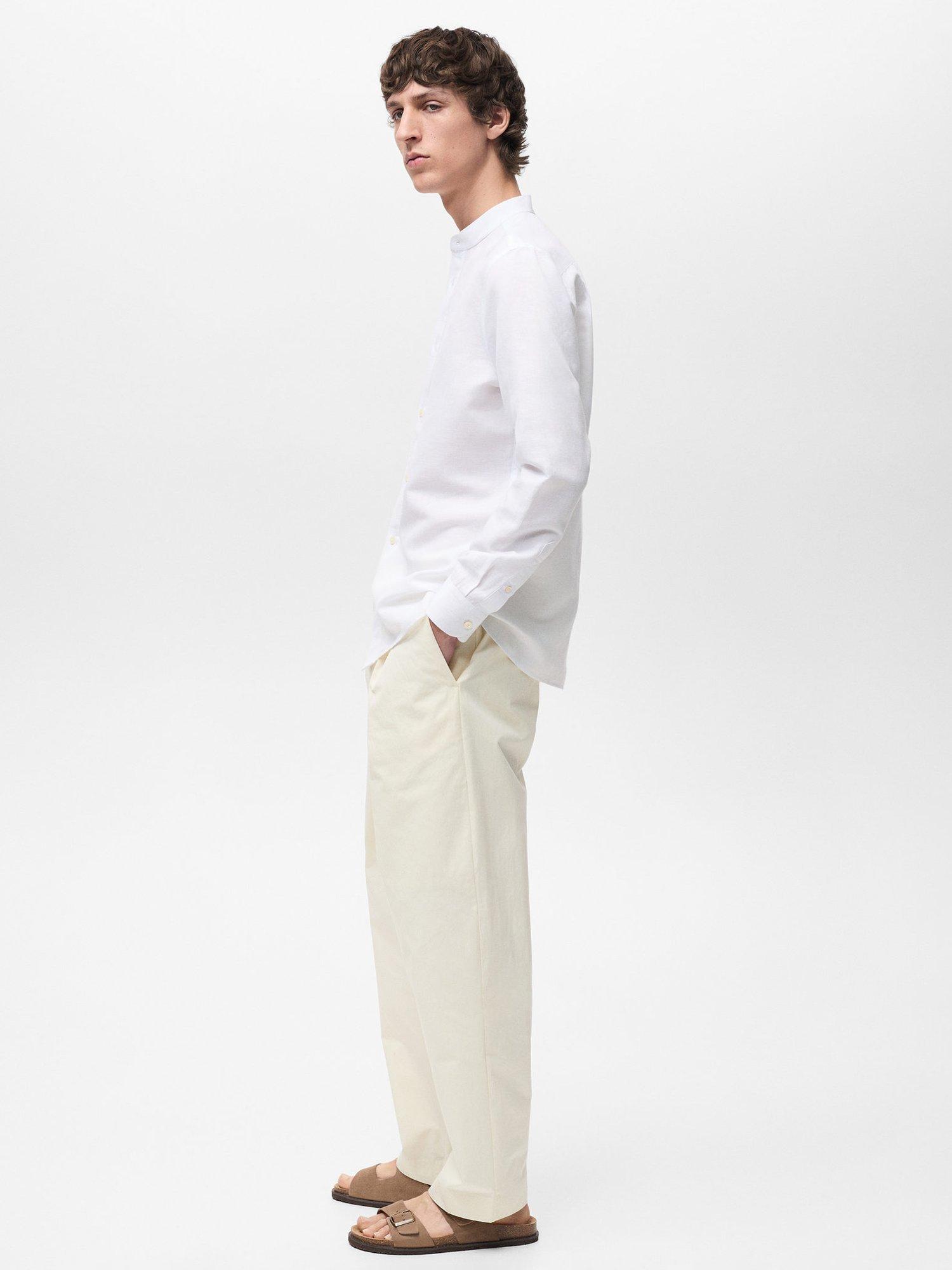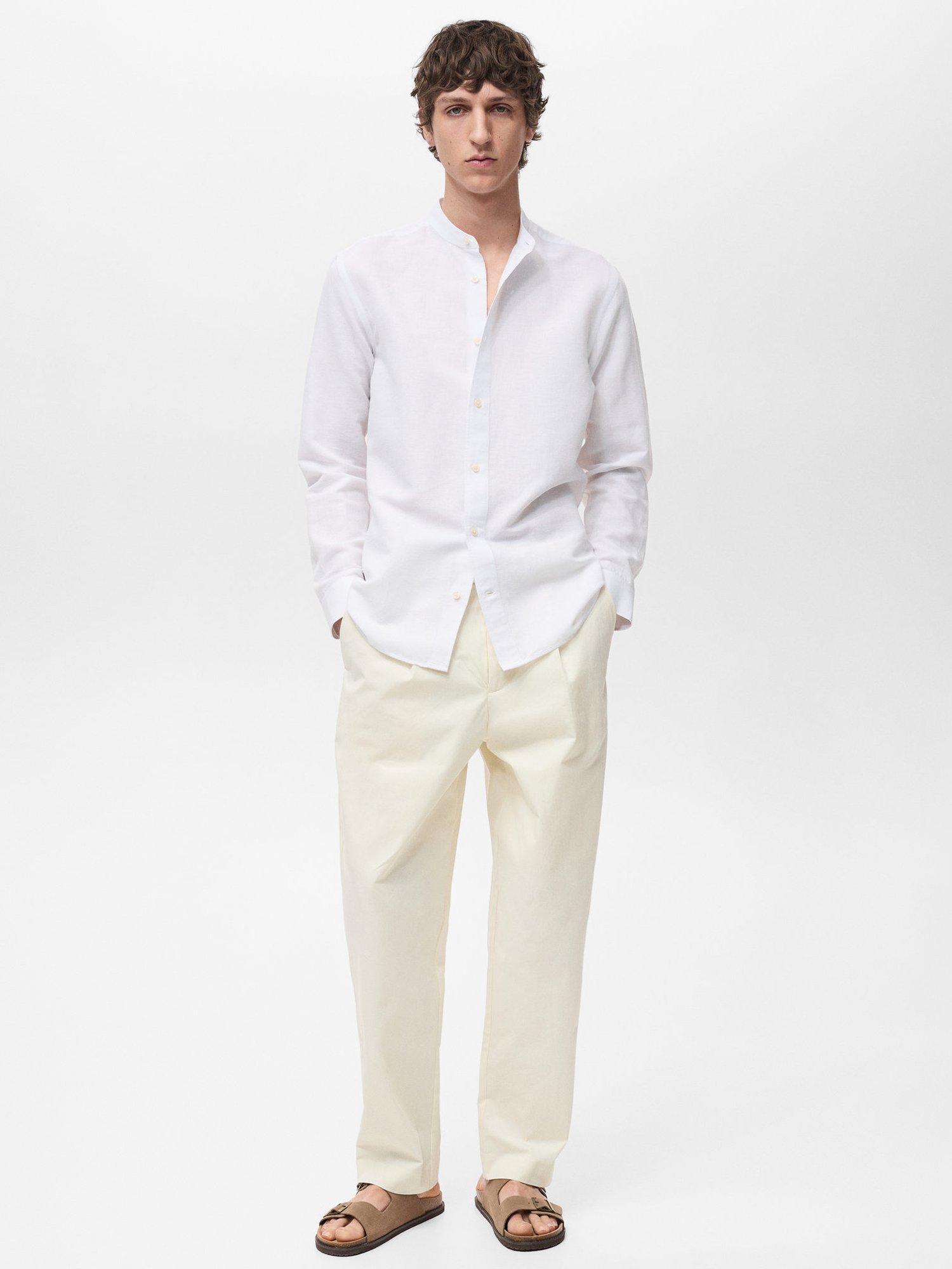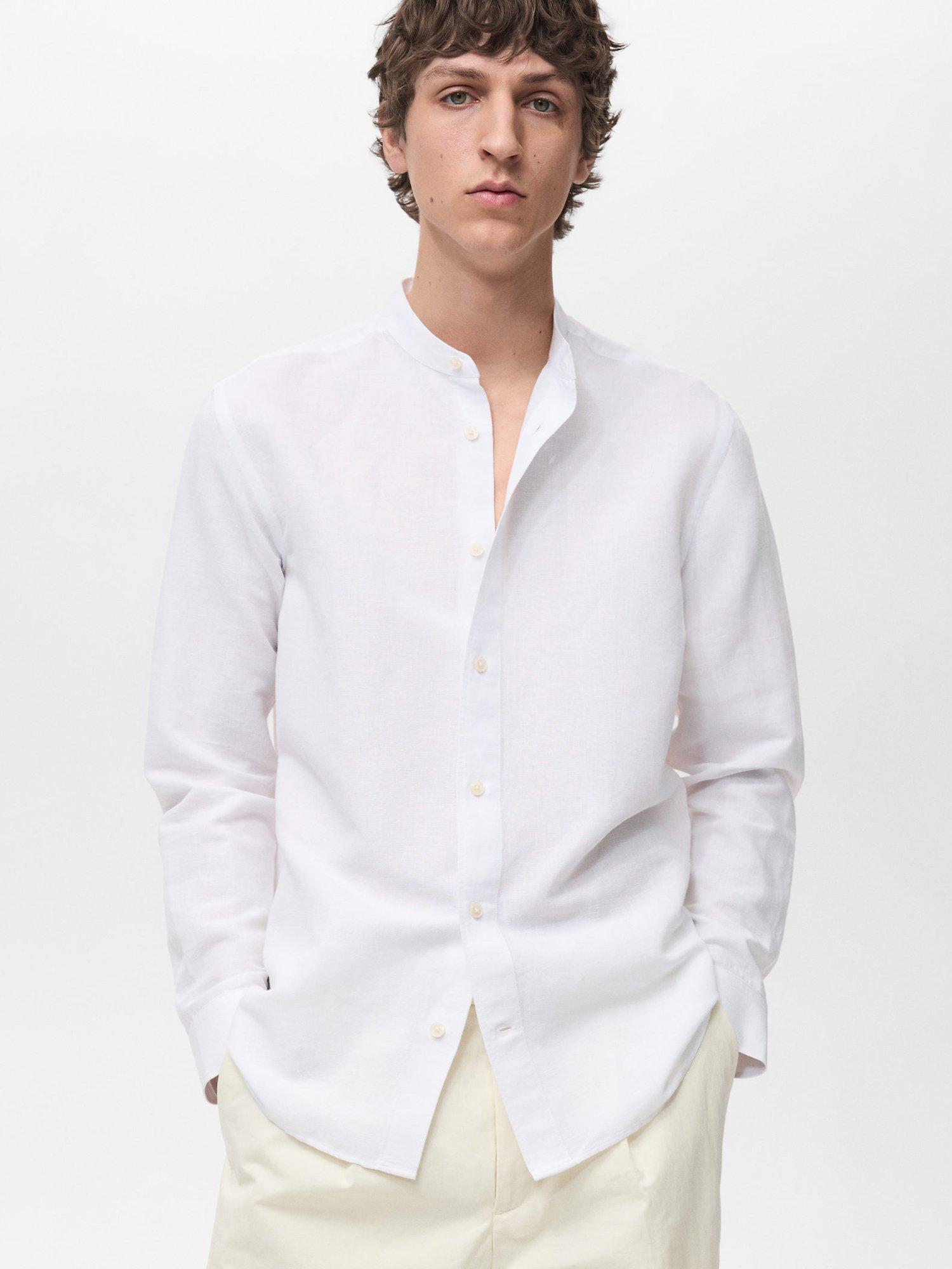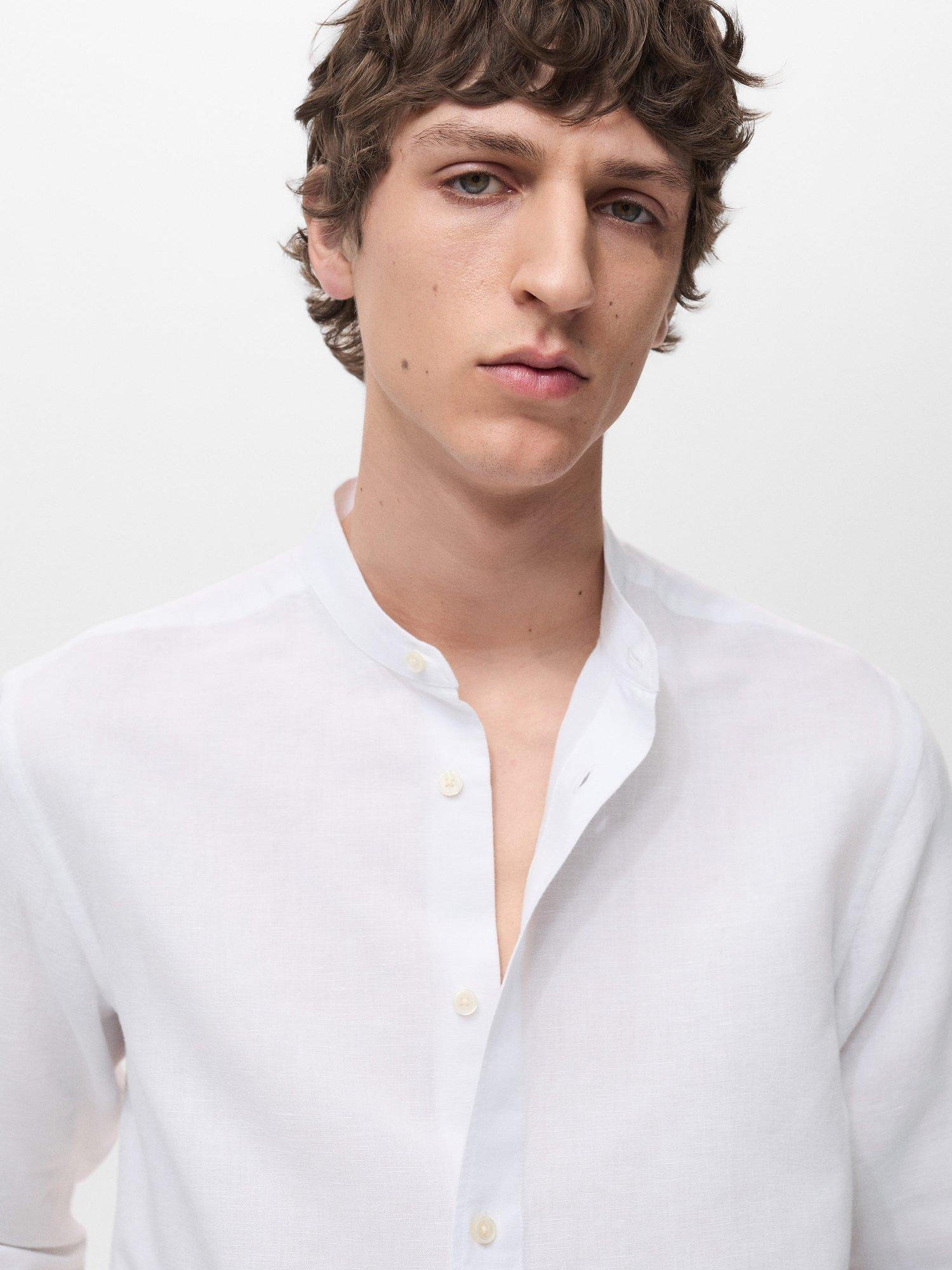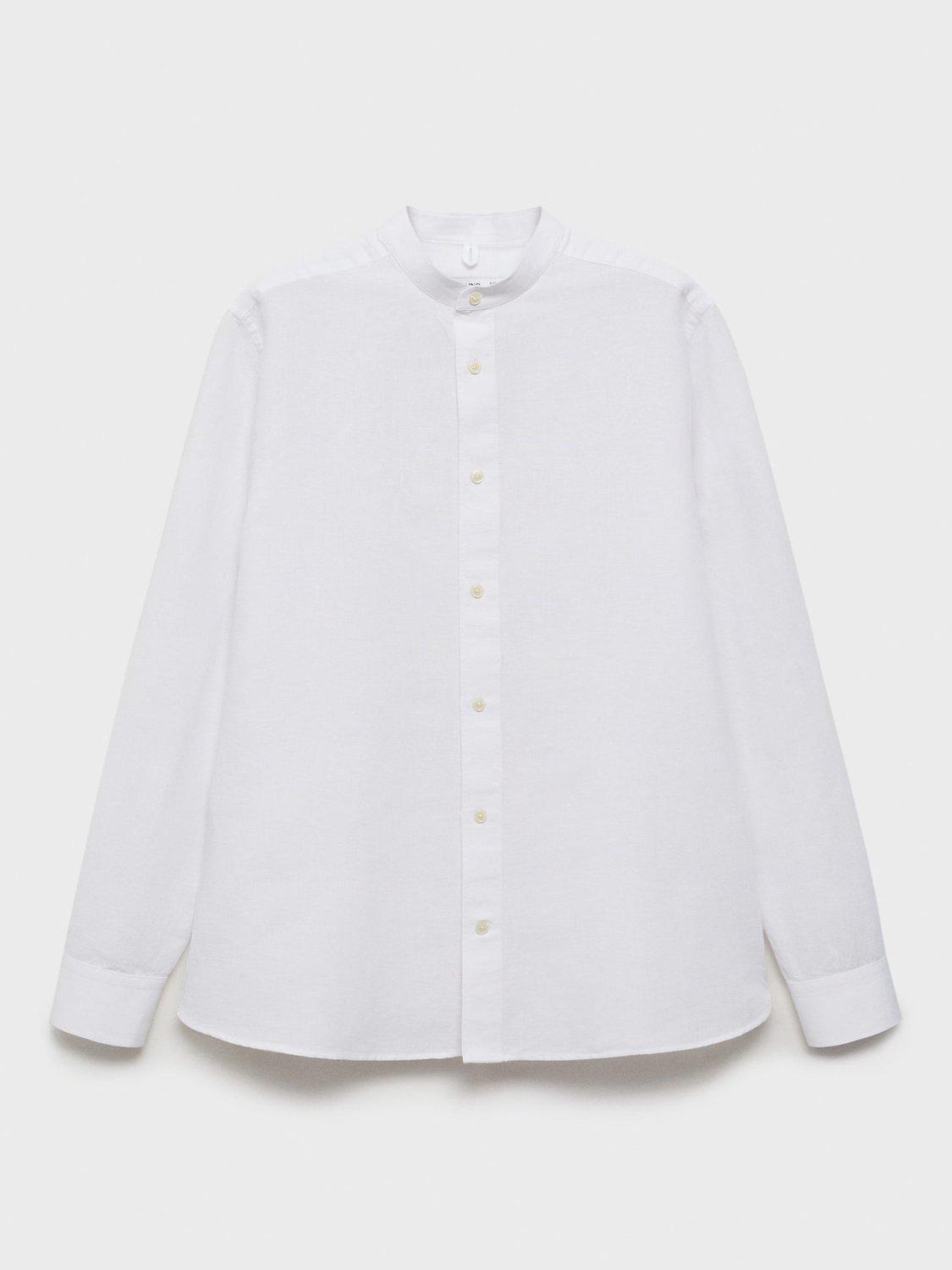 Made from a light linen blend for a light and breezy handle that will see you through holiday adventures and summer city wandering, this mandarin collar shirt from Mango is cut with a relaxed silhouette.