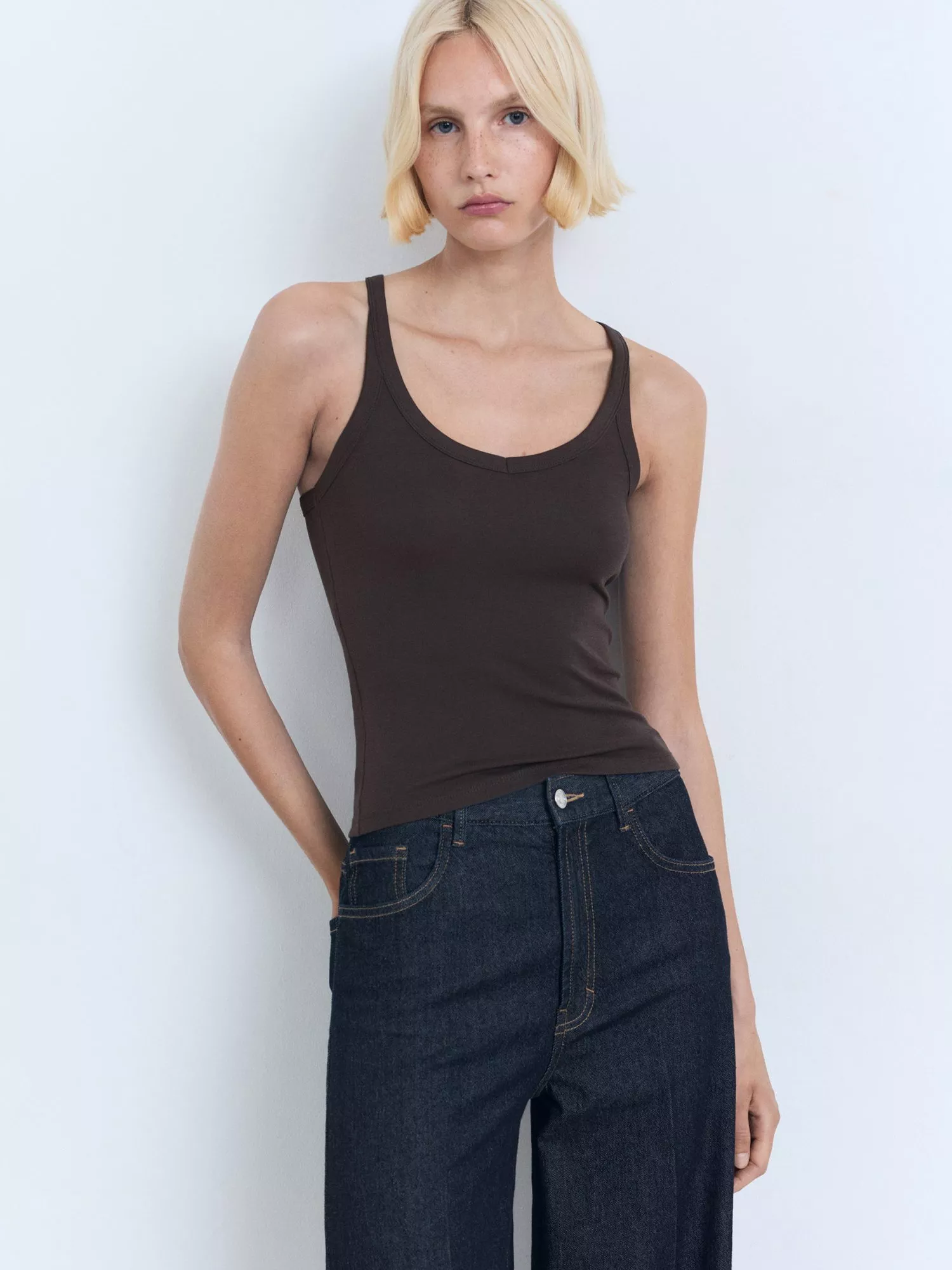 This fitted vest top is a sleek addition to your wardrobe.