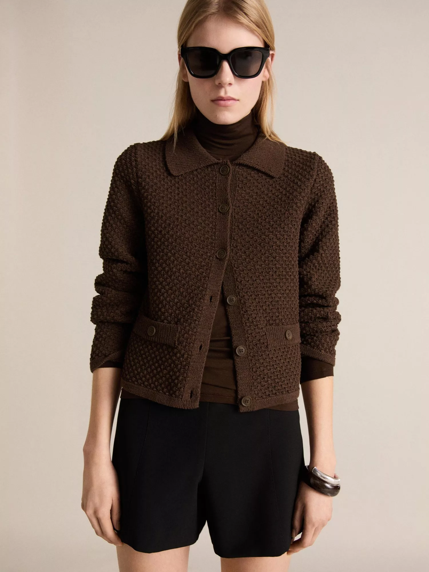 The epitome of versatile styling, this knitted jacket from Mango sits at the hips for practical coverage.