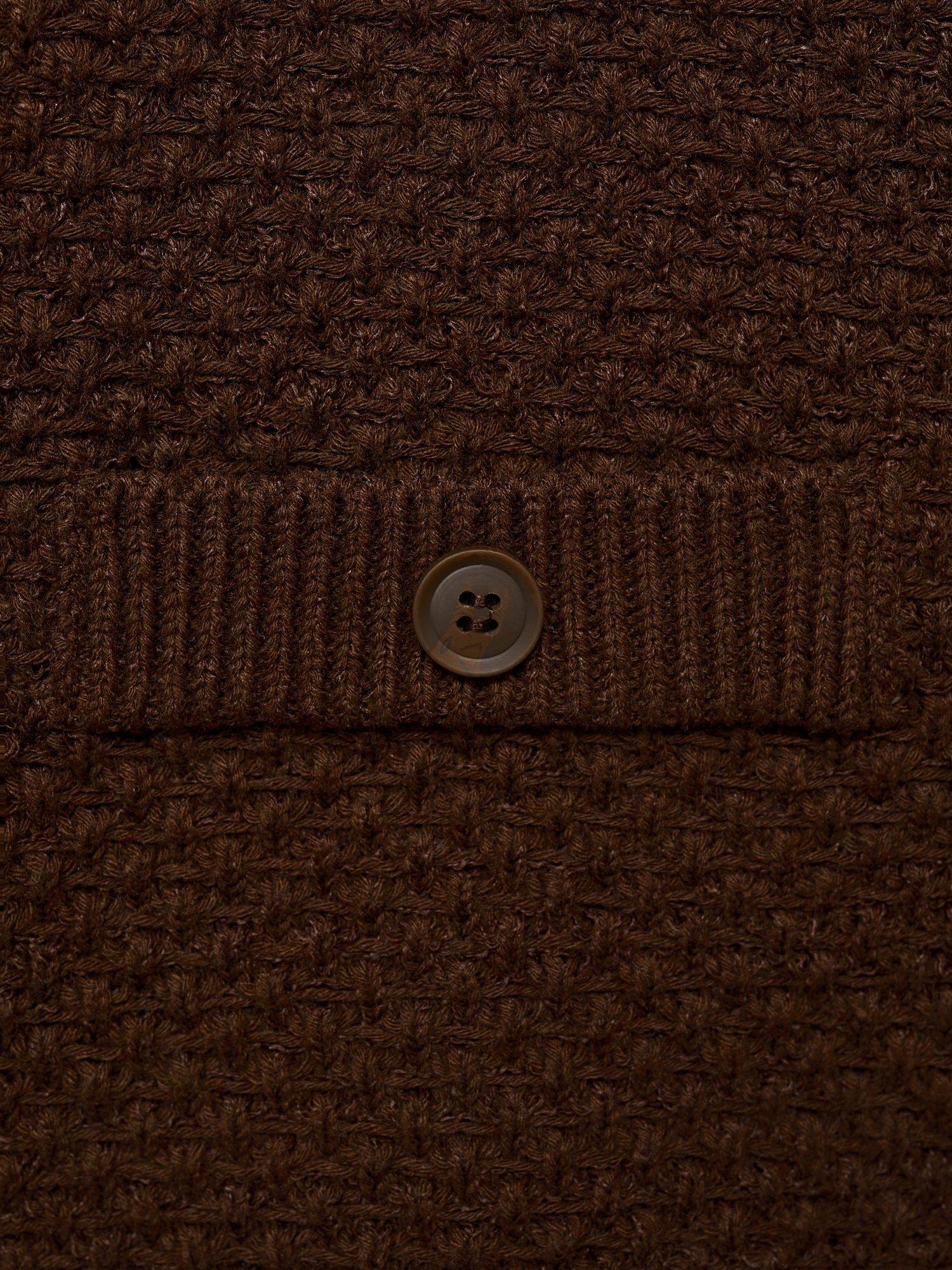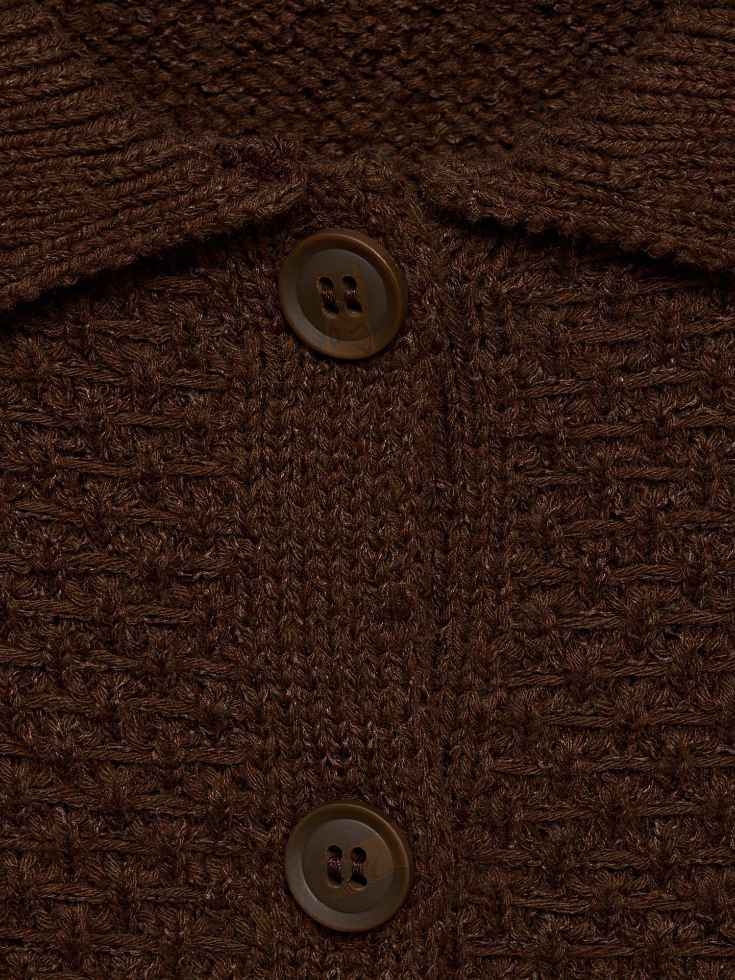 With a collar neckline, buttoned pockets and a button front, it is made from blended medium-knit fabric that can be easily thrown on over casual looks on dry but chilly days.
