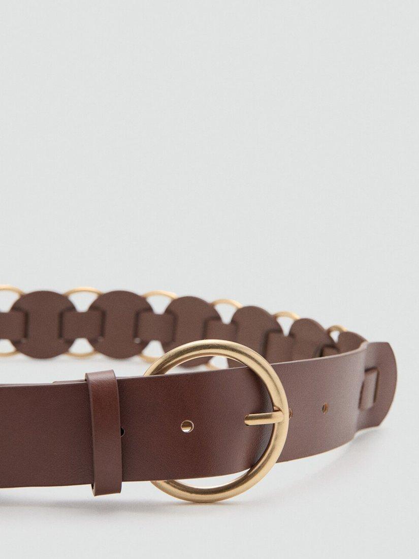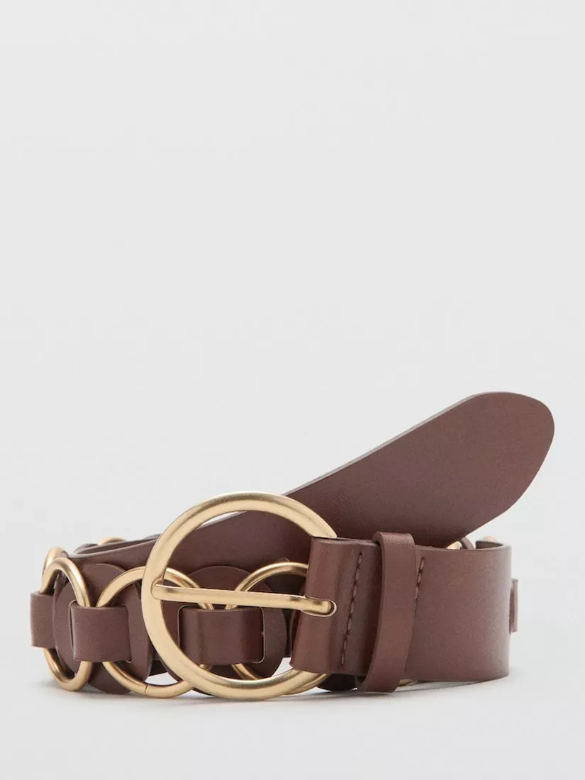 Sculptural circle buckle and linked silhouette cinch the waist, bringing architectural sophistication to both day and evening outfits.