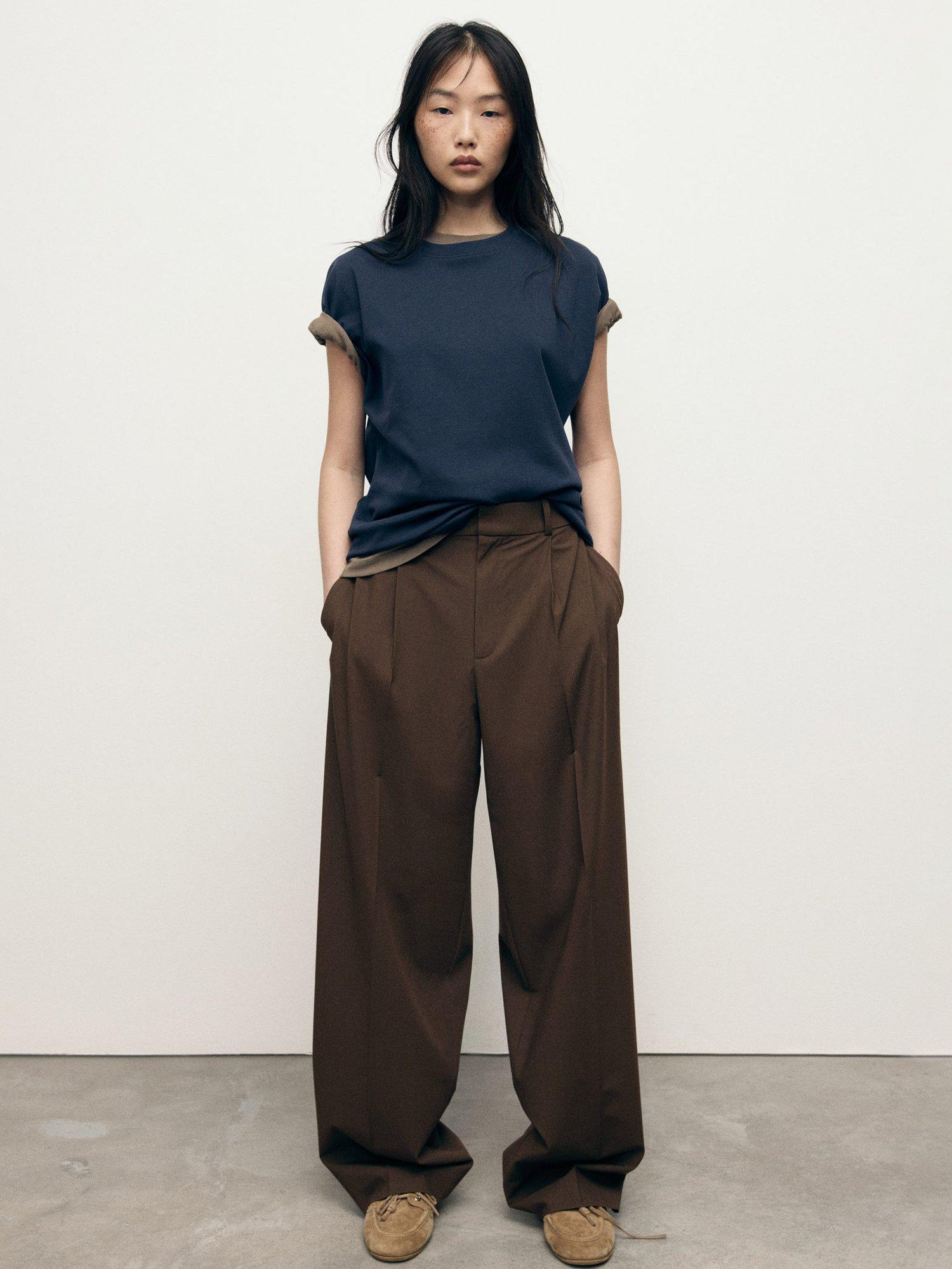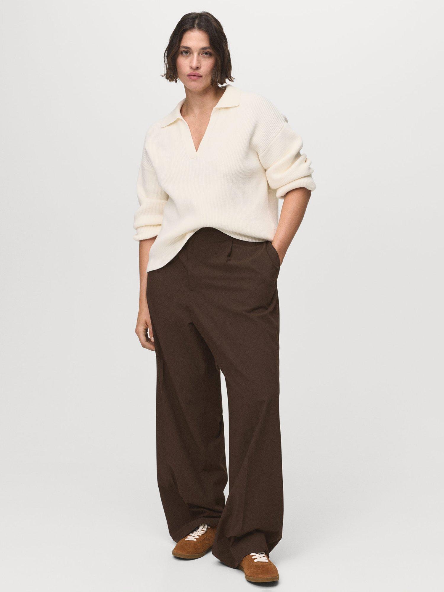 A pair of clean lined, no-nonsense straight-leg trousers by Mango. They feature a mid rise with a zip fly and a regular length.