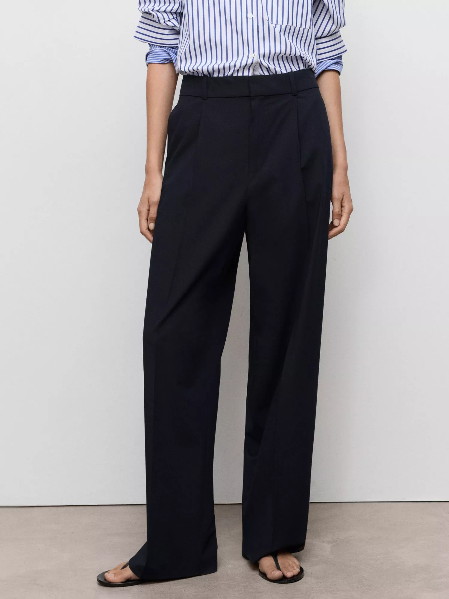 A pair of clean lined, no-nonsense straight-leg trousers by Mango. They feature a mid rise with a zip fly and a regular length.