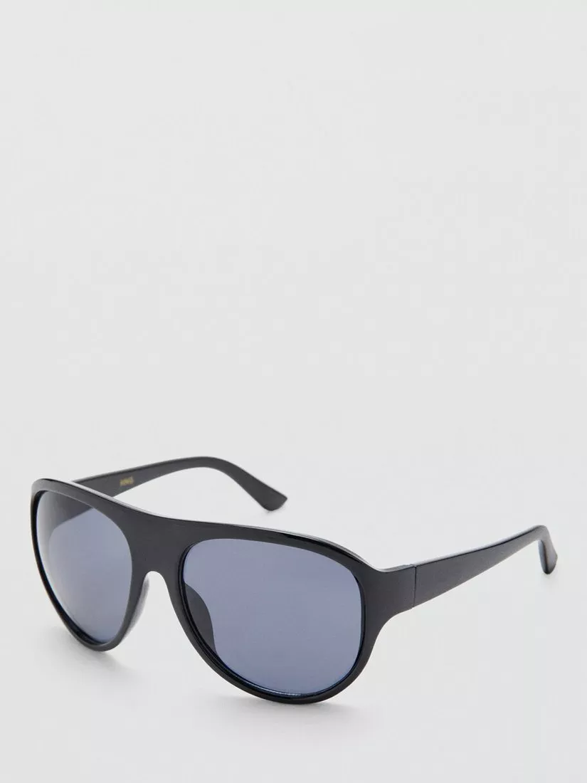 An oversized shape, these Mango sunglasses are made from polycarbonate with the resilience and reliability to keep up with your every move. Classic tinted lenses complete the look and protection.