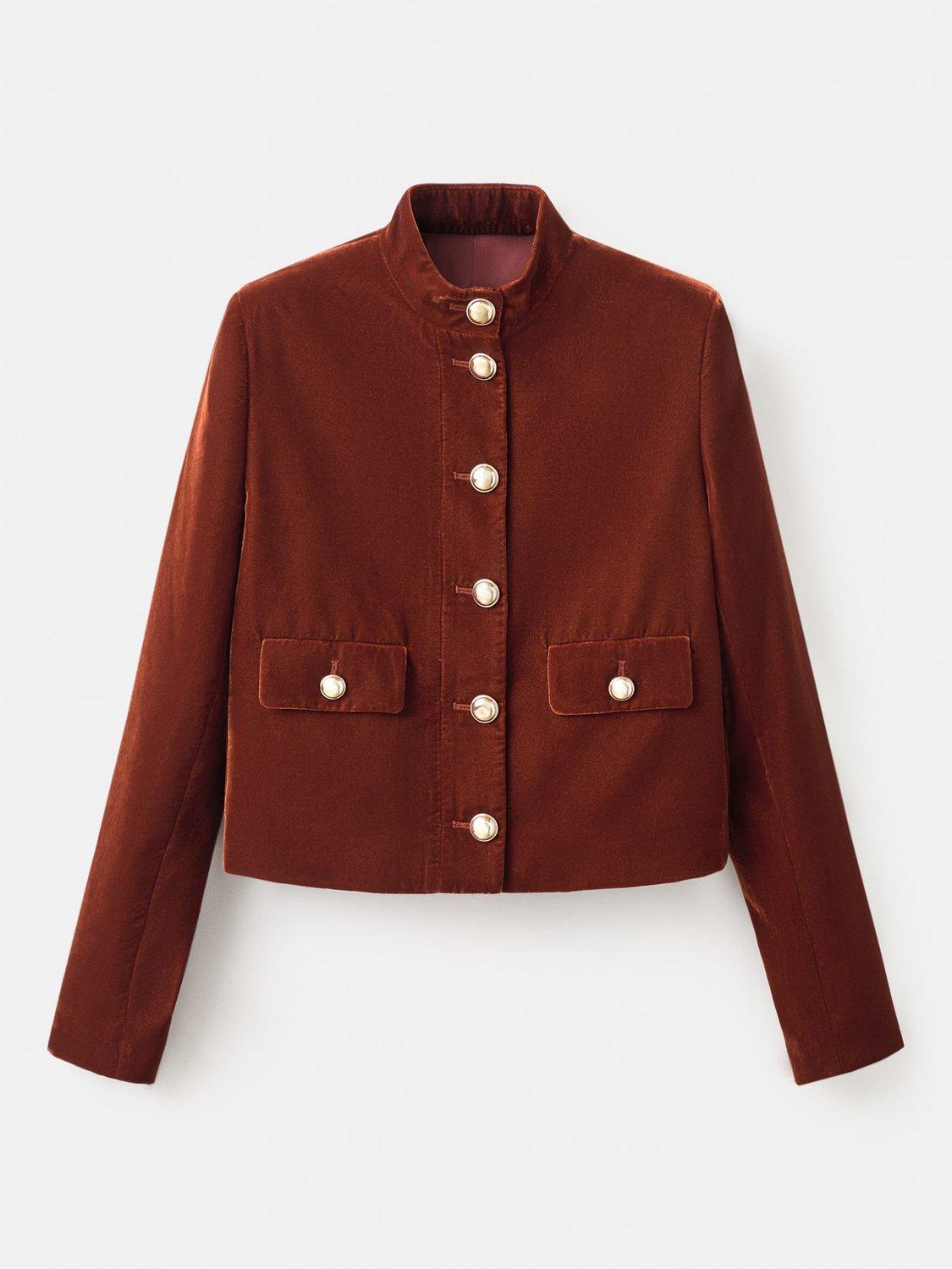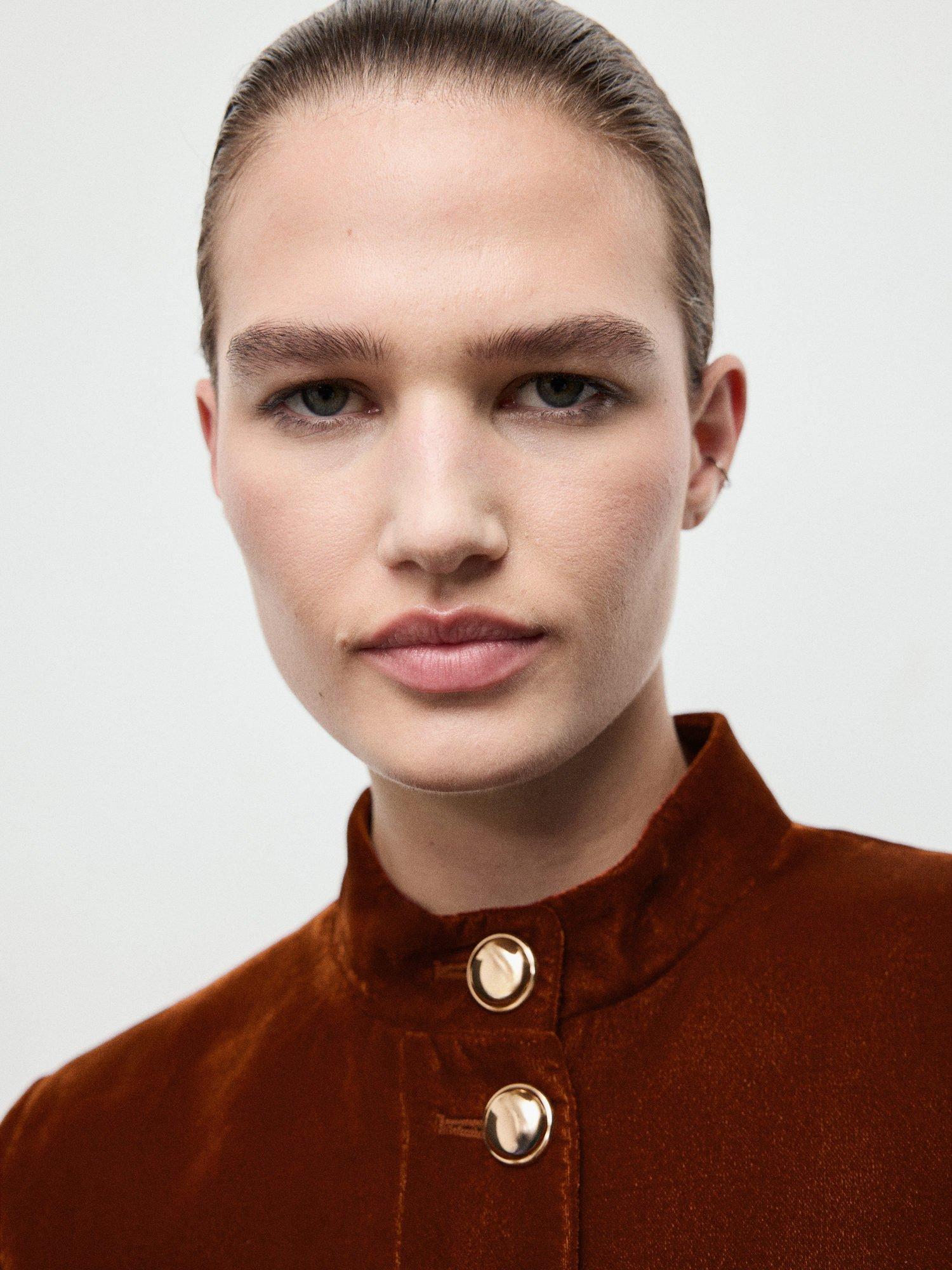 A high-neck jacket by Mango, made in smooth velvet. The clever detailing adds character while the regular cut ensures all-day comfort. It’s practical, lined, and finished with a secure button fastening for effortless style.