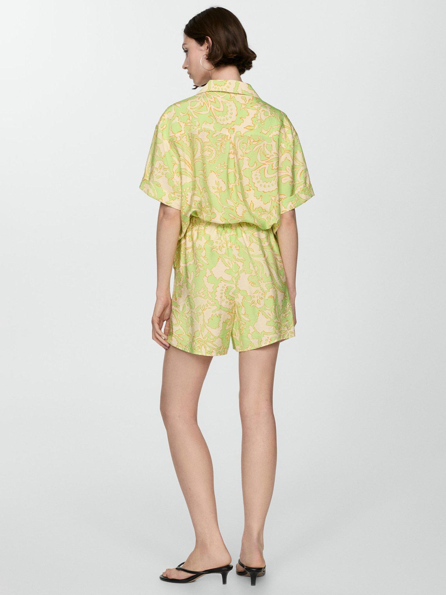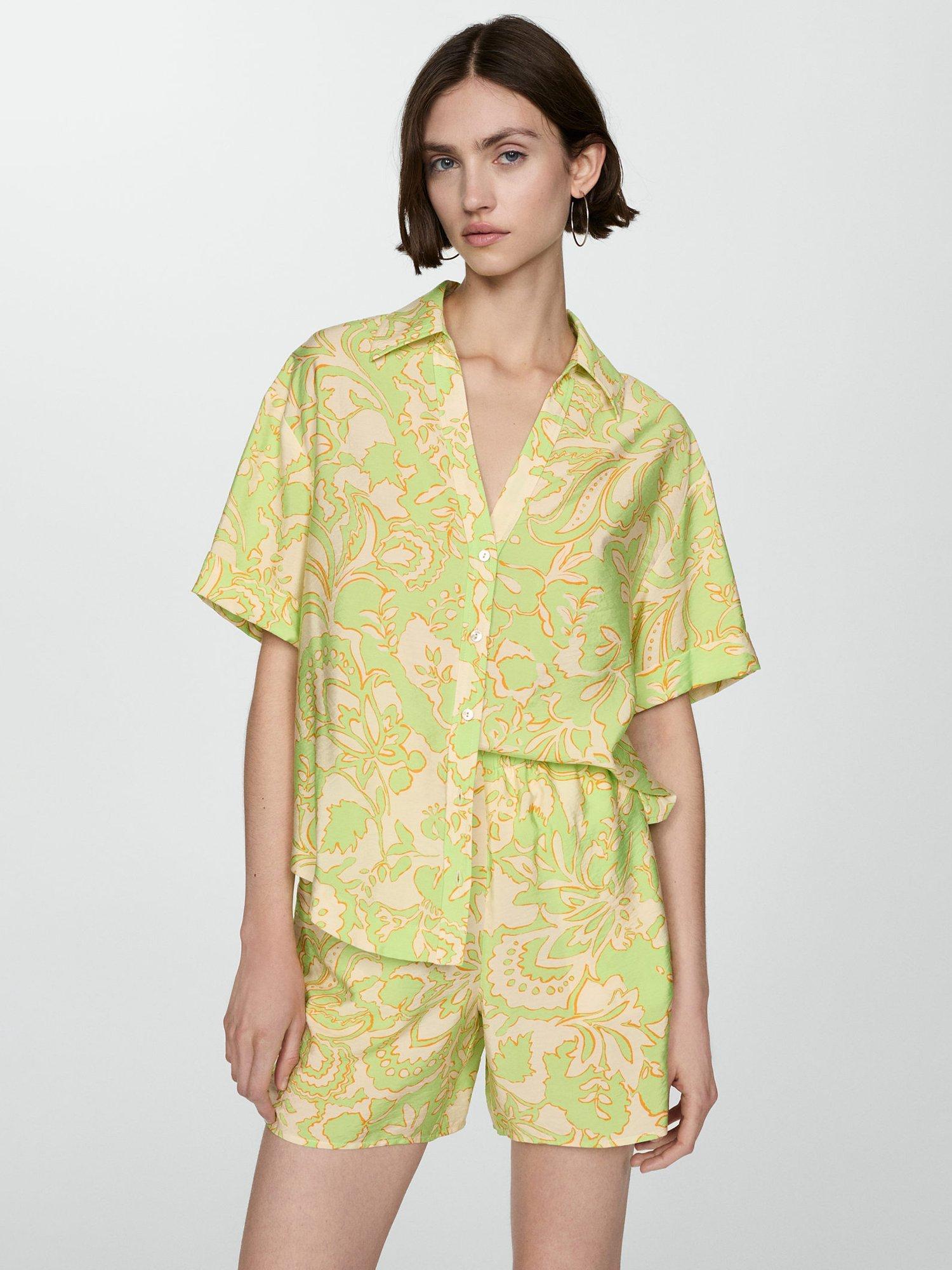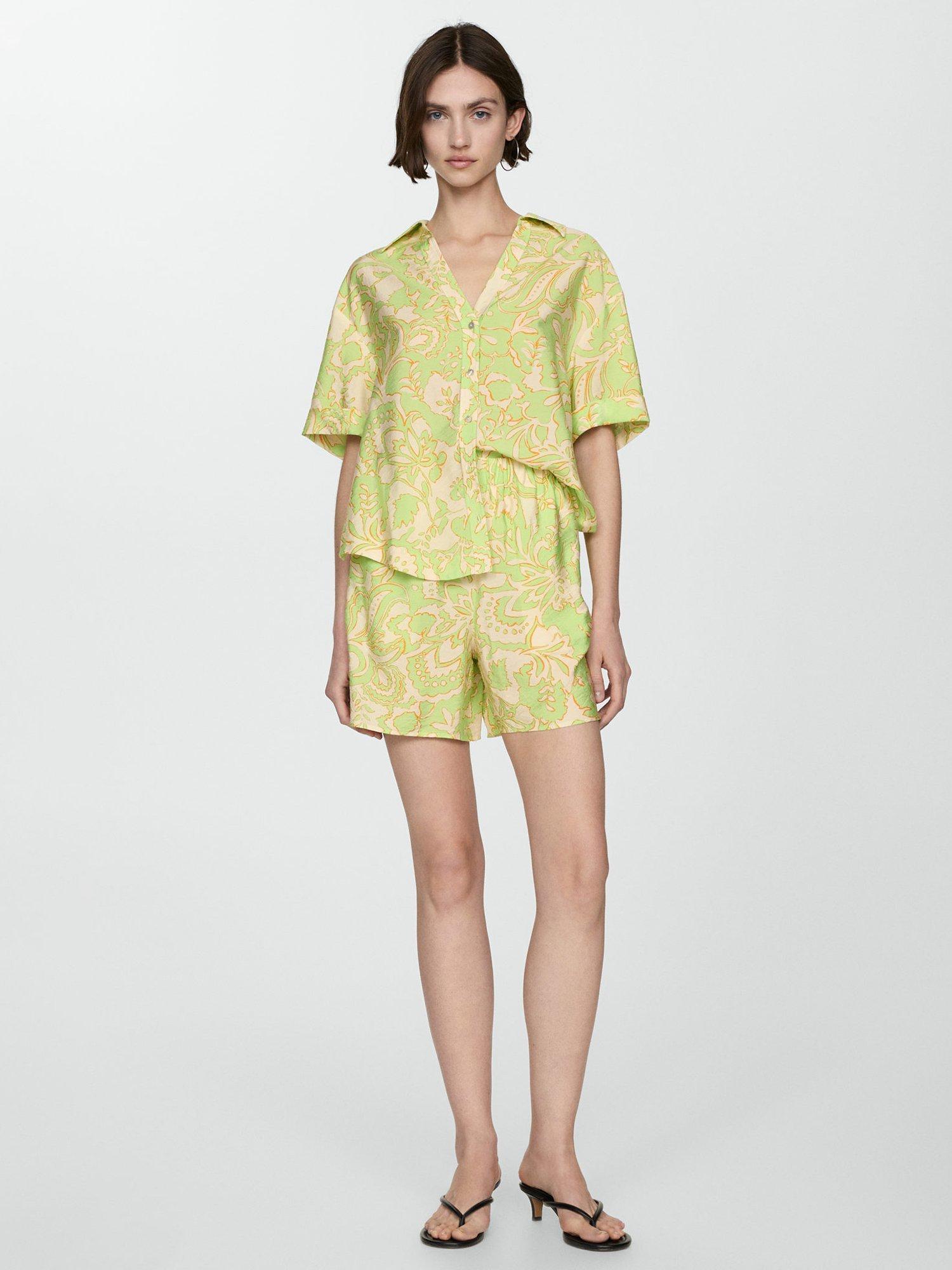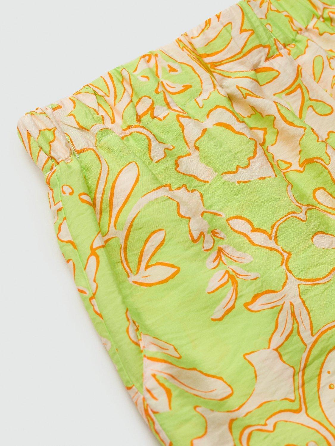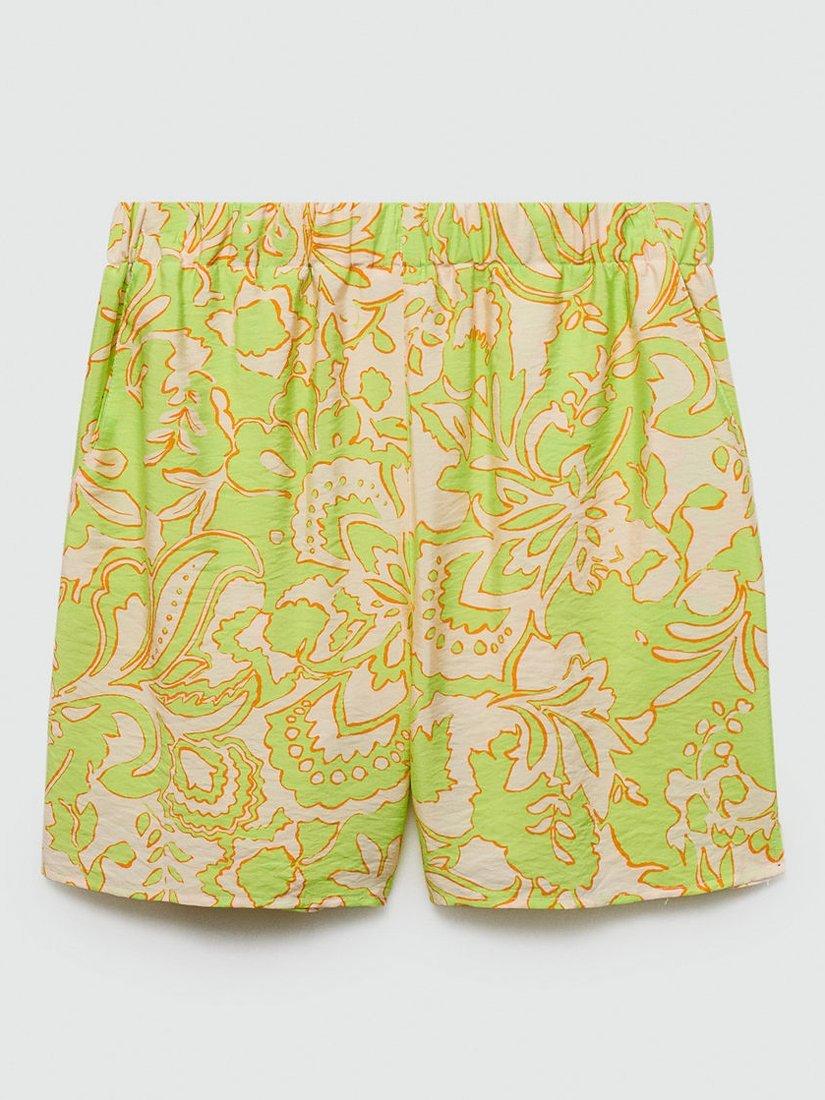 Flowy fabric shorts in a straight design and abstract print. Made with two side pockets and a fastening-free elasticated waist.