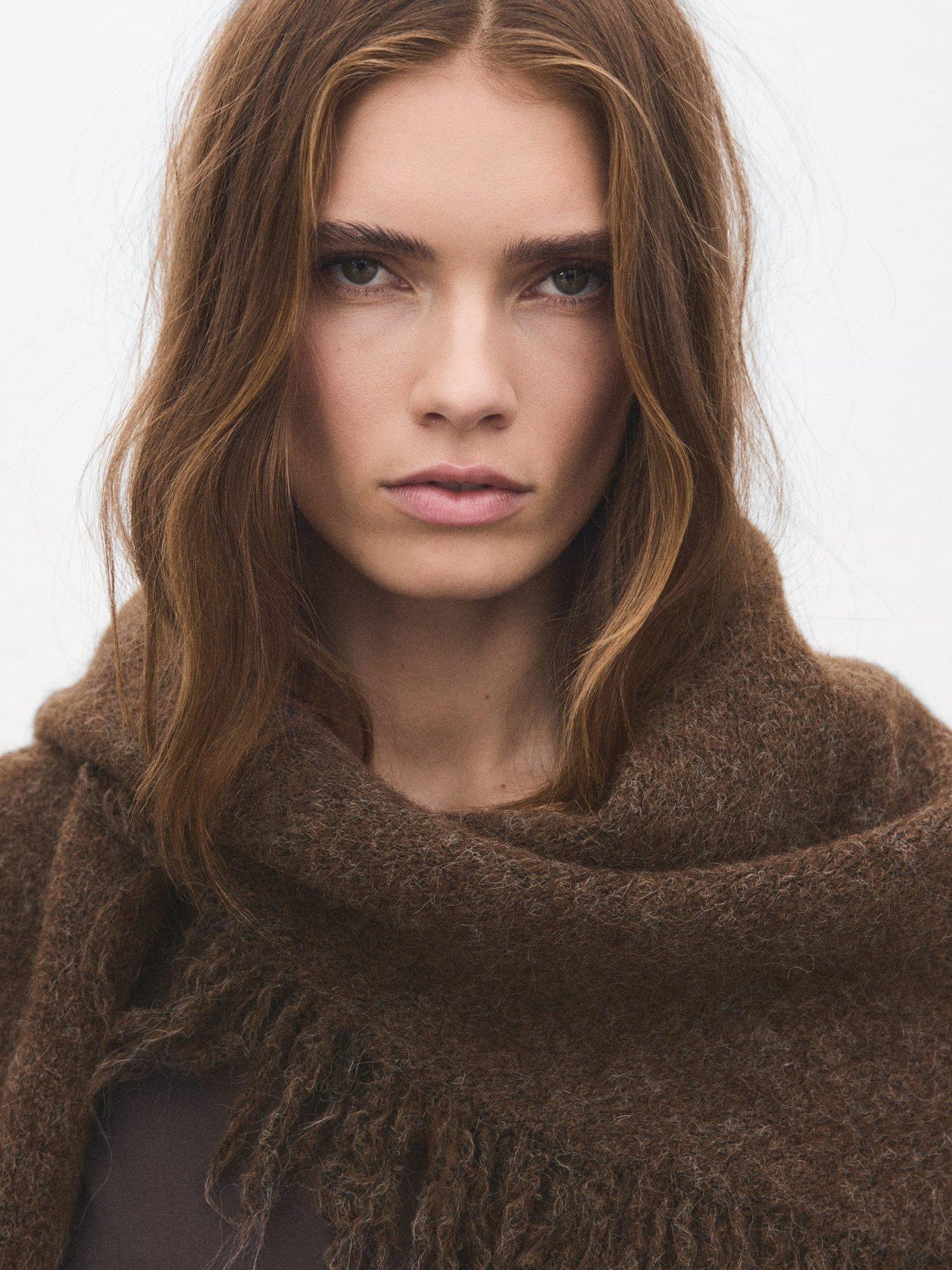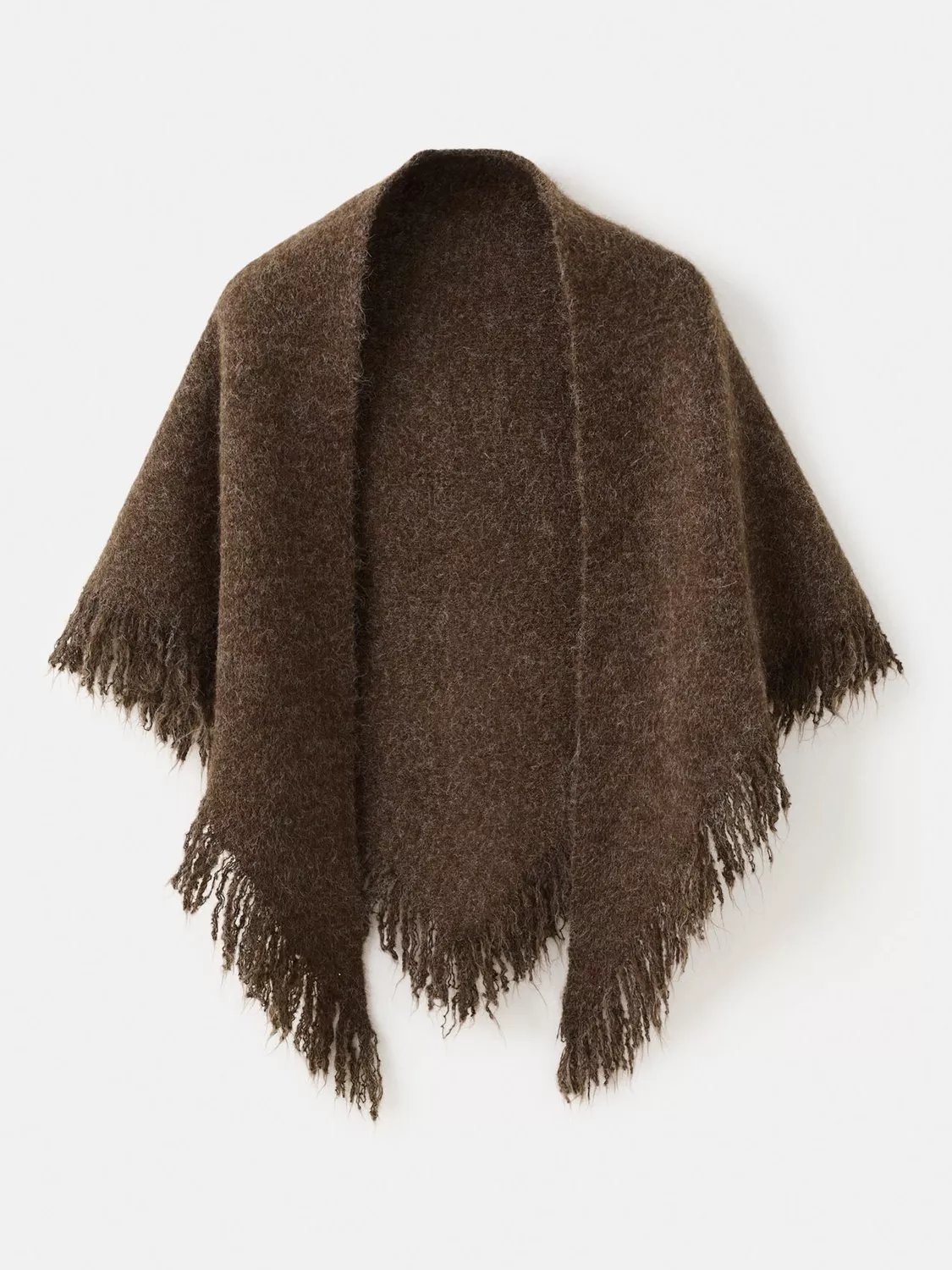Wrap yourself up in comfort and warmth with this shawl, a soft accessory finished with delicate fringing.