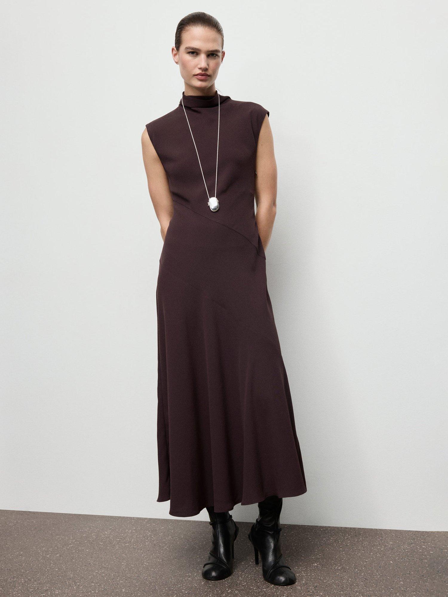 Mango's draped midi dress. The high neck design and sleeveless cut offer you expressive style with comfort, making it your perfect choice for memorable occasions.