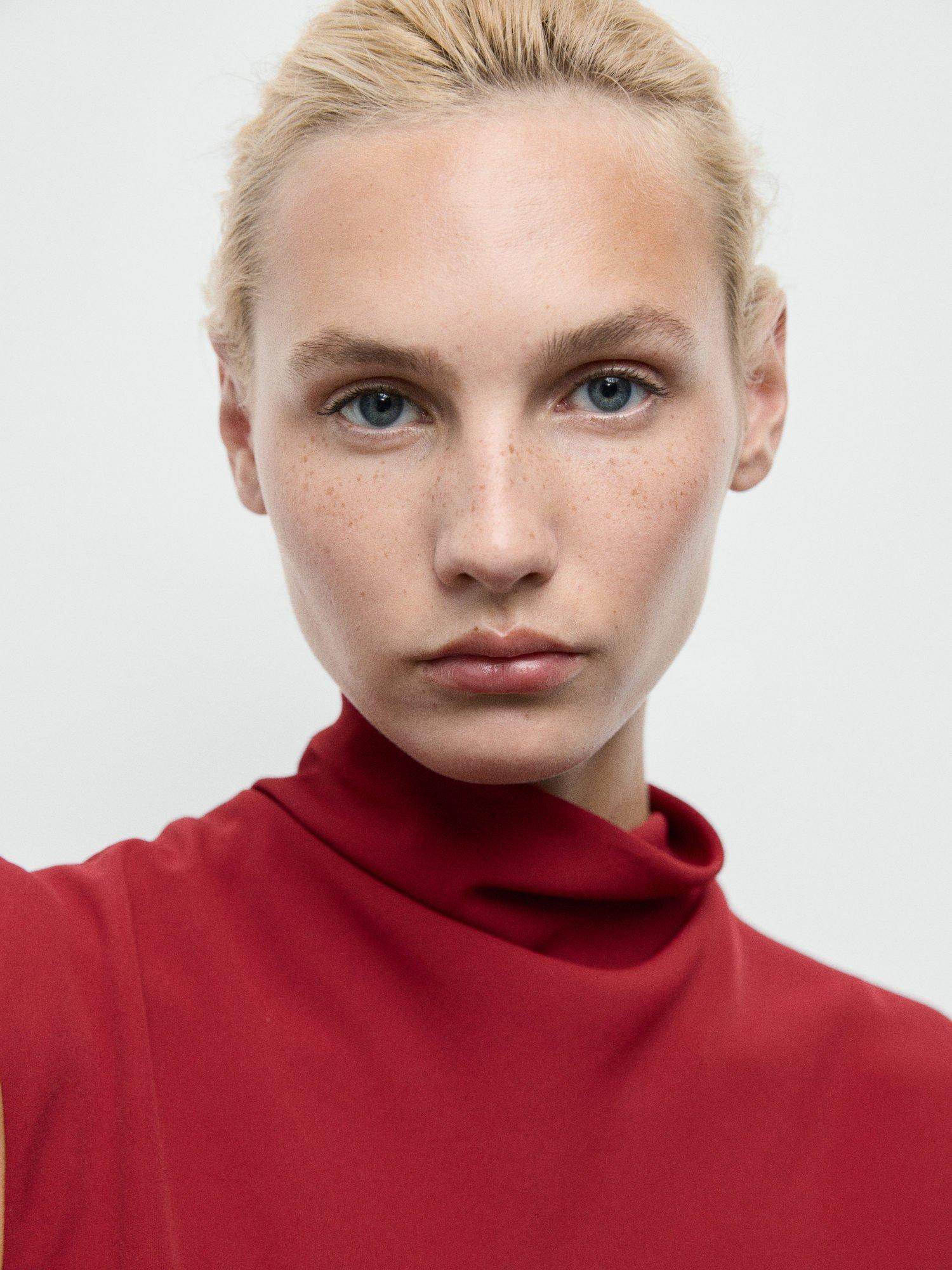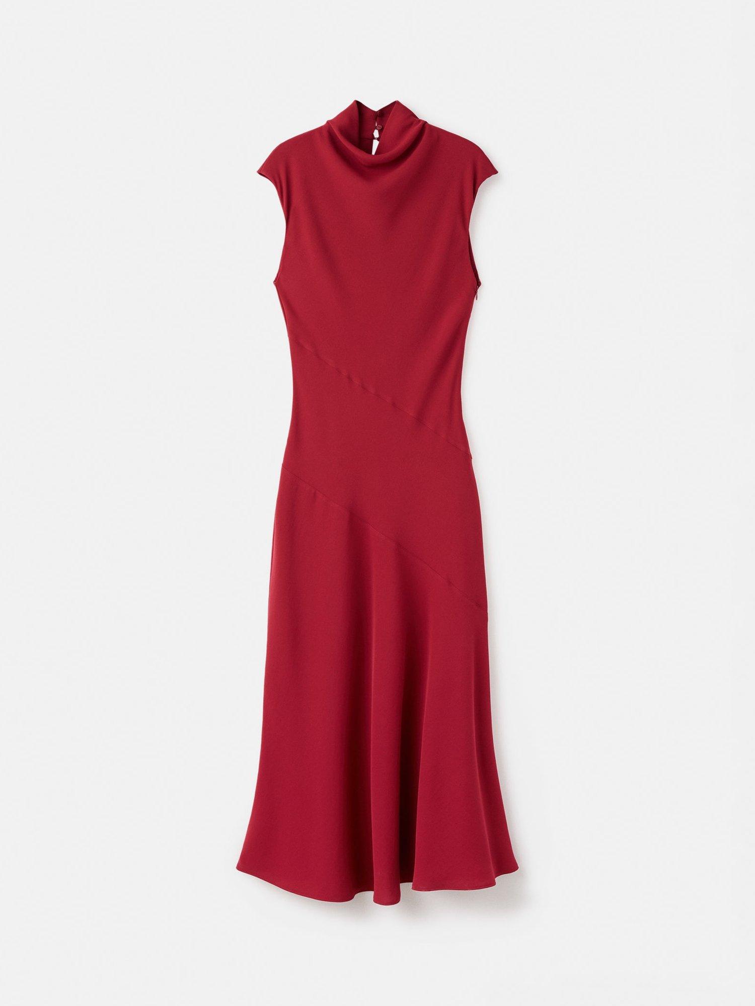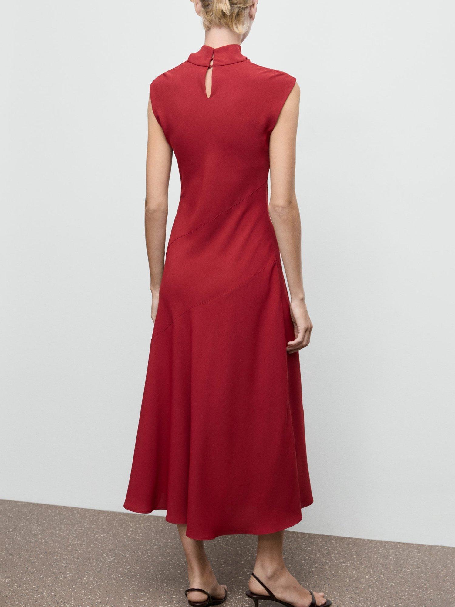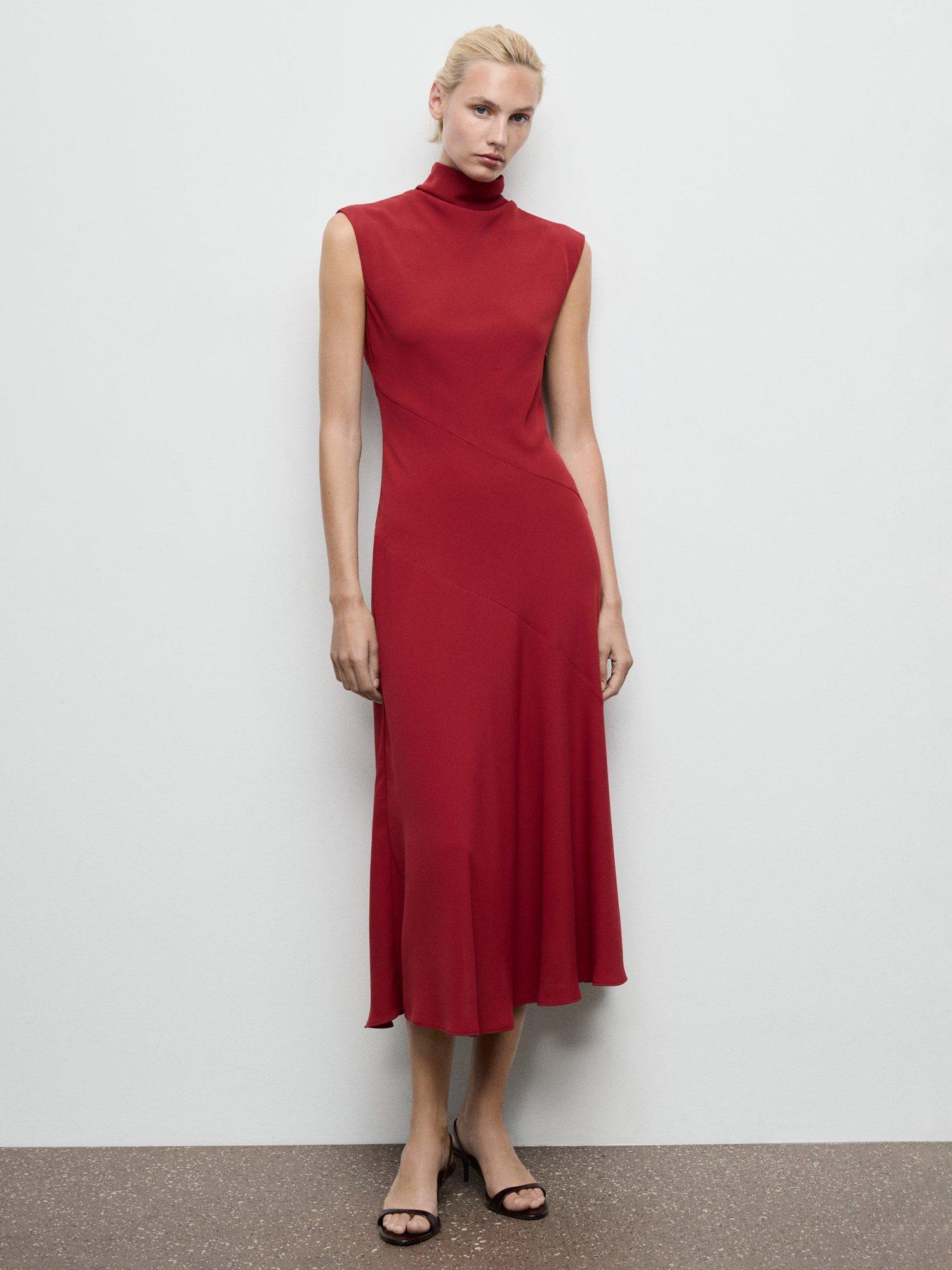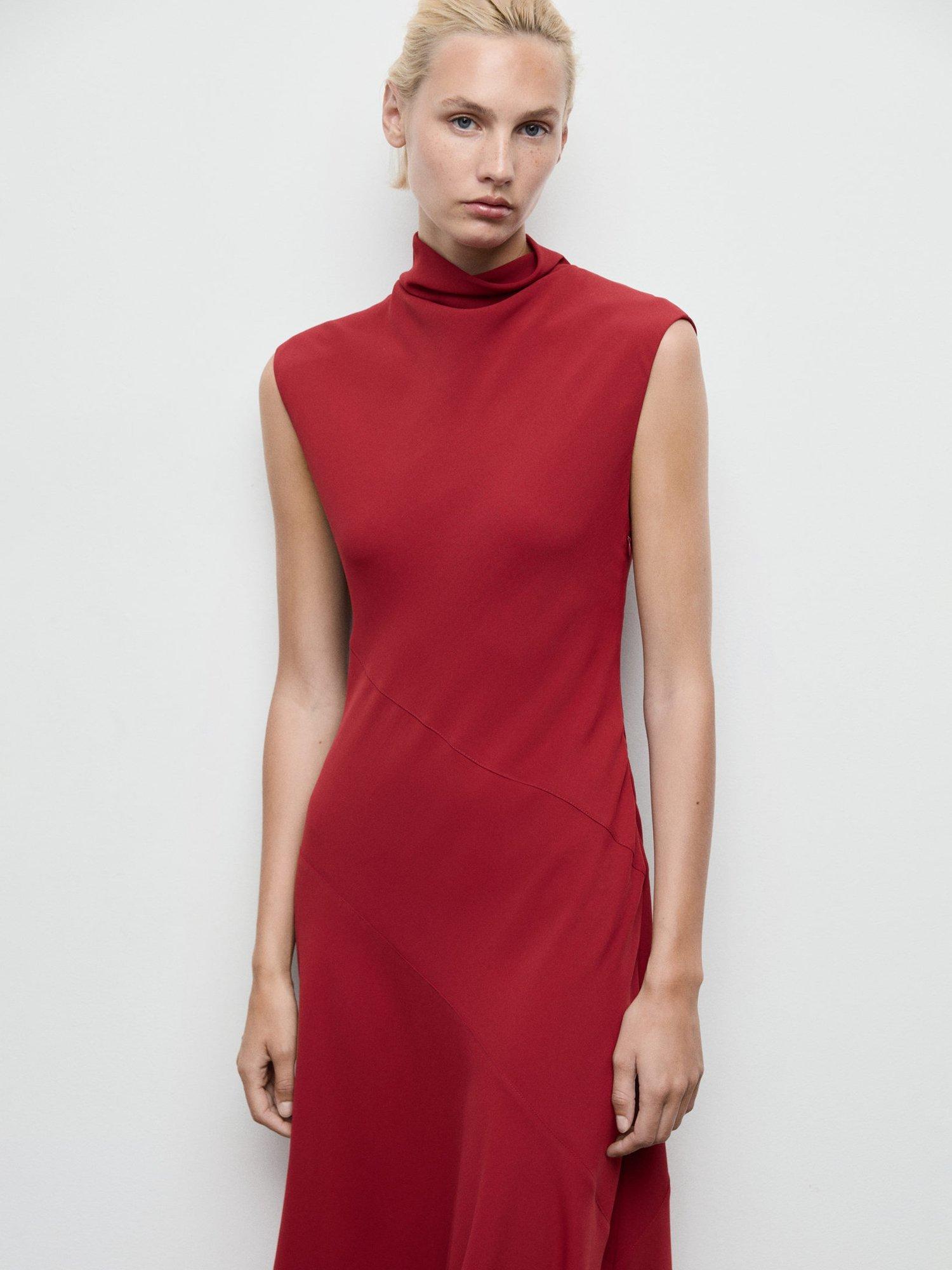 Mango's draped midi dress. The high neck design and sleeveless cut offer you expressive style with comfort, making it your perfect choice for memorable occasions.