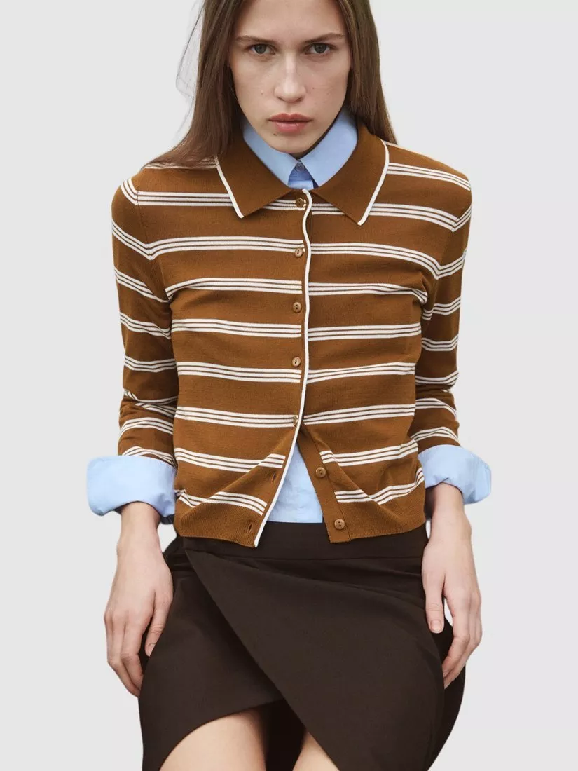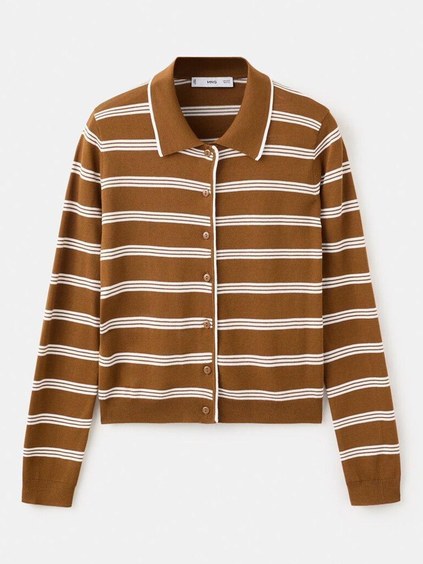 Framed with a collar neckline, this lightweight cardigan by Mango is designed with classic stripes throughout and is cut from a cotton blend for breathable wear.