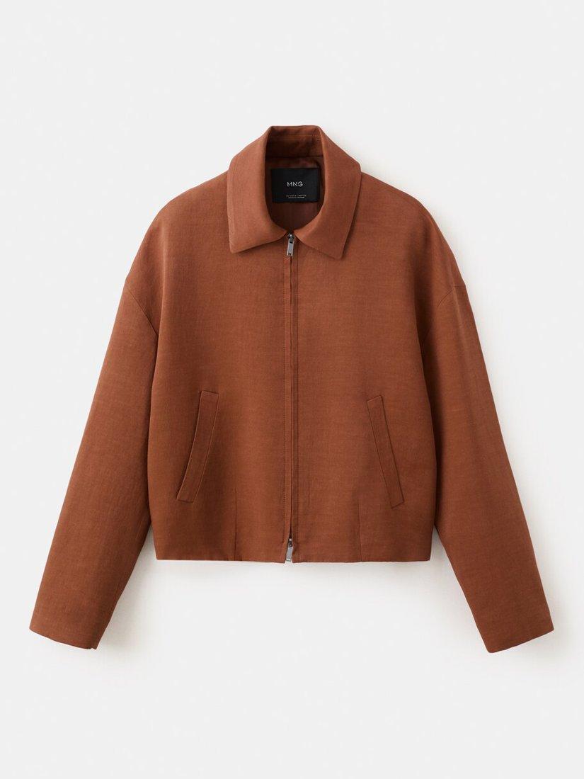 A cropped Harrington-style jacket by Mango. Its regular, boxy cut and zip front keep you comfortable, while the collar gives off a confident feel.