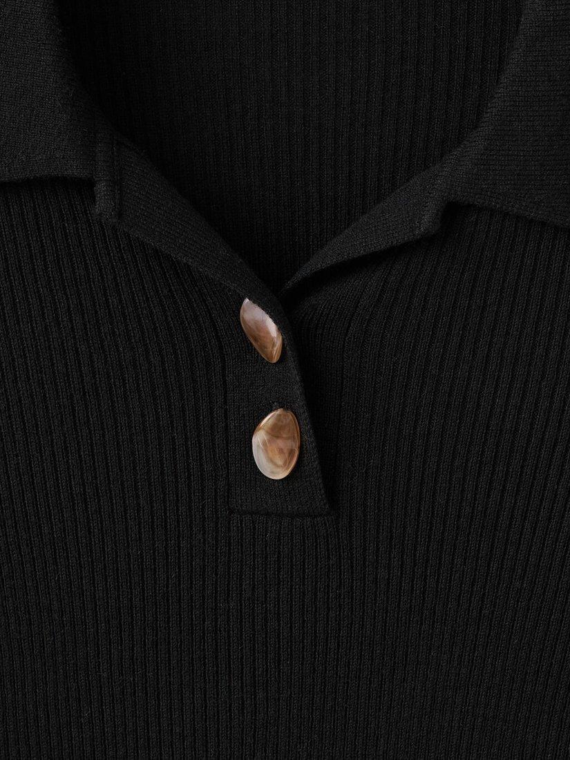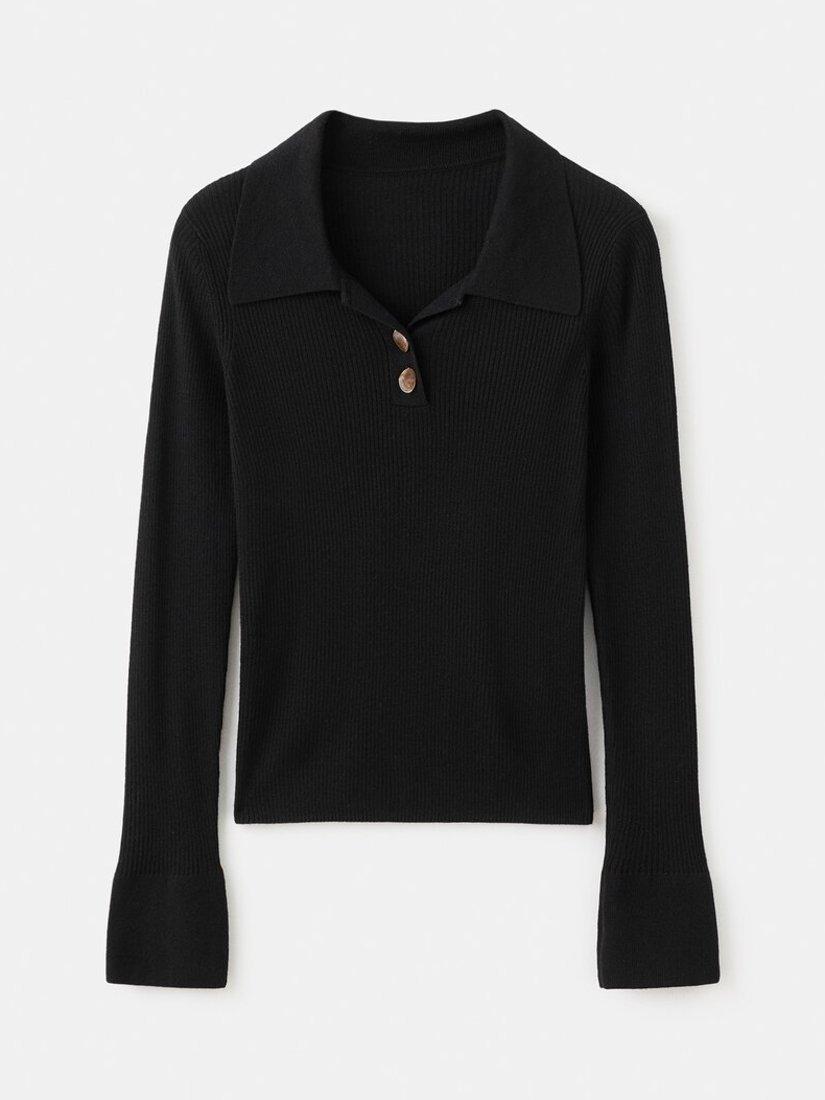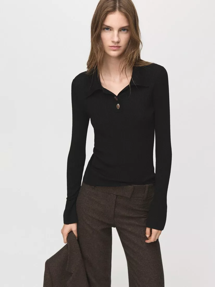 A ribbed knit jersey top from Mango, woven from a wool blend. Featuring a fitted polo collar, long sleeves and tonal buttons, it's one you'll reach for again and again.