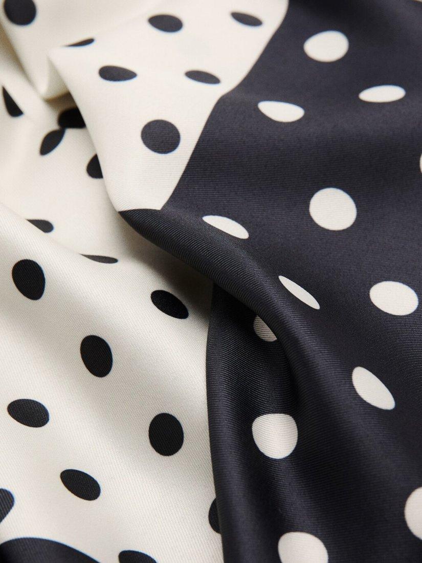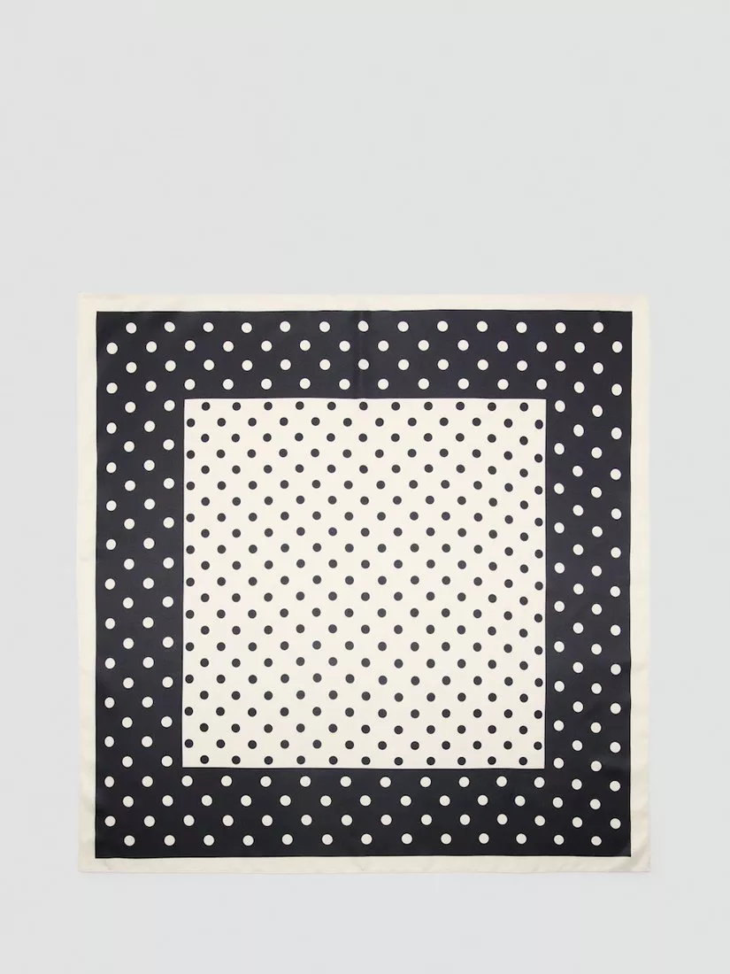 Adding a lively accent to your looks, this contrast polka dot square scarf is light and easy to style.