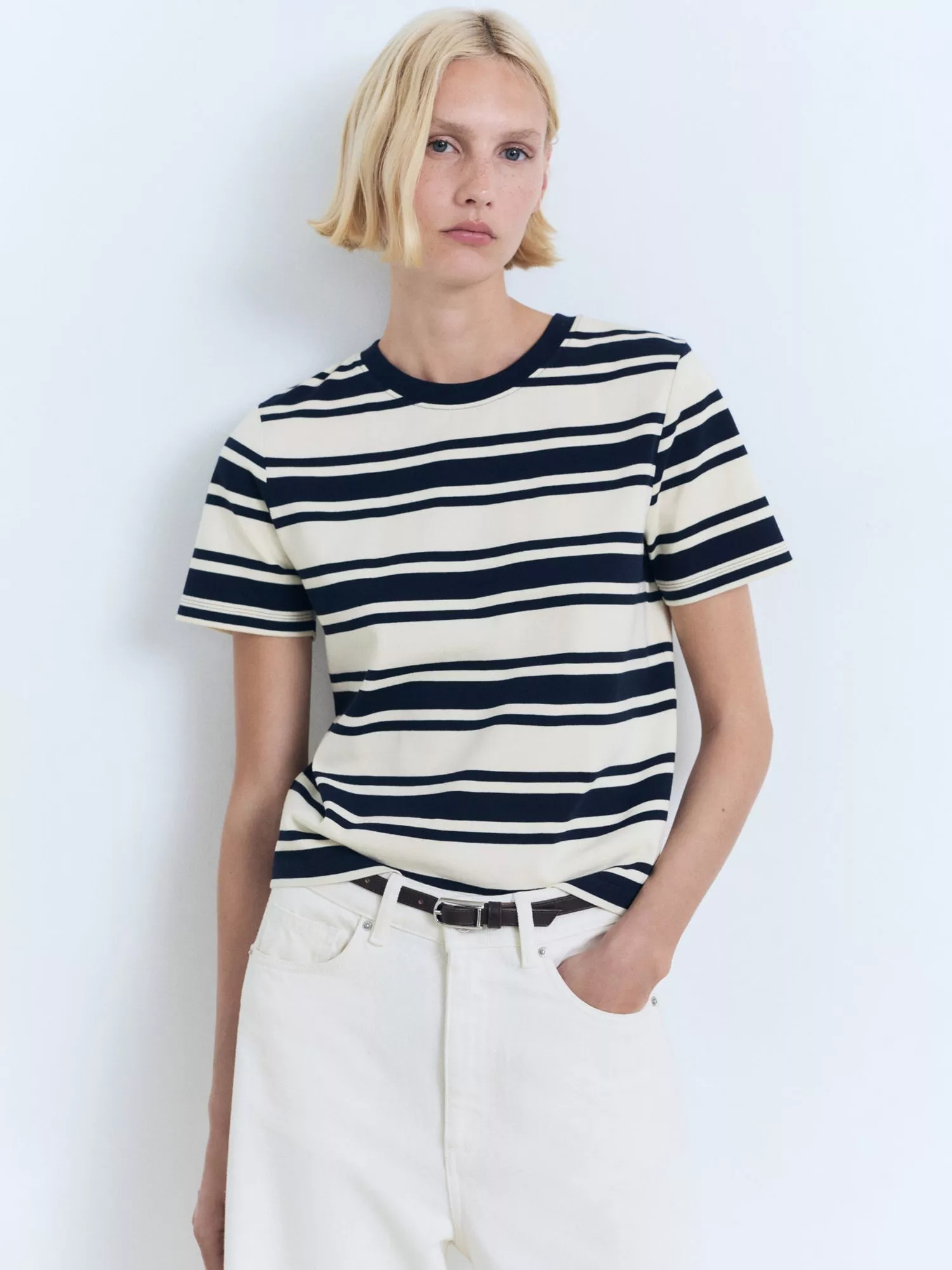 Made from 100% cotton, this striped t-shirt from Mango features a contrast round neck and short sleeves.