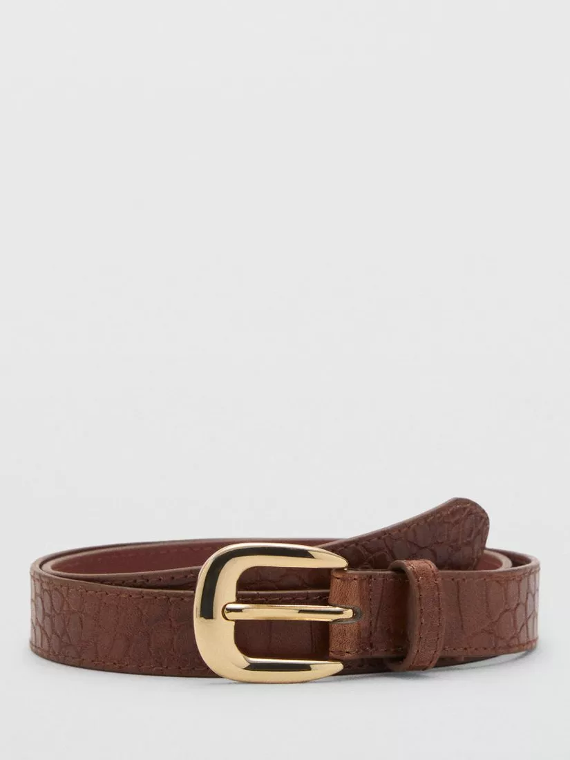 Mango's textured croc-effect belt – a striking statement piece designed for both ease and impact, perfect for elevating any outfit.