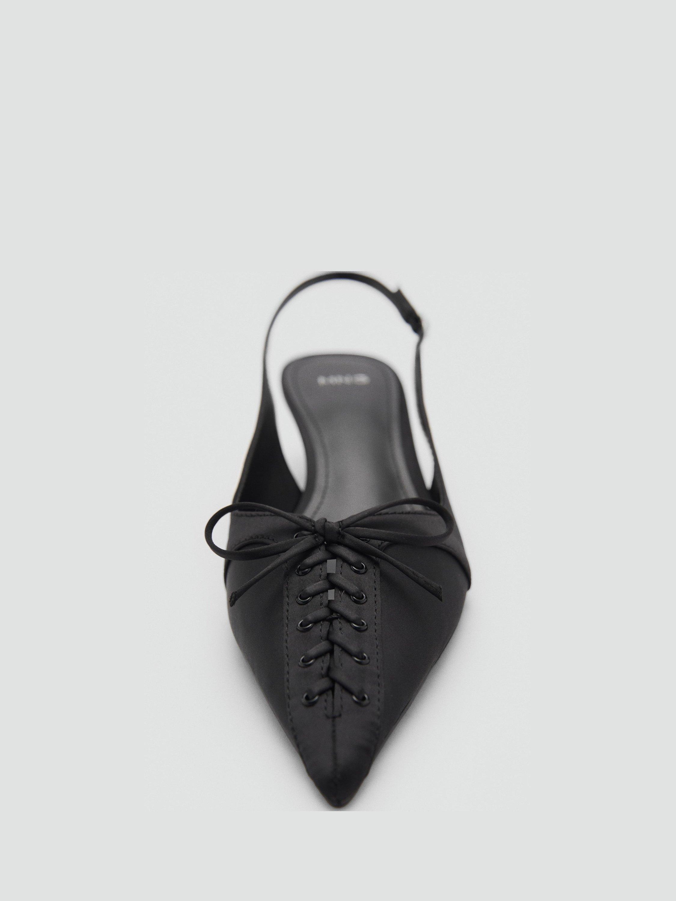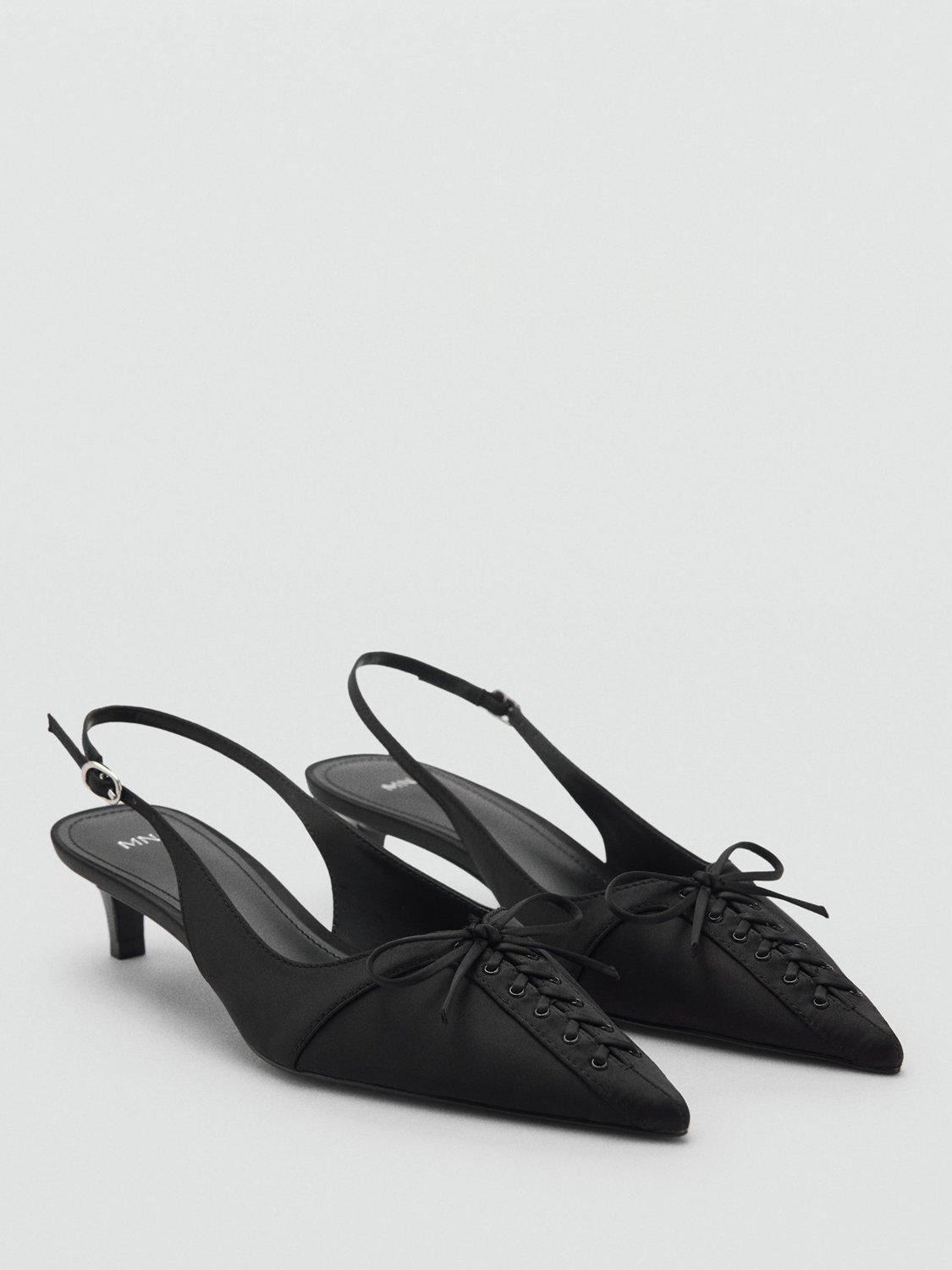 In a classic court silhouette with a kitten heel, this pair of heels by Mango features a pointed toe with a lace-up design.