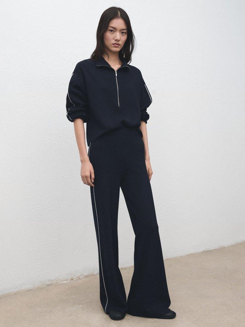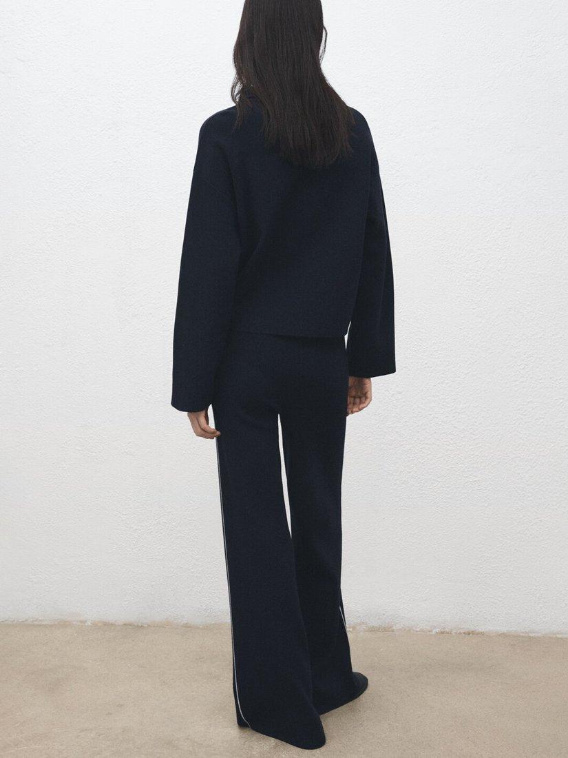 MangoCosmus Side Stripe Knit Trousers, Navy