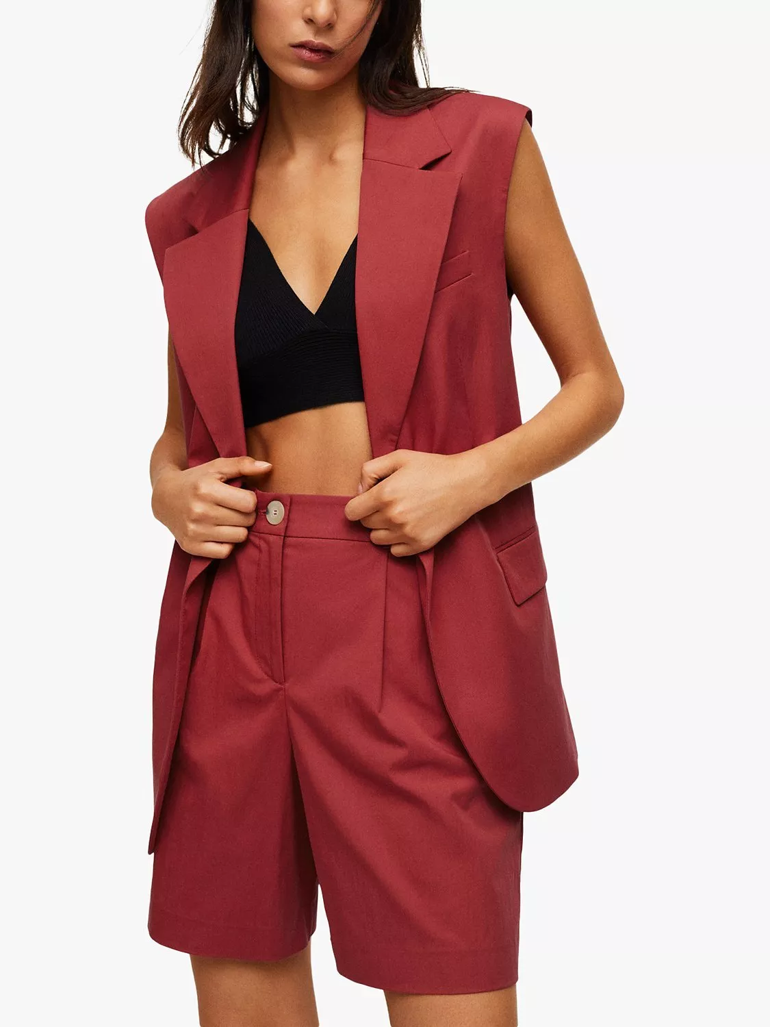 MangoCotton Blend Pleated Bermuda Shorts, Red