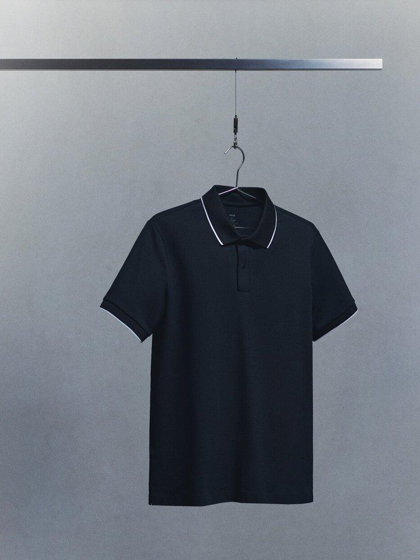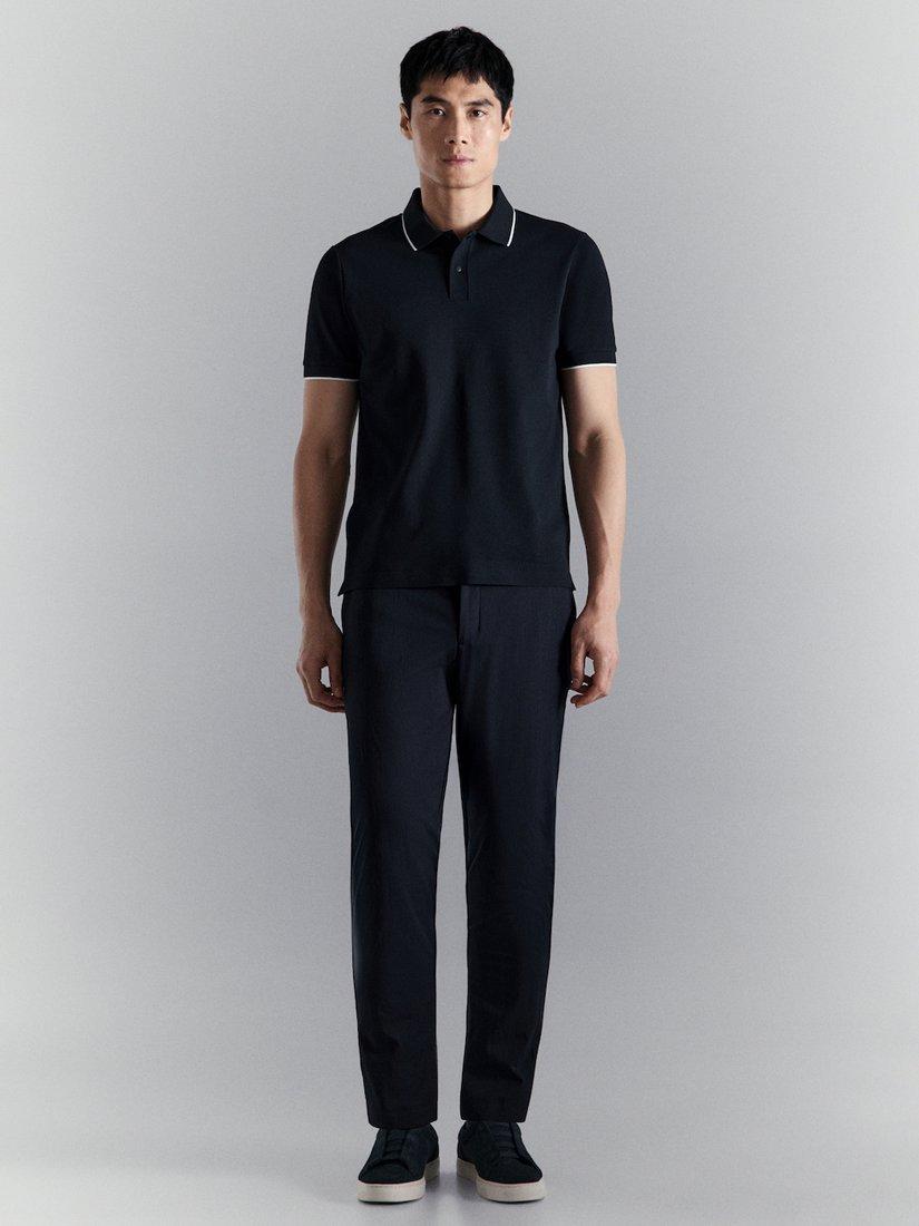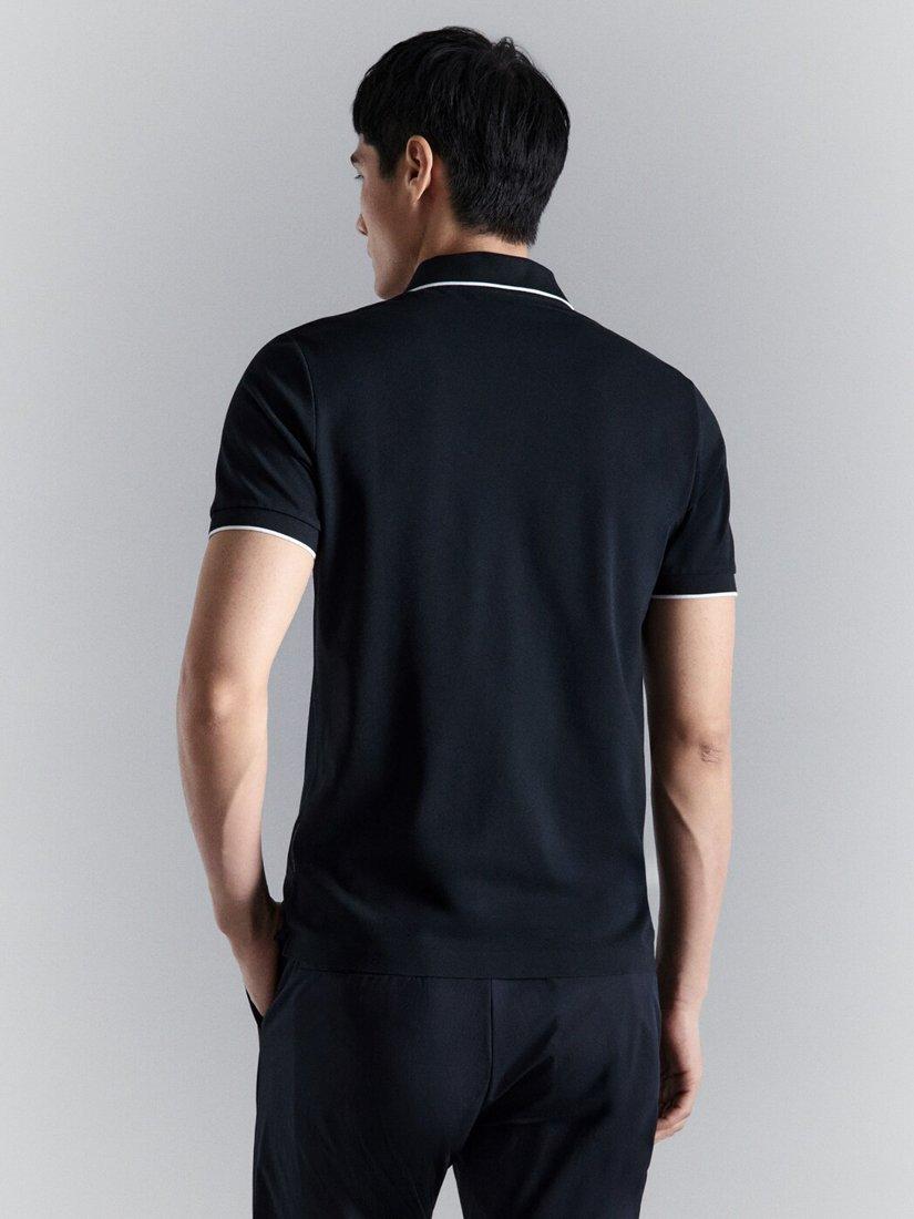 A short sleeve polo shirt, offering all-day comfort. Made from a stretch piqué fabric and cut to a slim fit, it features a smart contrast ribbed collar and a side-slit hem for a modern, sporty touch.