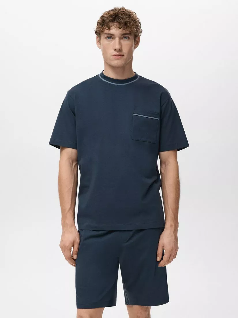 MangoCotton Blend Short Pyjama Set, Navy