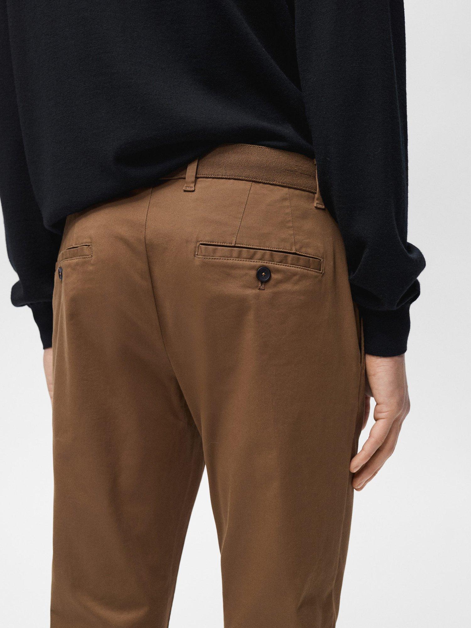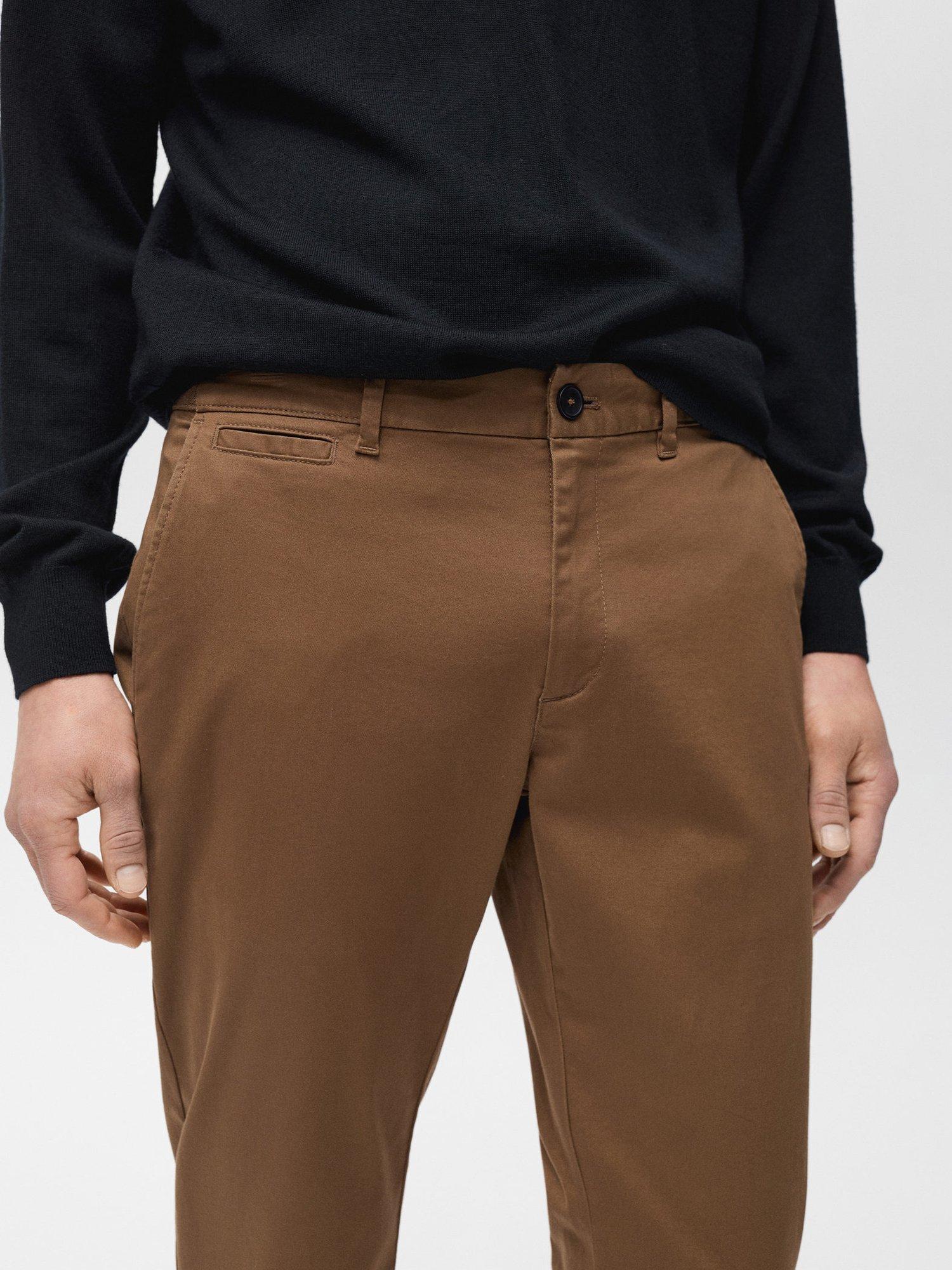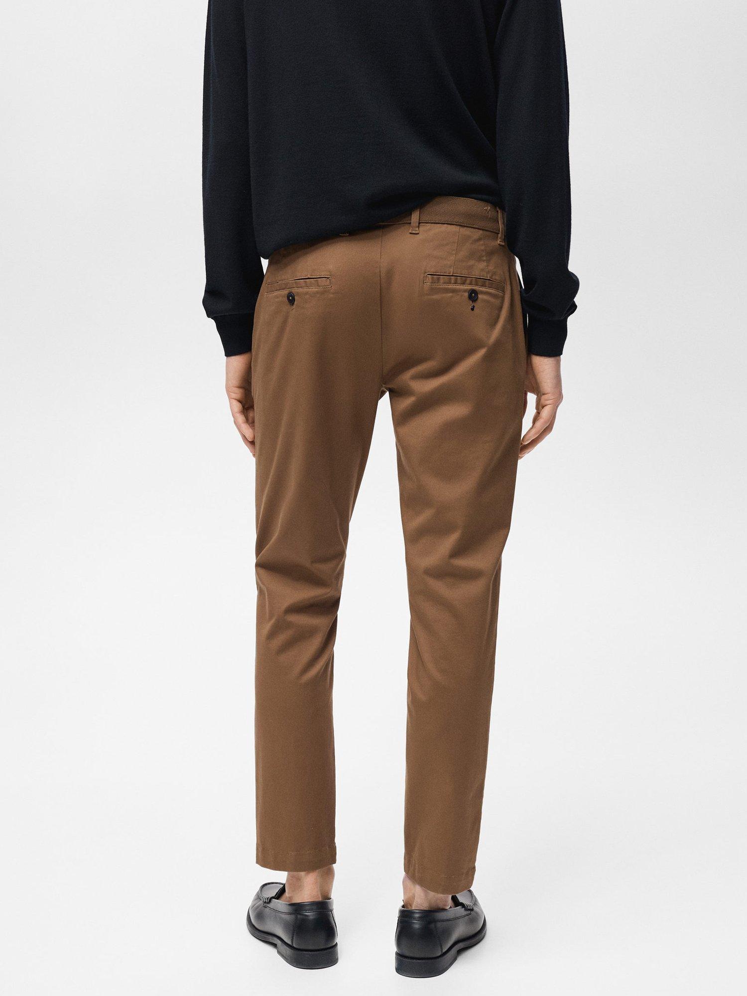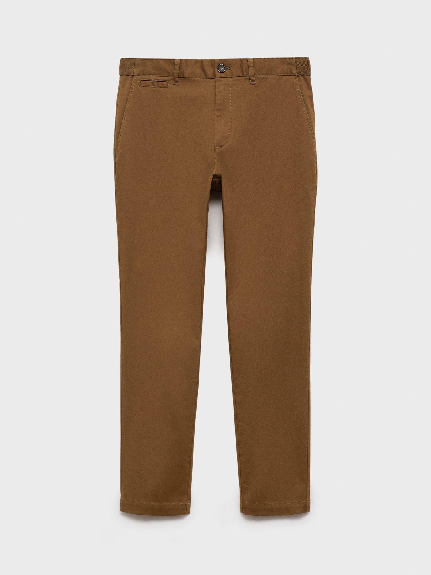 MangoCotton Blend Tapered Fit Chinos, Beige, Brown