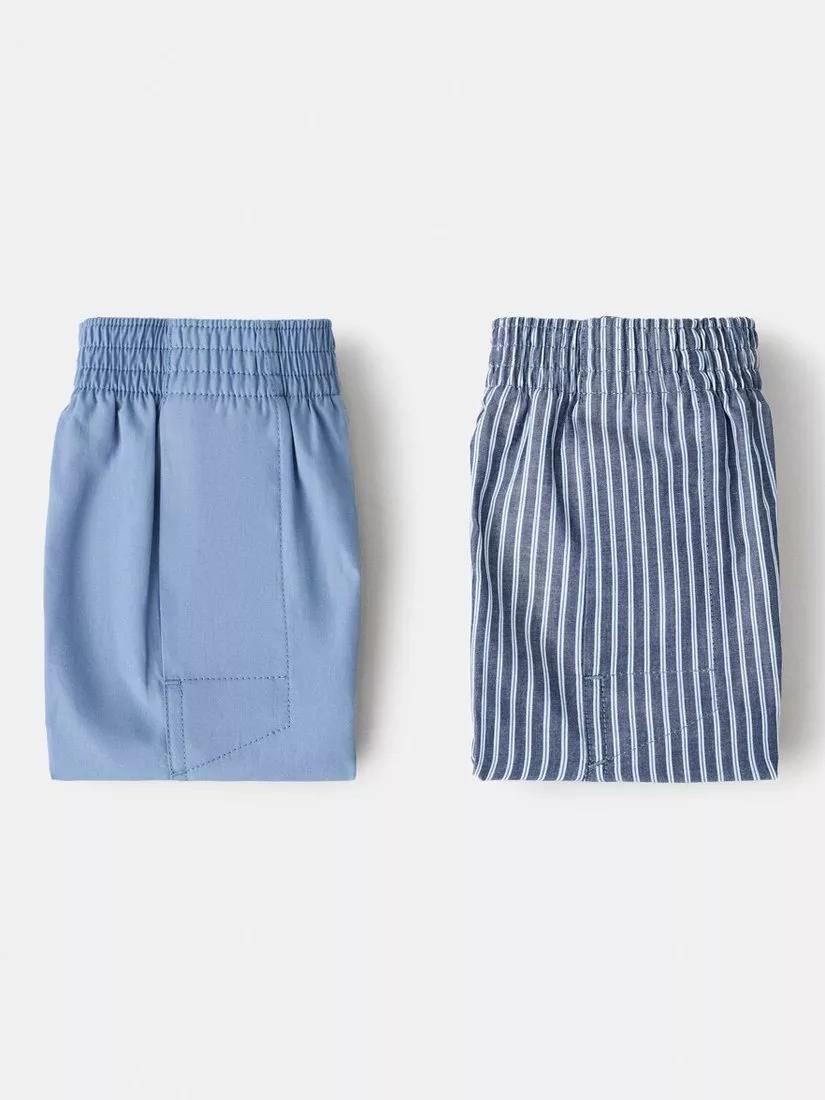 Enjoy everyday comfort with this two-pack of boxer shorts, including one striped and one plain pair. Soft cotton feels great, while the supportive shape and clever design keeps you comfortable at night.