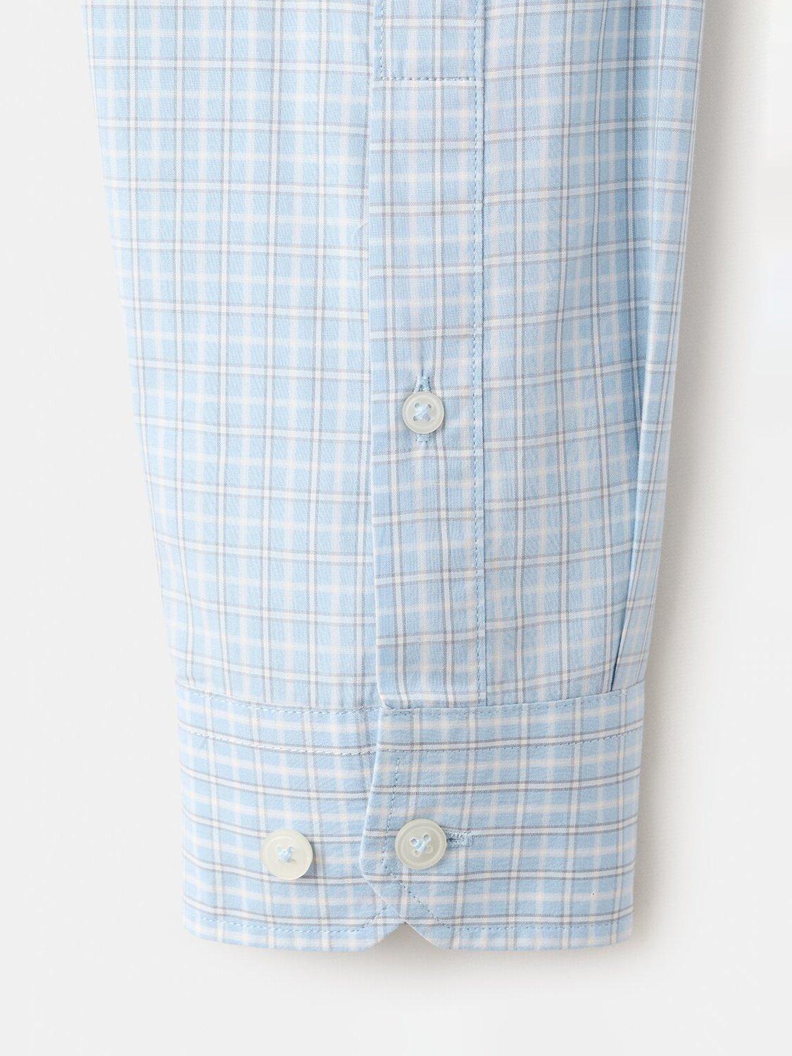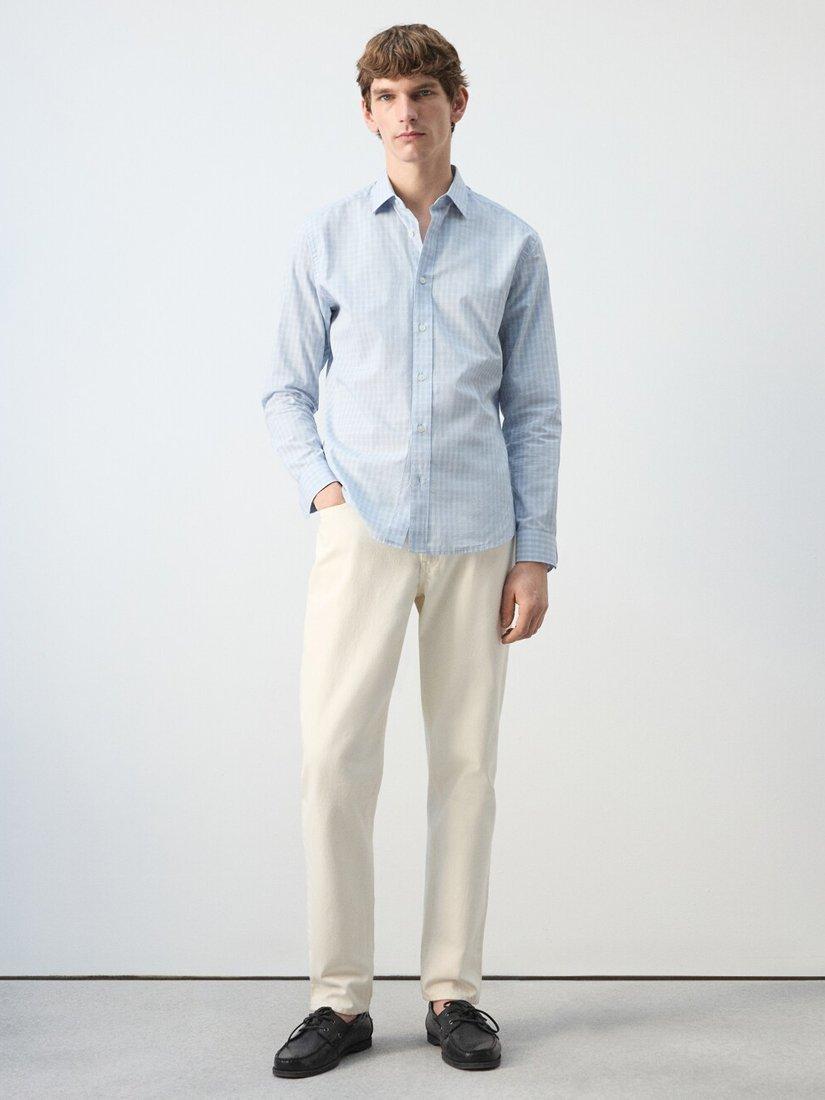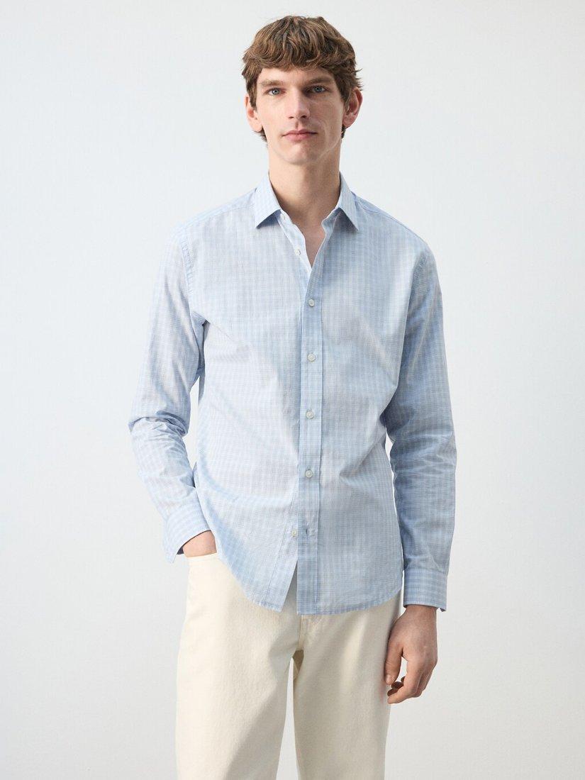 Crisp checked shirt, sculpted silhouette and airy drape ideal for smart casual days and weekend gatherings.
