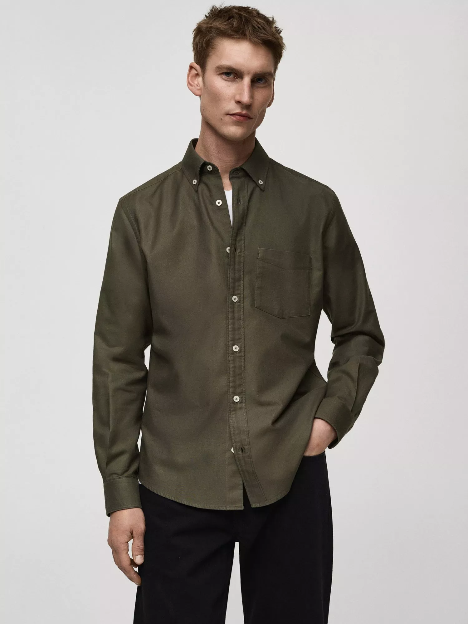 MangoCotton Regular Fit Oxford Shirt, Khaki
