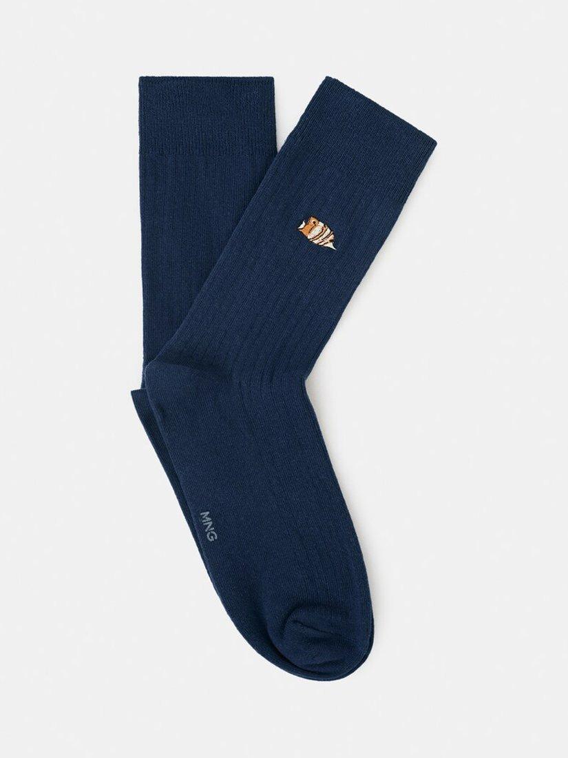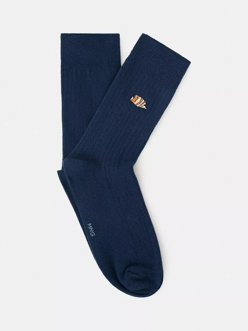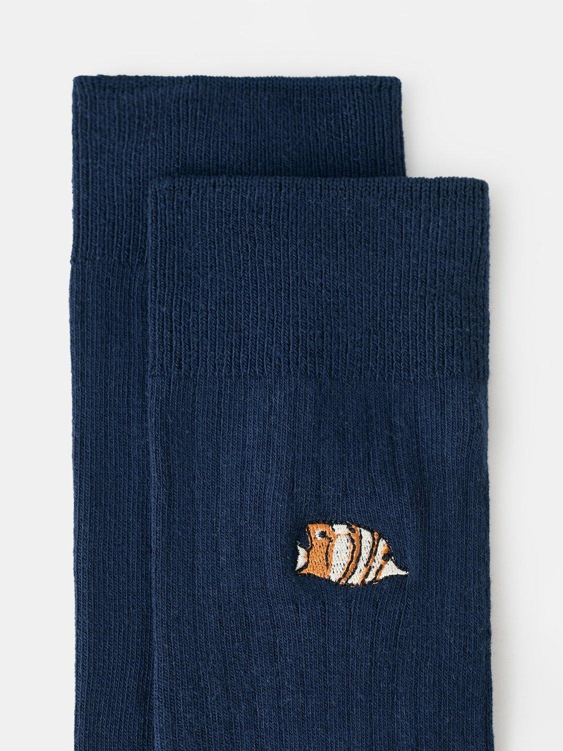 MangoCotton Rich Fish Embroidered Ankle Socks, Navy