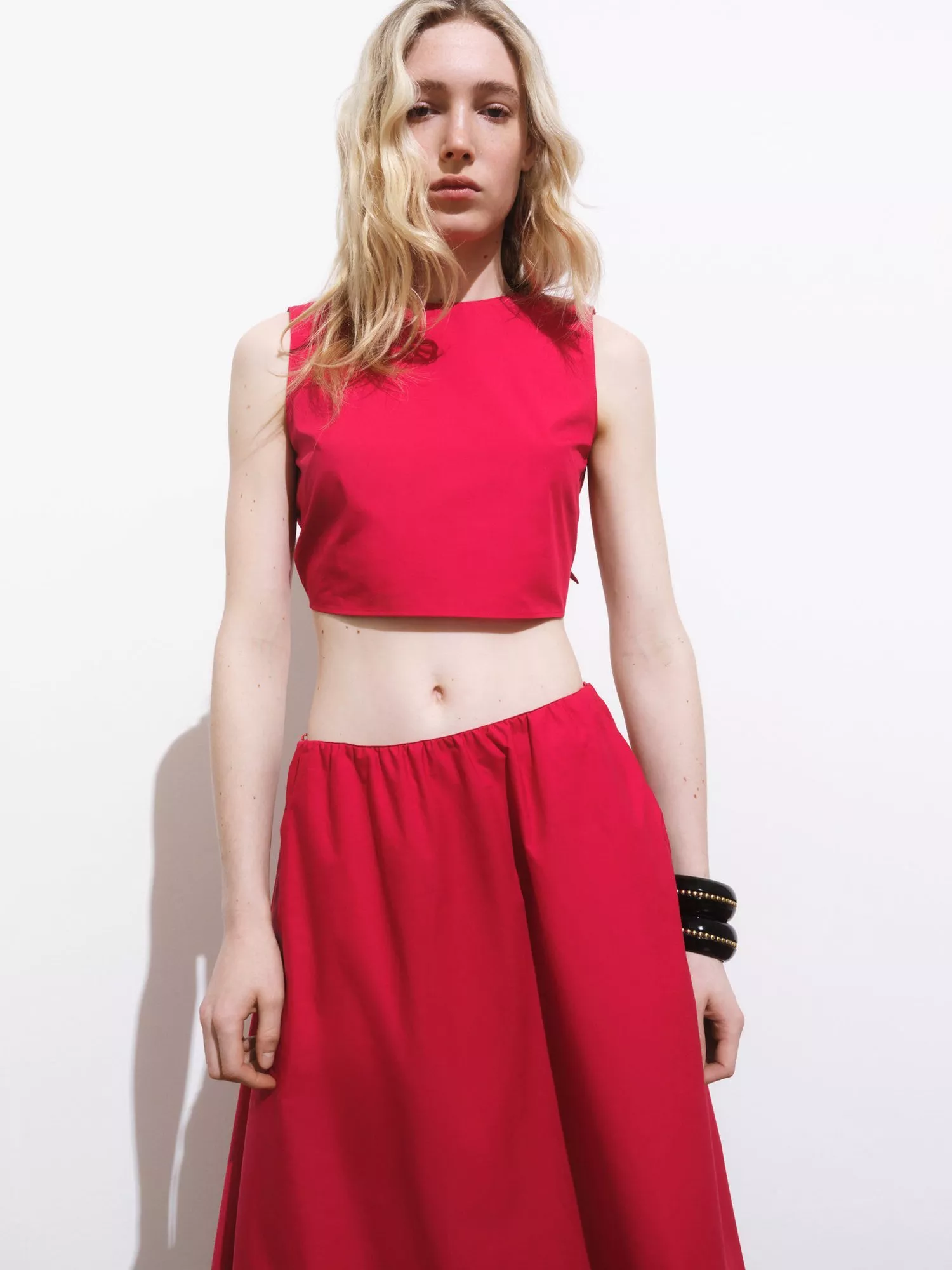 With a knot detail at the back, this round neck crop top from Mango is made from a comfortable cotton-rich fabric. Pair with summery skirts when the weather warms.