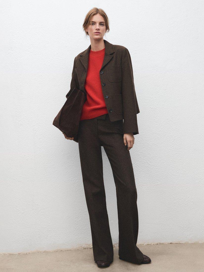 MangoCrew Neck 3/4 Sleeve Jumper, Red