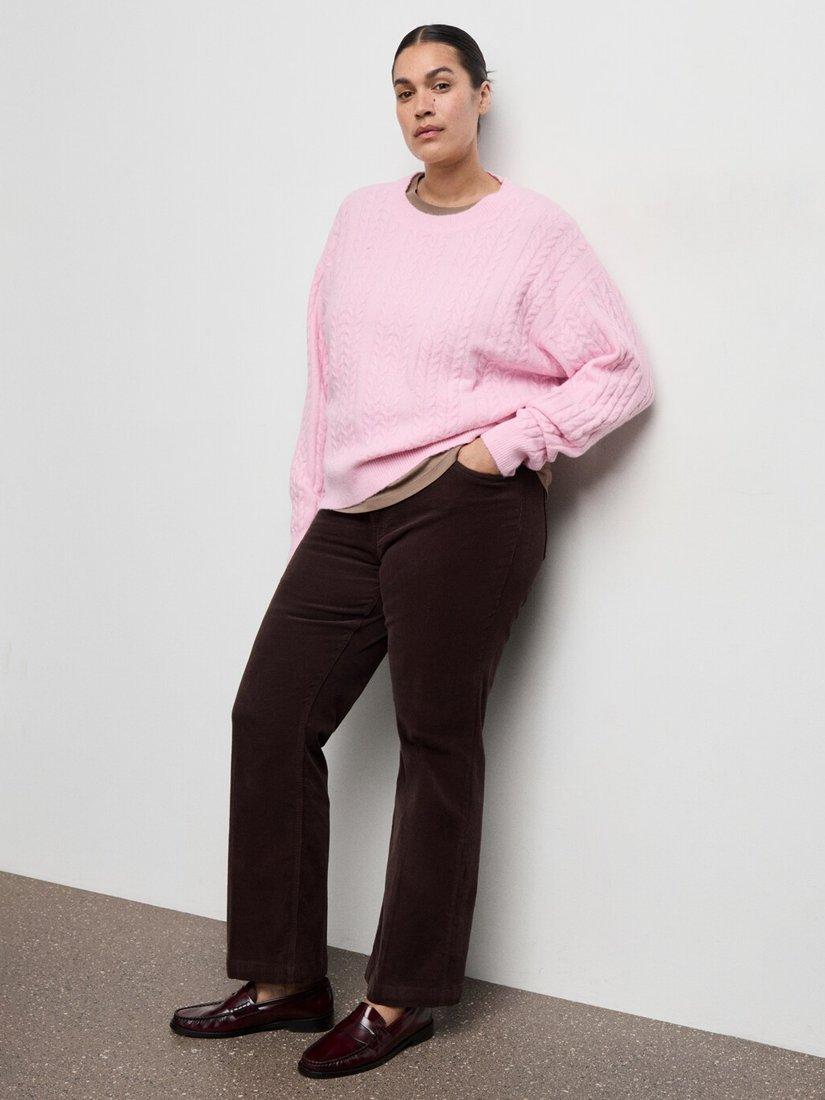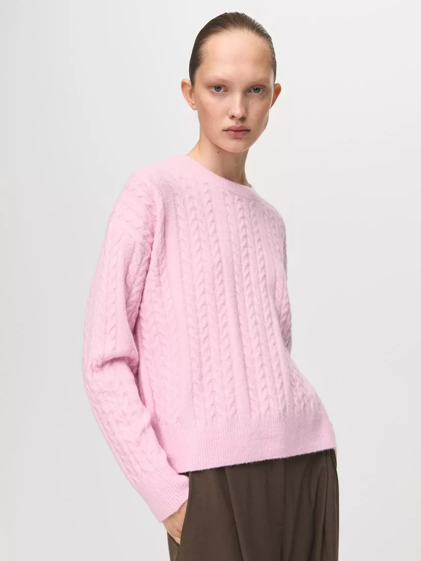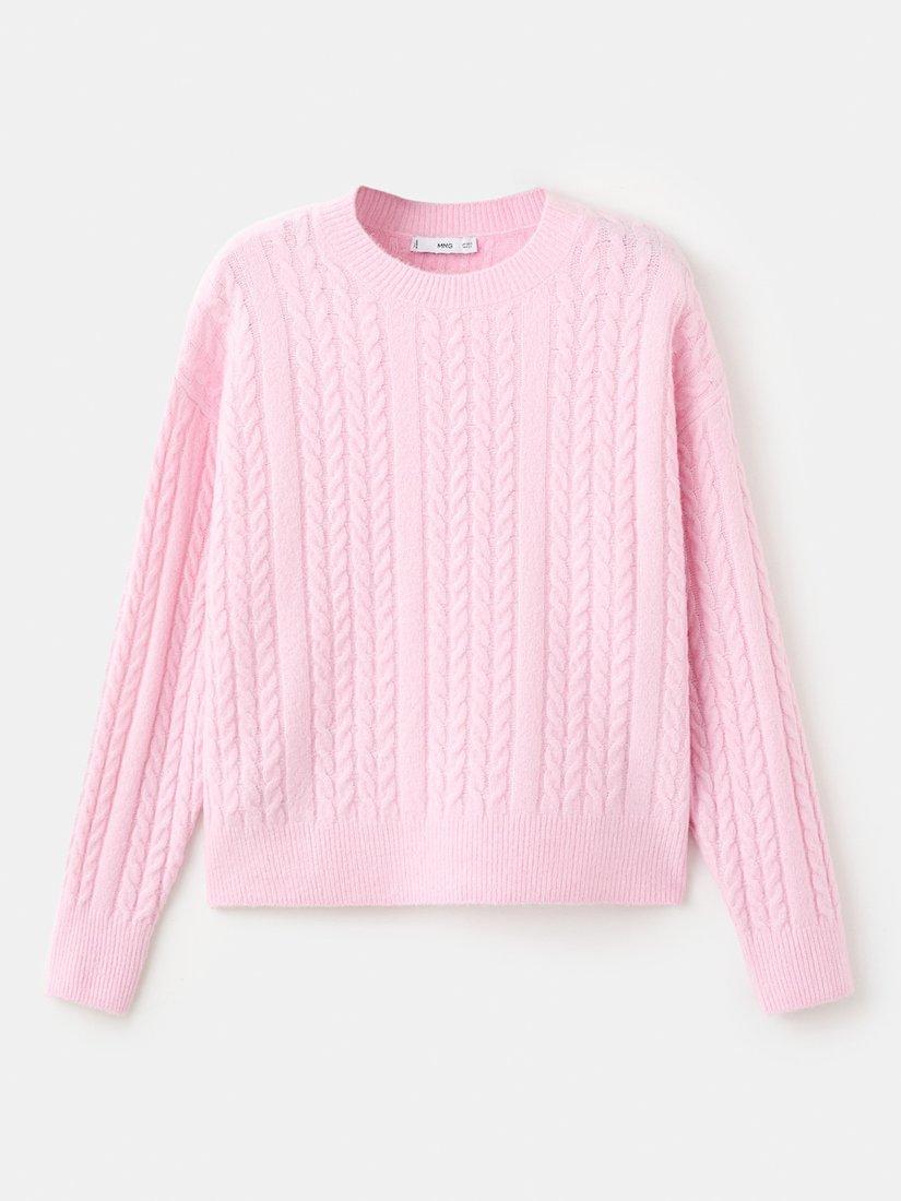 MangoCrew Neck Cable Knit Jumper, Pink