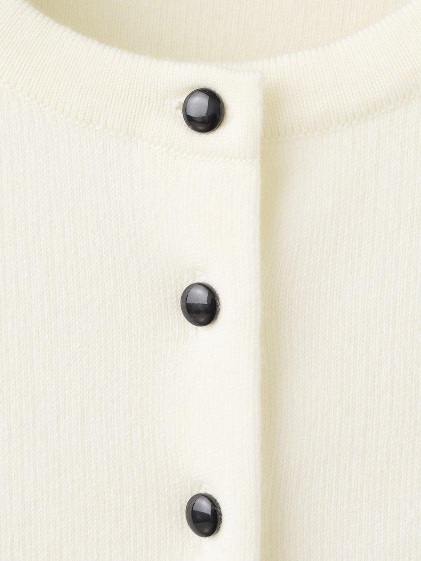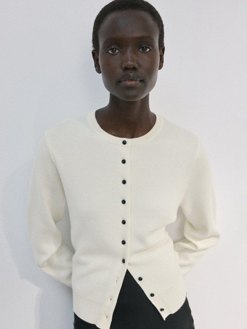 A fine-knit cardigan, designed to keep you comfortable and sharp. Its classic silhouette and contrast button fastening invite you to layer your way.