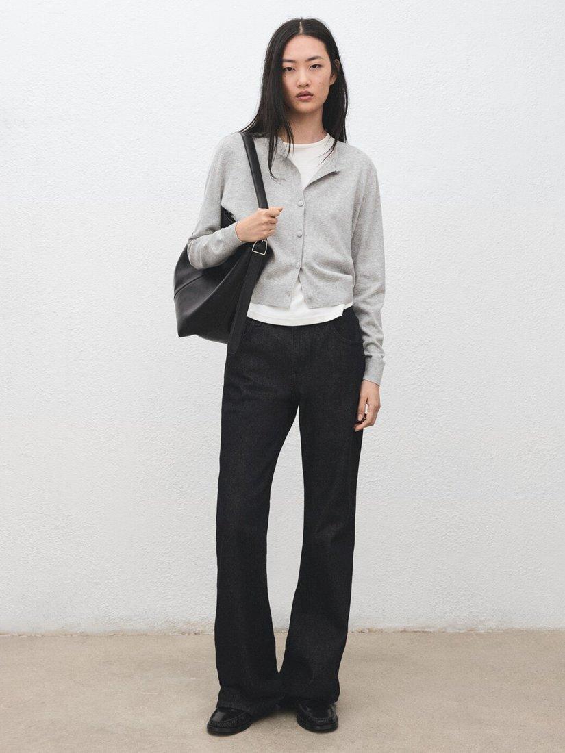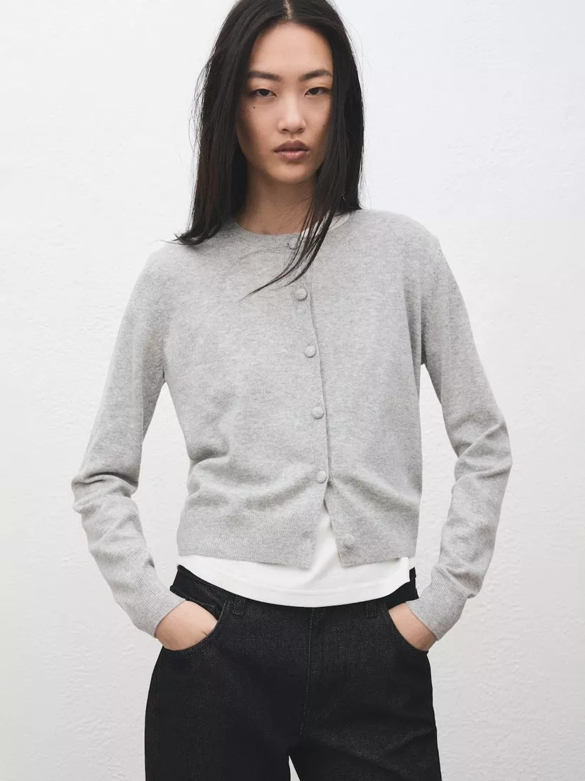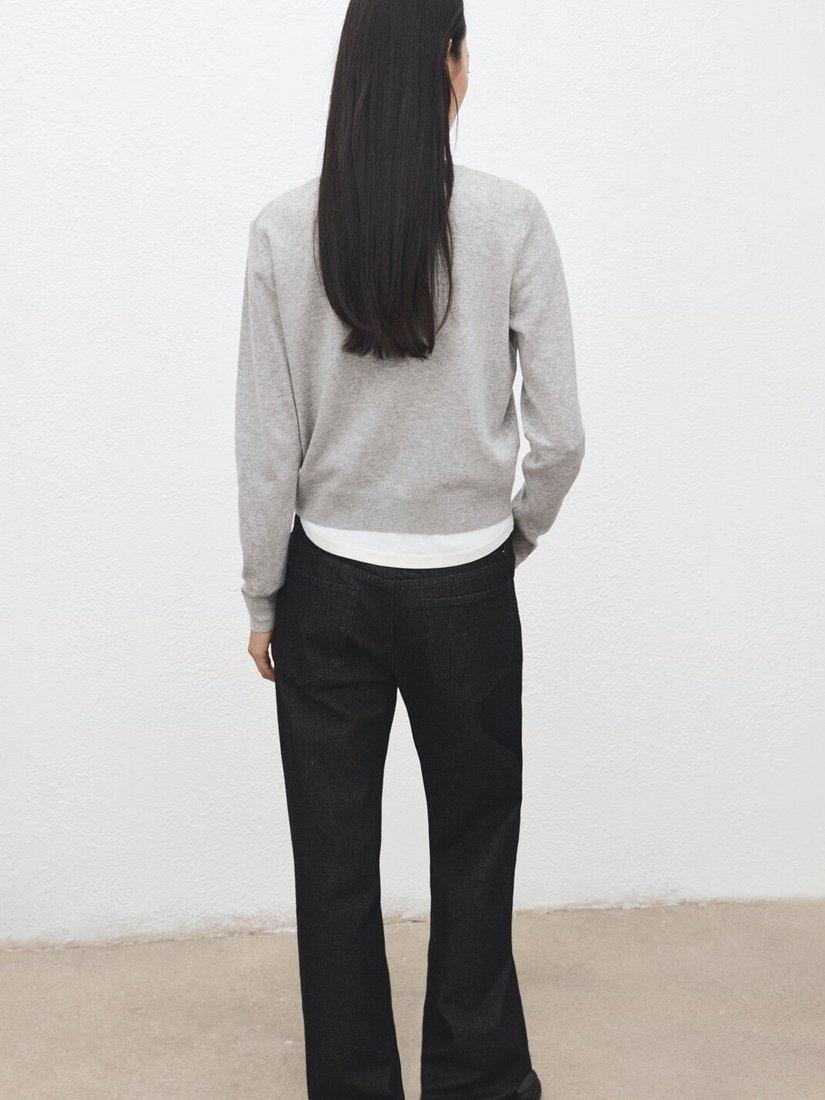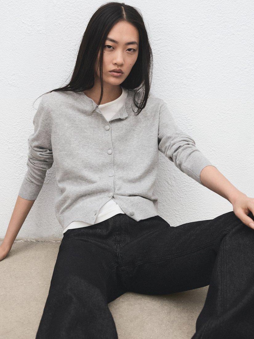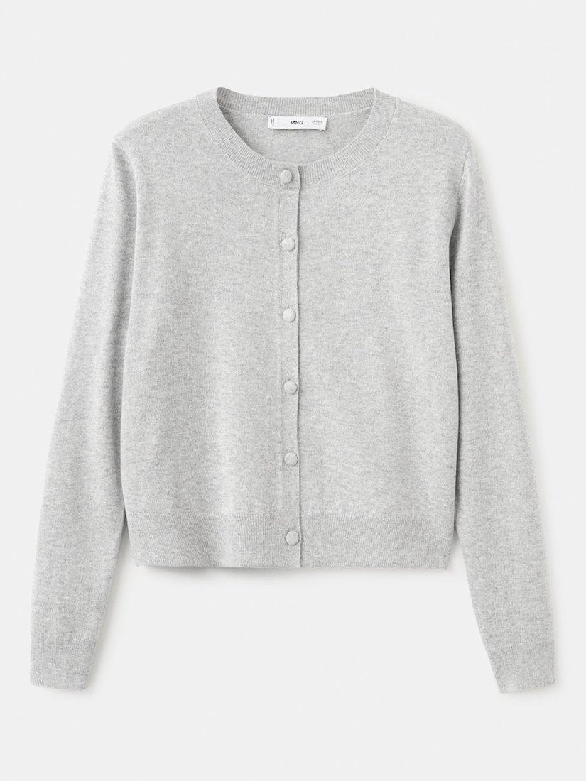 MangoCrew Neck Cropped Cardigan, Light Grey Melange
