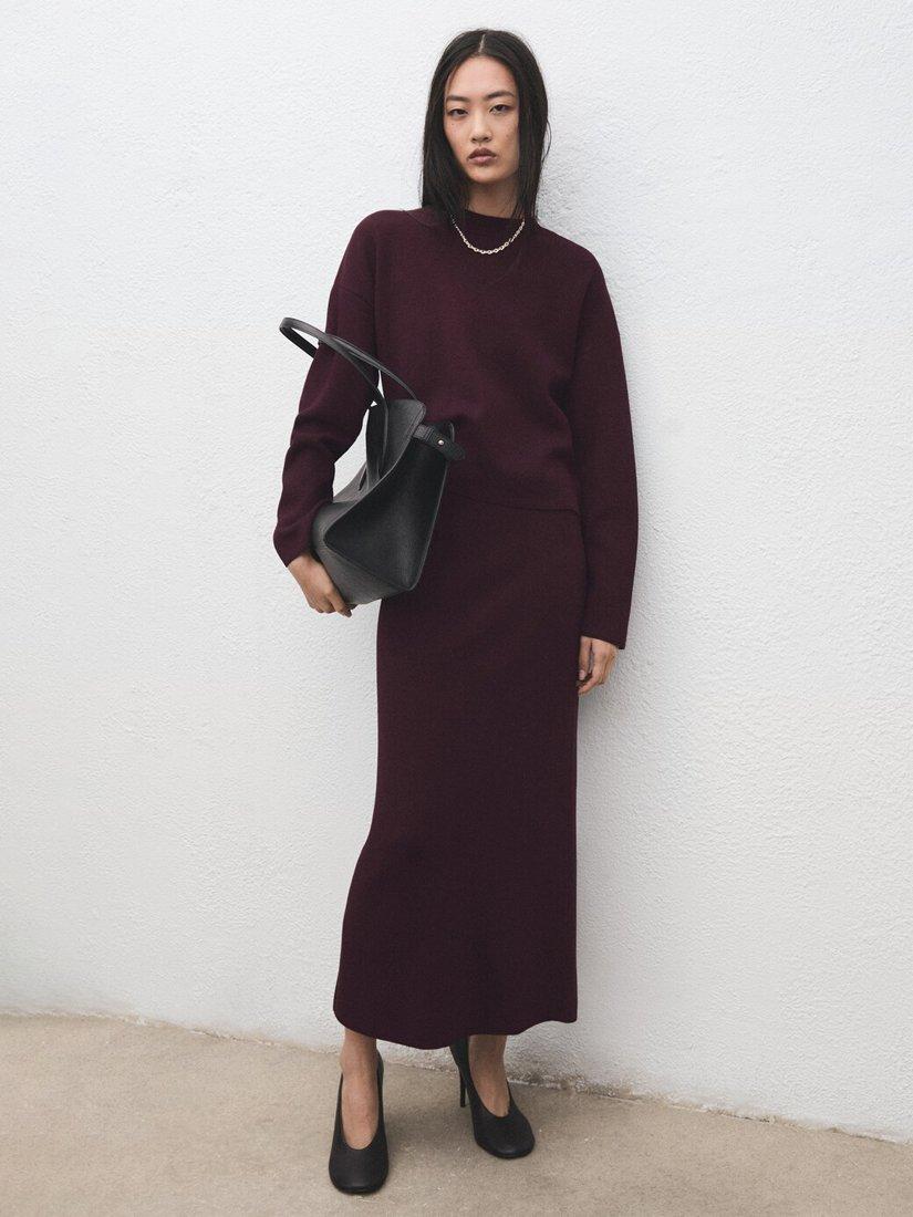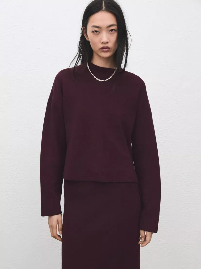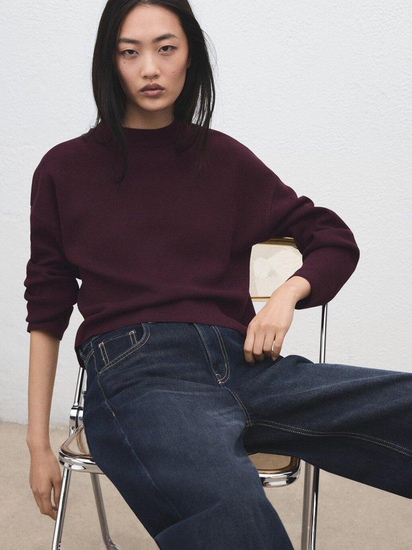 MangoCrew Neck Long Sleeve Jumper, Wine