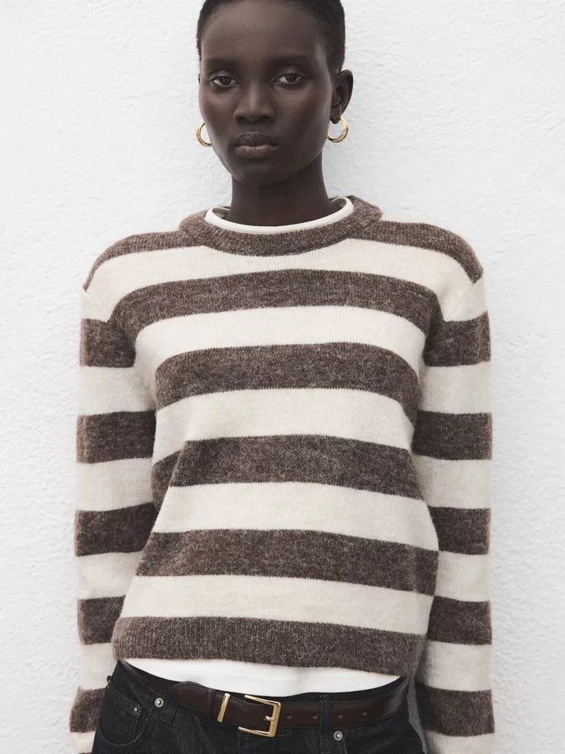 Lightweight and striking, this fine knit jumper features smart stripes and a classic crew neck. Its soft touch makes everyday layering comfortable, while the long sleeves offer versatility for any setting.