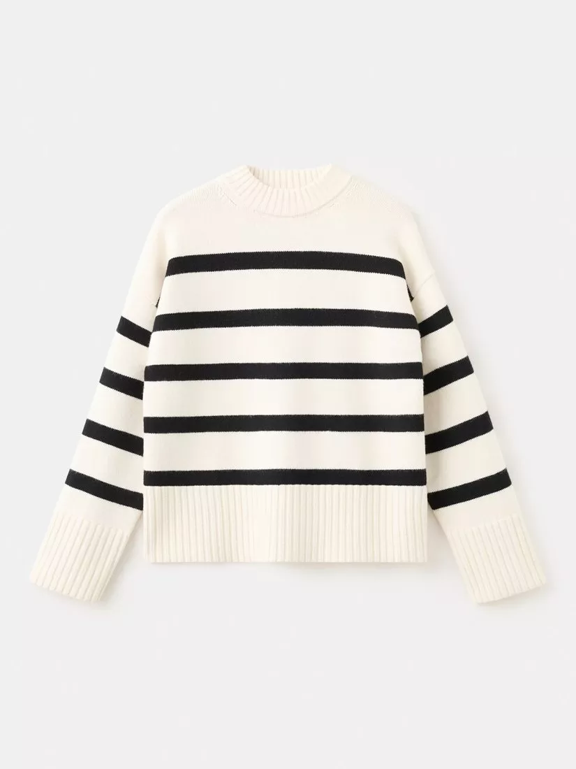 A soft, structured crew neck jumper by Mango. Its medium, boxy knit keeps you comfortable, while the striped design and long ribbed cuffs make it ideal for layering or wearing solo.
