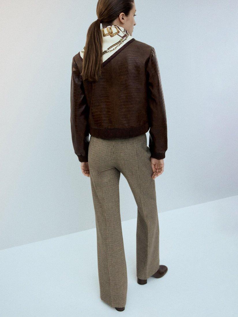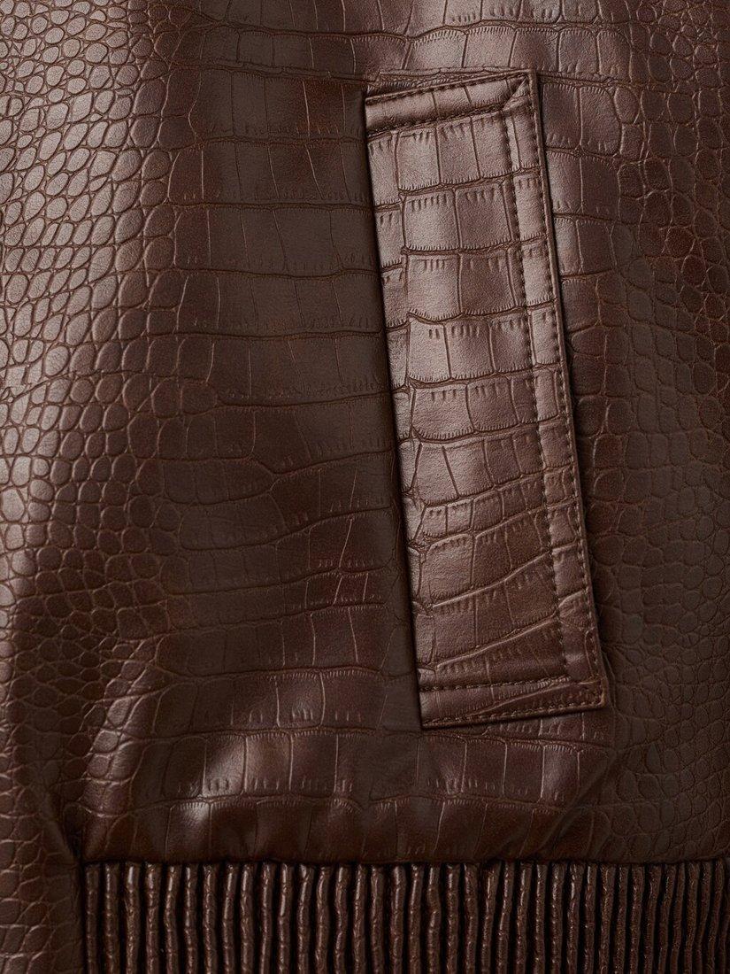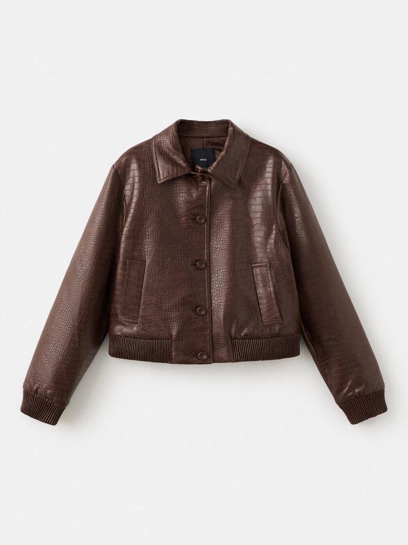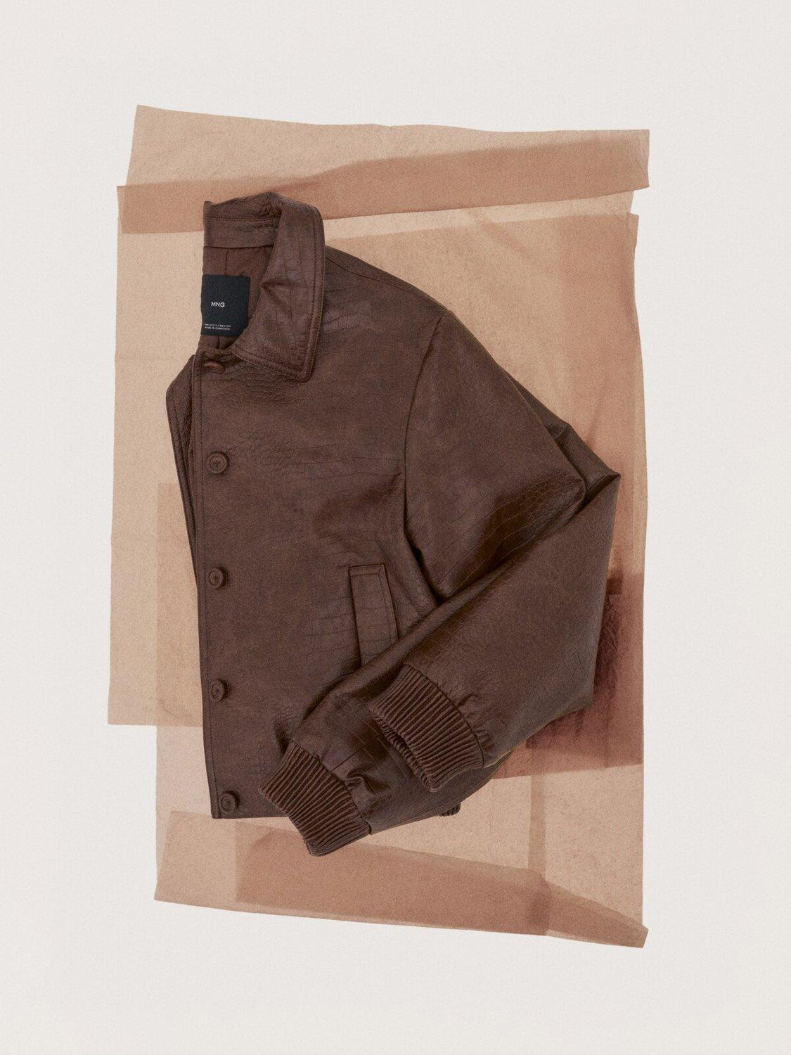 A sculpted regular-length bomber jacket. Its tactile animal texture and classic collar add personality, in a streamlined fit for confident dressing.