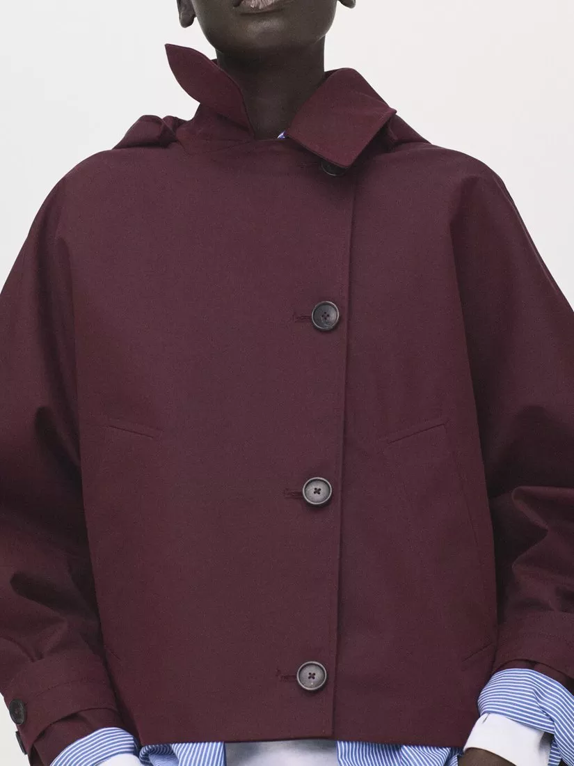This cropped trench jacket keeps you comfortable whatever the weather. Its clever detailing and polished collar add just the right amount of personality, while useful pockets offer practical storage for your essentials every day.