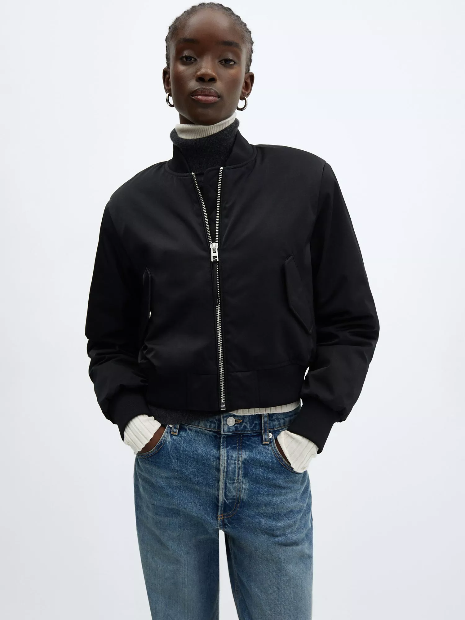 In a distinct bomber style, this jacket by Mango falls to a regular length.