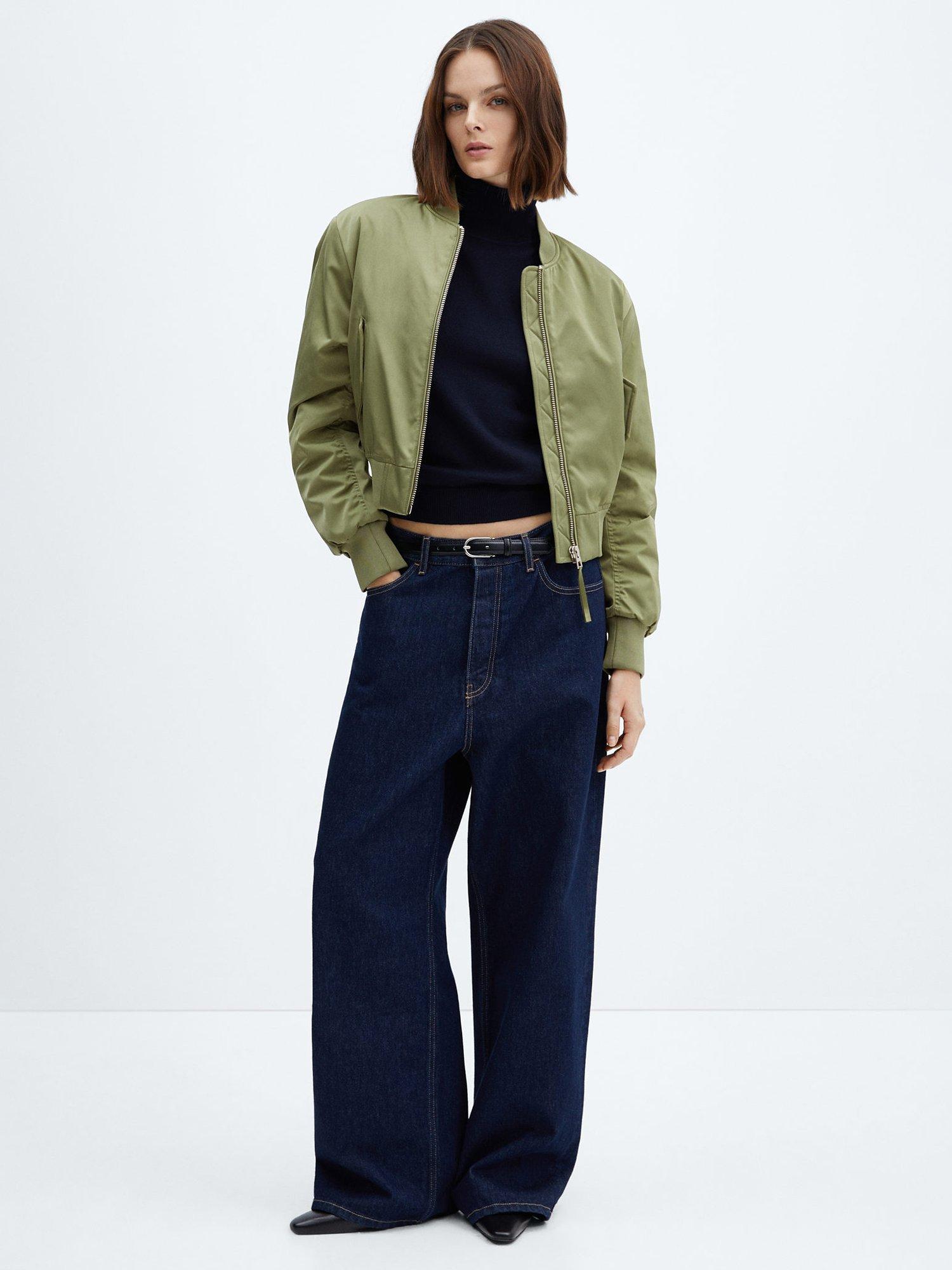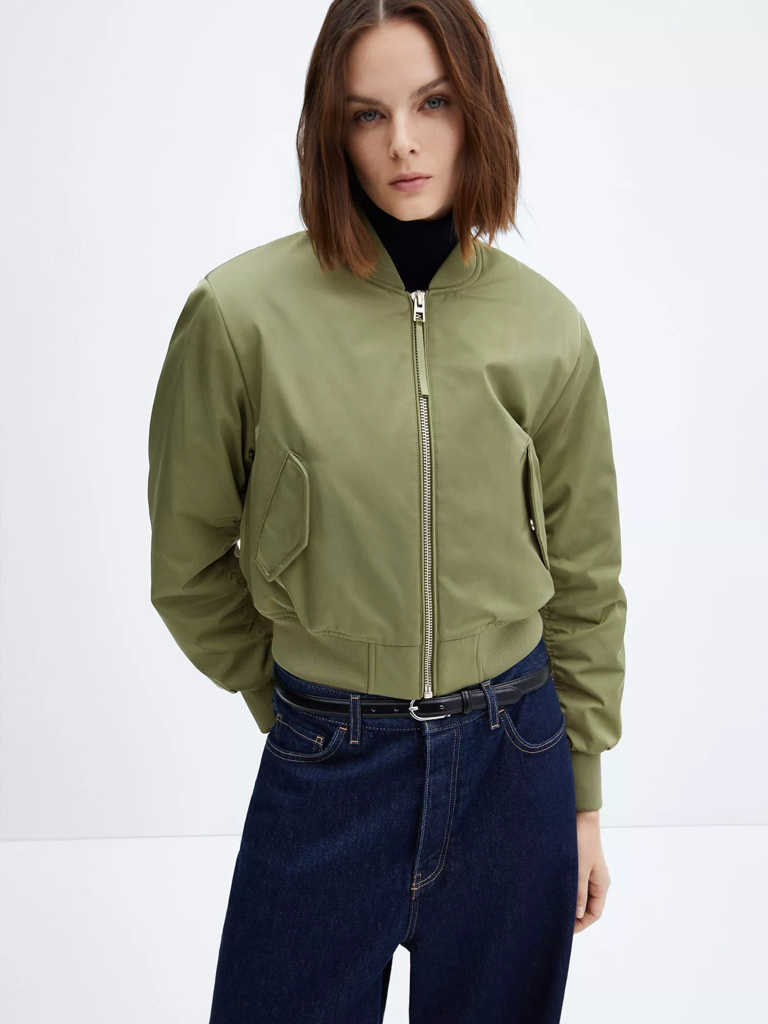 In a distinct bomber style, this jacket by Mango falls to a regular length.