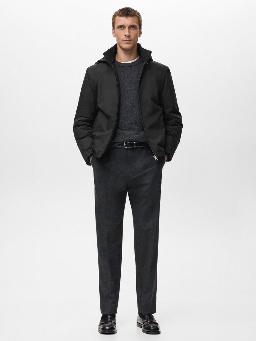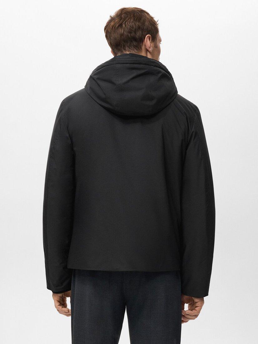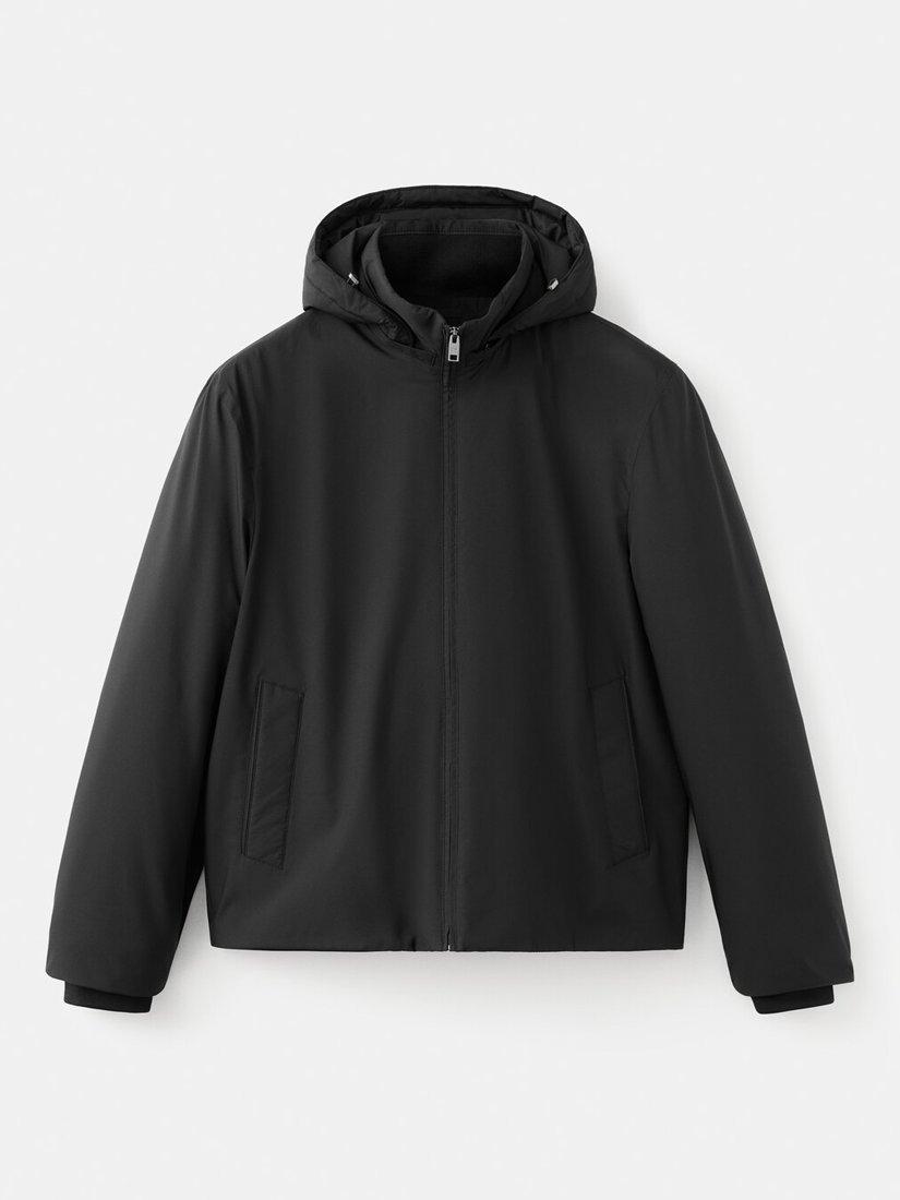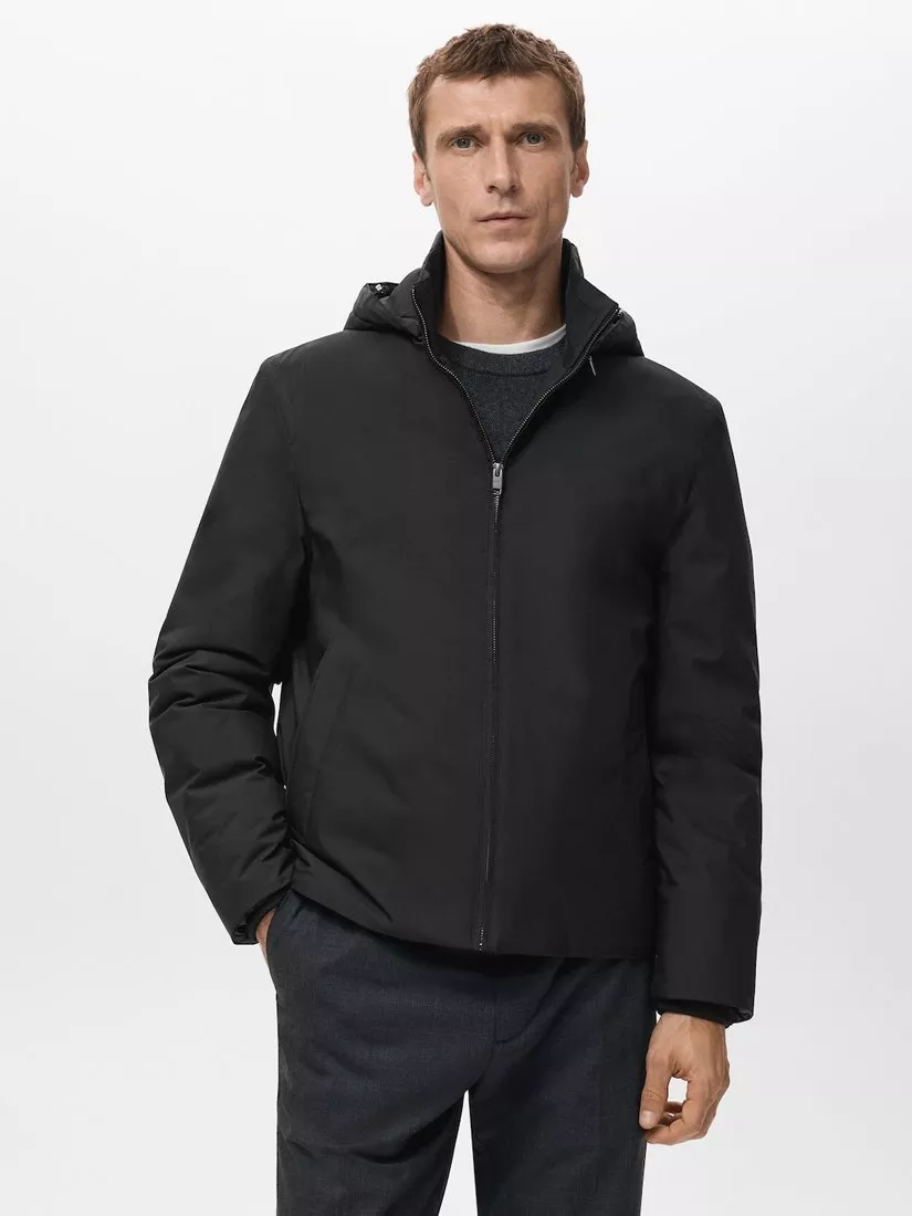 Regular fit jacket, quilted for warmth and made with a technical water-repellent fabric. Styled with an adjustable drawstring hood with a detachable option, two side pockets, an interior pocket and a front zip closure.