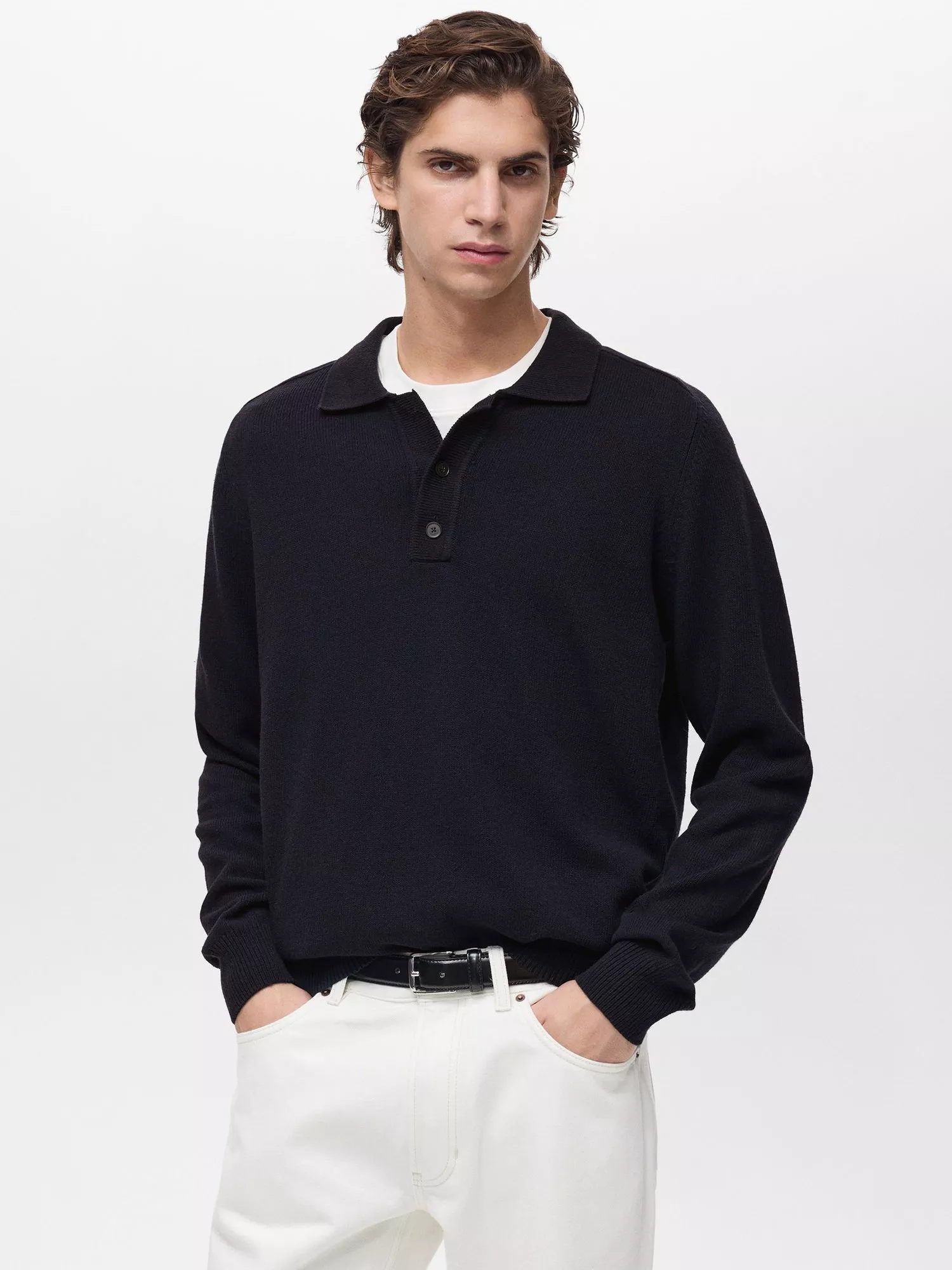 Making weekend dressing effortless, this long sleeve polo shirt from Mango is made from a cotton blend to a cosy regular fit. Pairing with anything from chinos to joggers, pull on and seize the day.