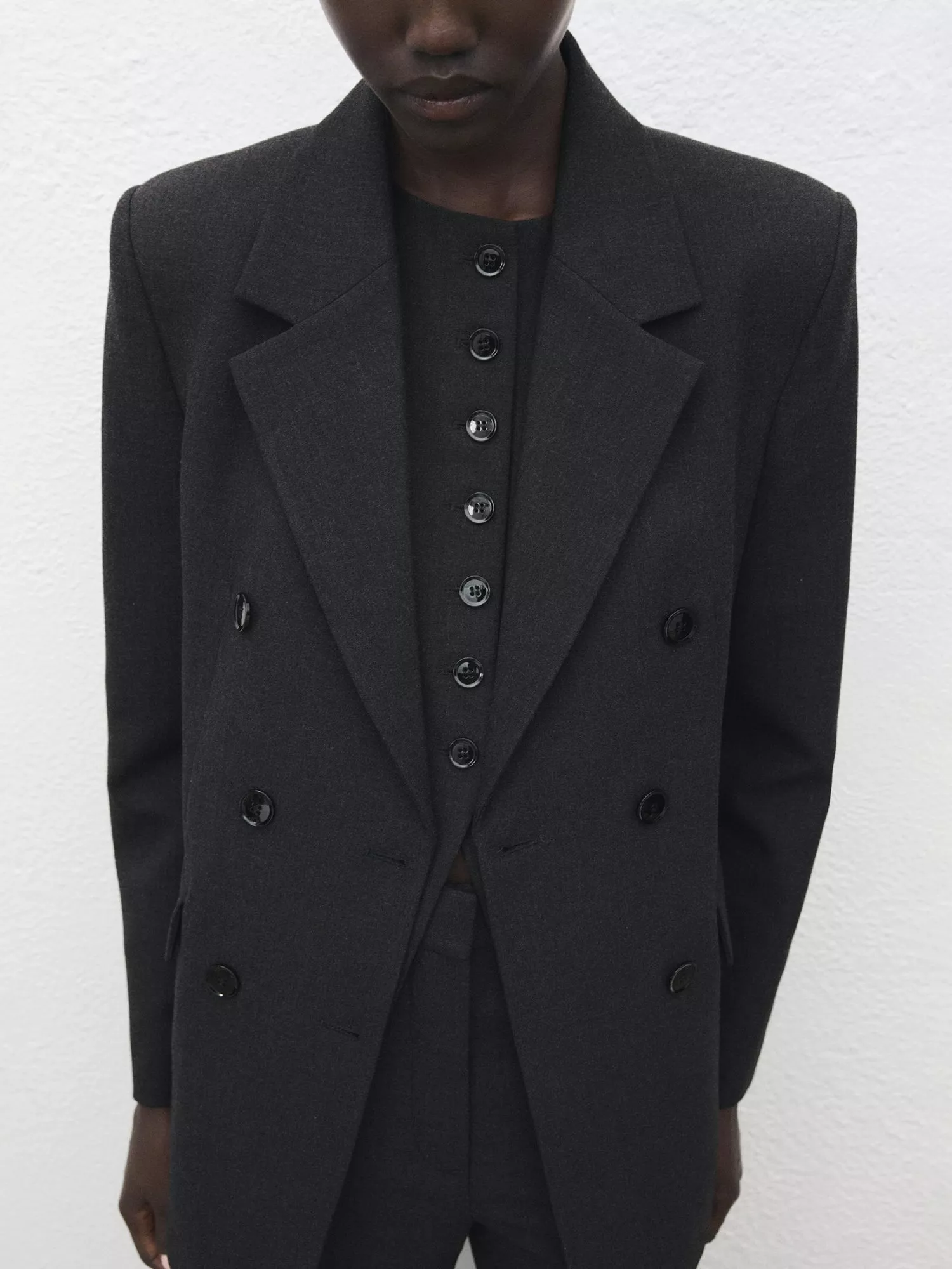 A double-breasted blazer from Mango. Its smart design and comfortable fit make it your reliable choice for any plans, adding sharp style to your wardrobe.