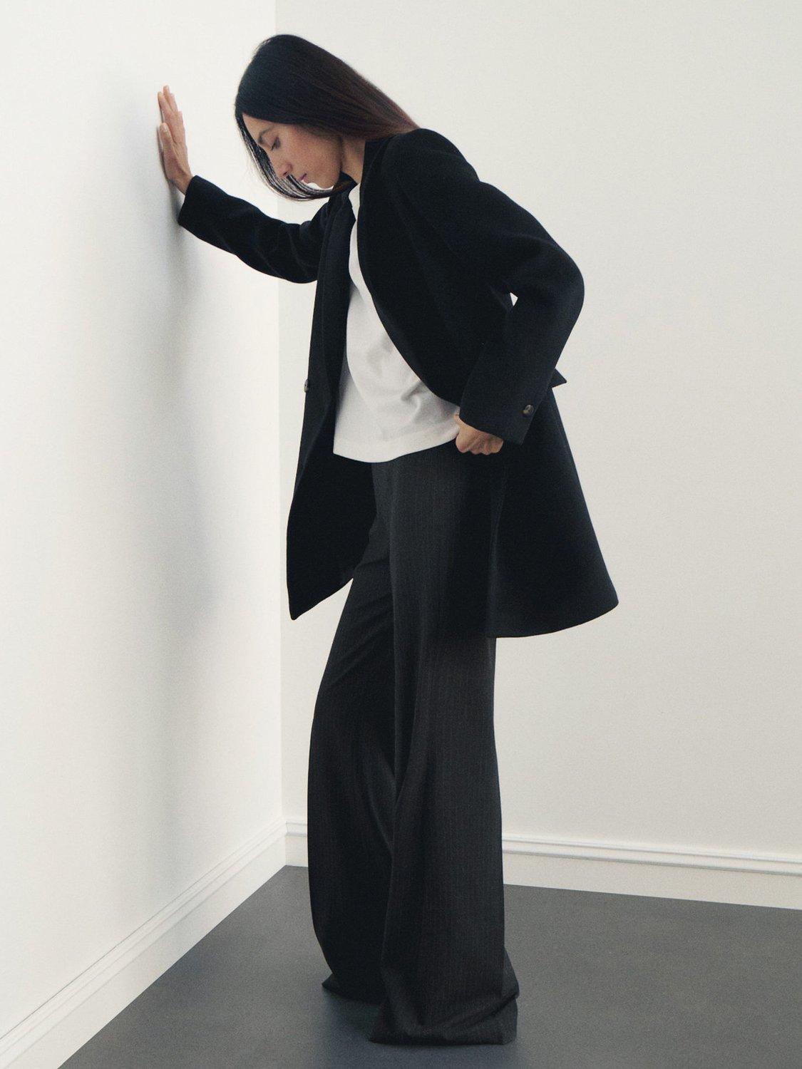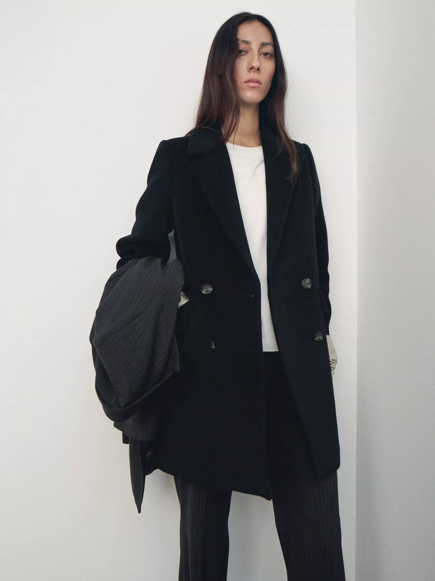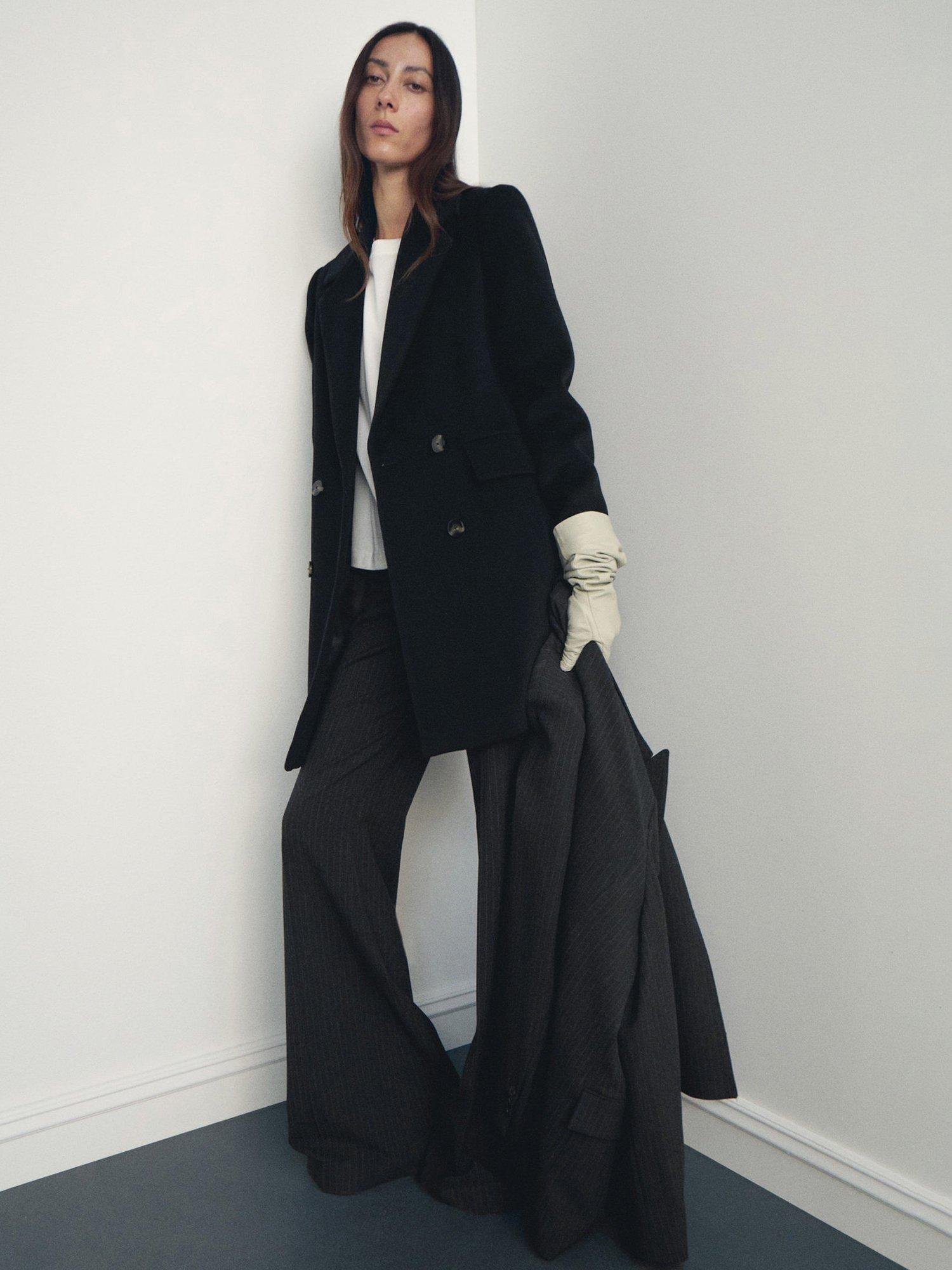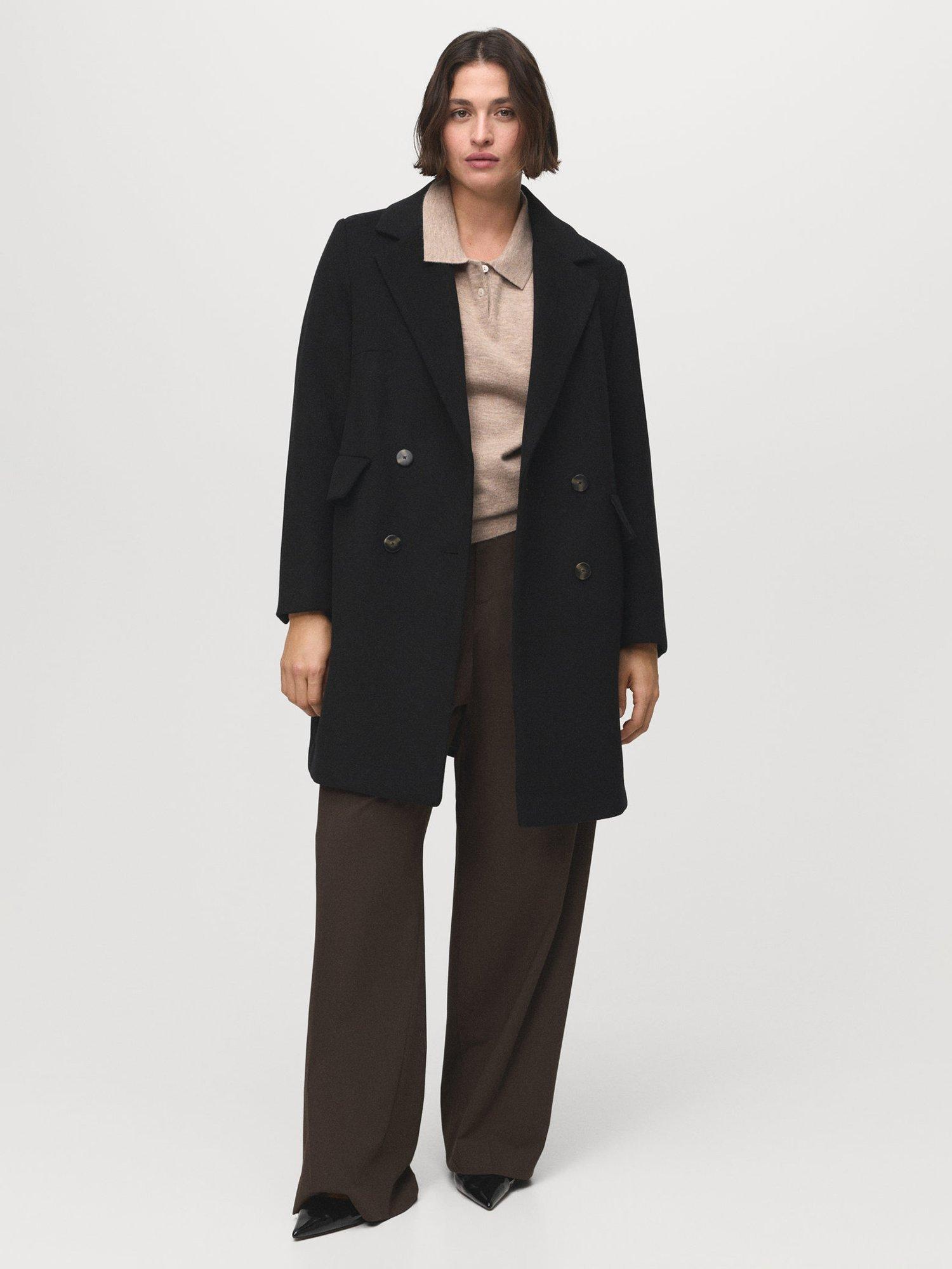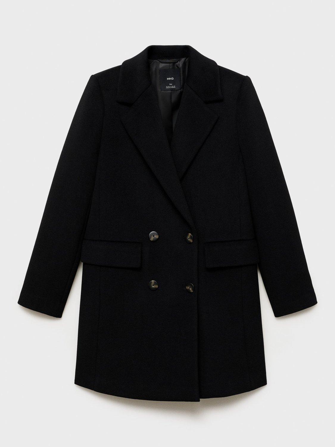 MangoDali Double Breasted Wool Blend Coat, Black