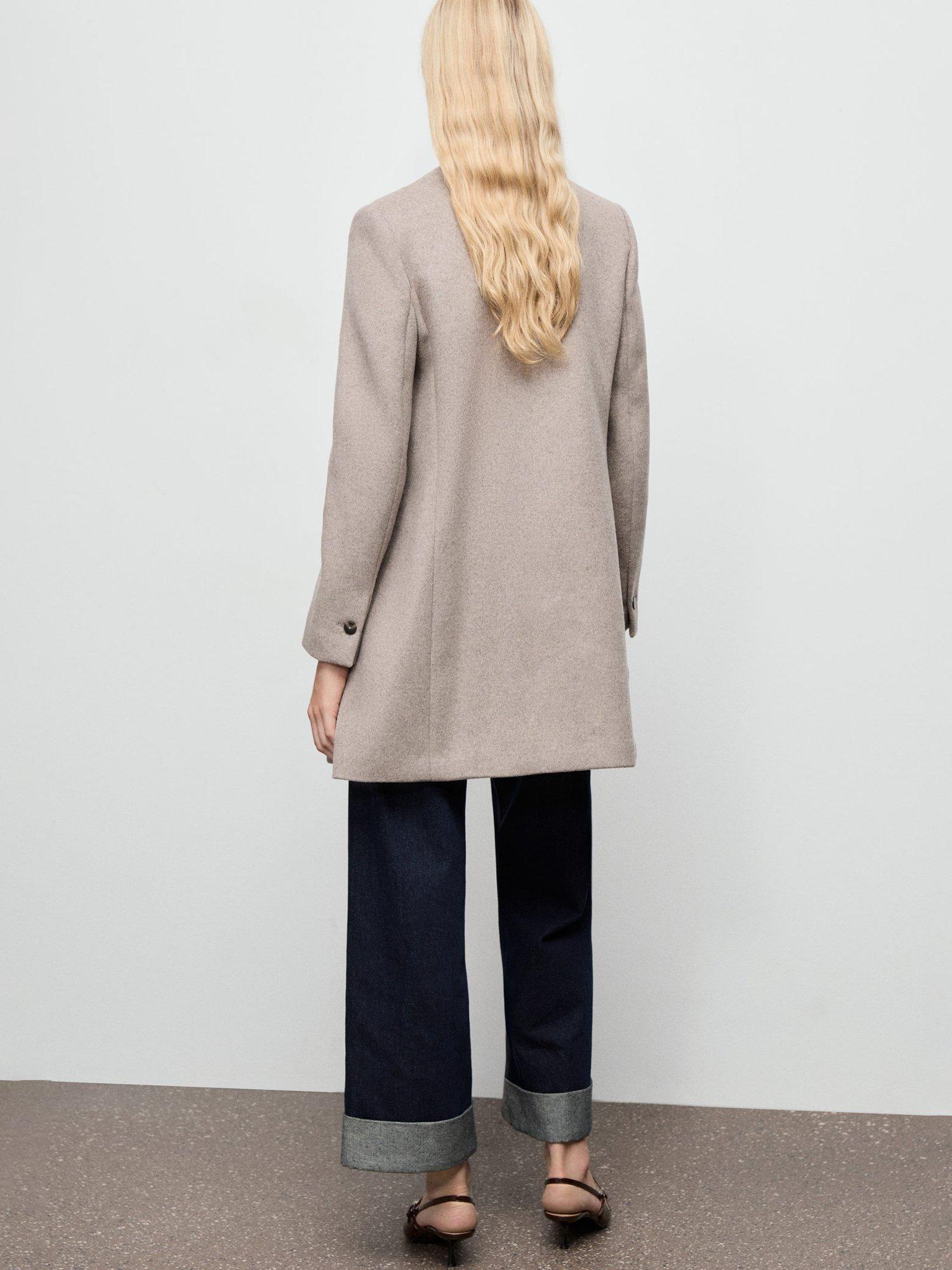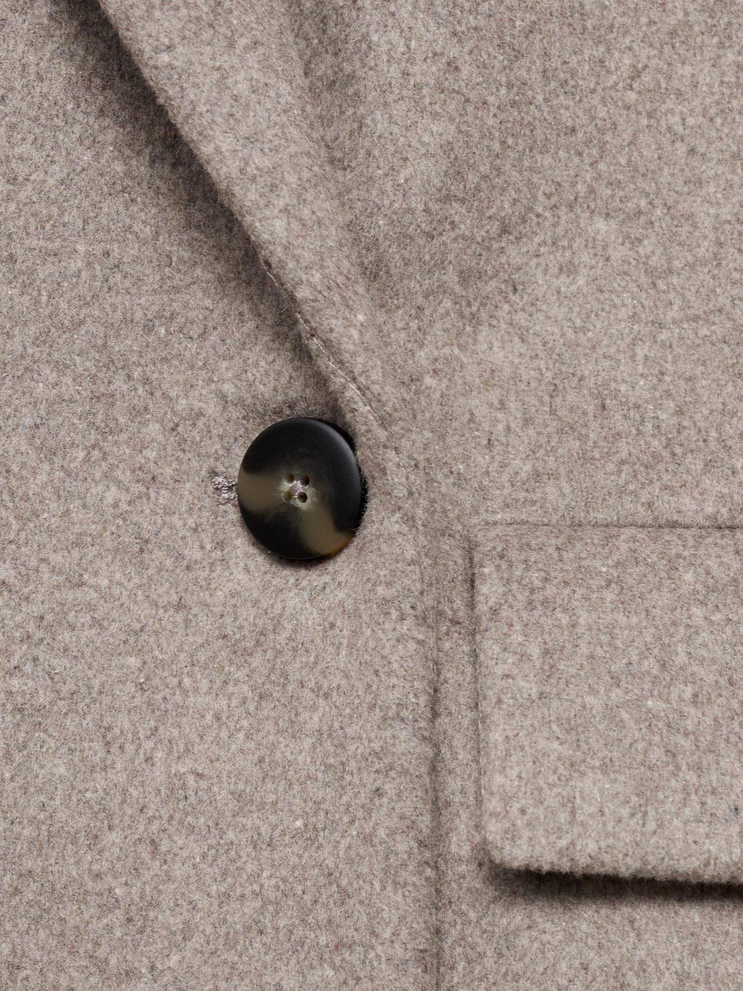 This overcoat keeps you sharp and comfortable for work or casual days. Its medium-weight wool blend offers reliable warmth and a smooth feel, while a classic V-neck and button fastening add a thoughtful finish to your outfit.